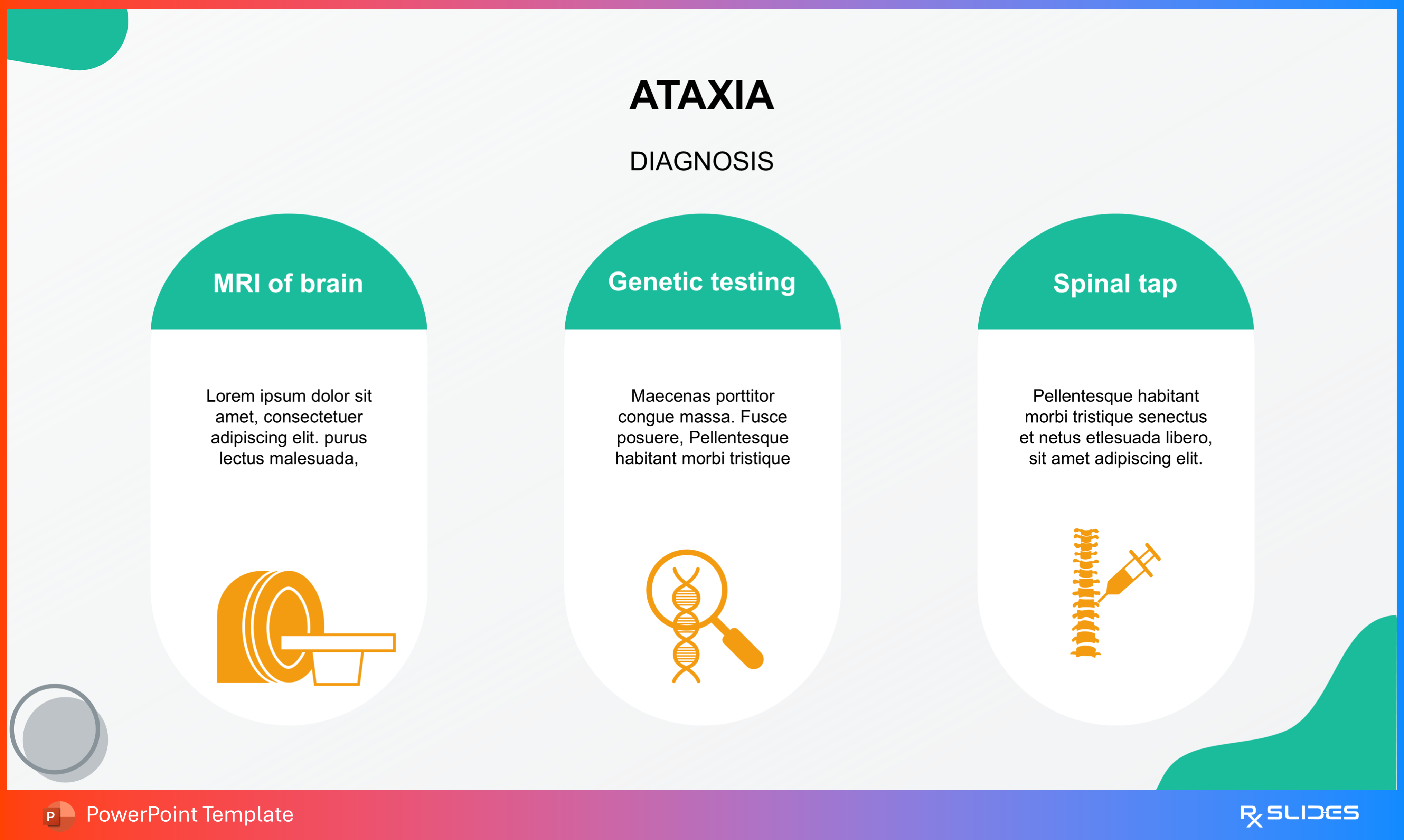 The Ataxia PPT template is a dynamic medical PowerPoint presentation that will help you realize the full potential of your presentation.