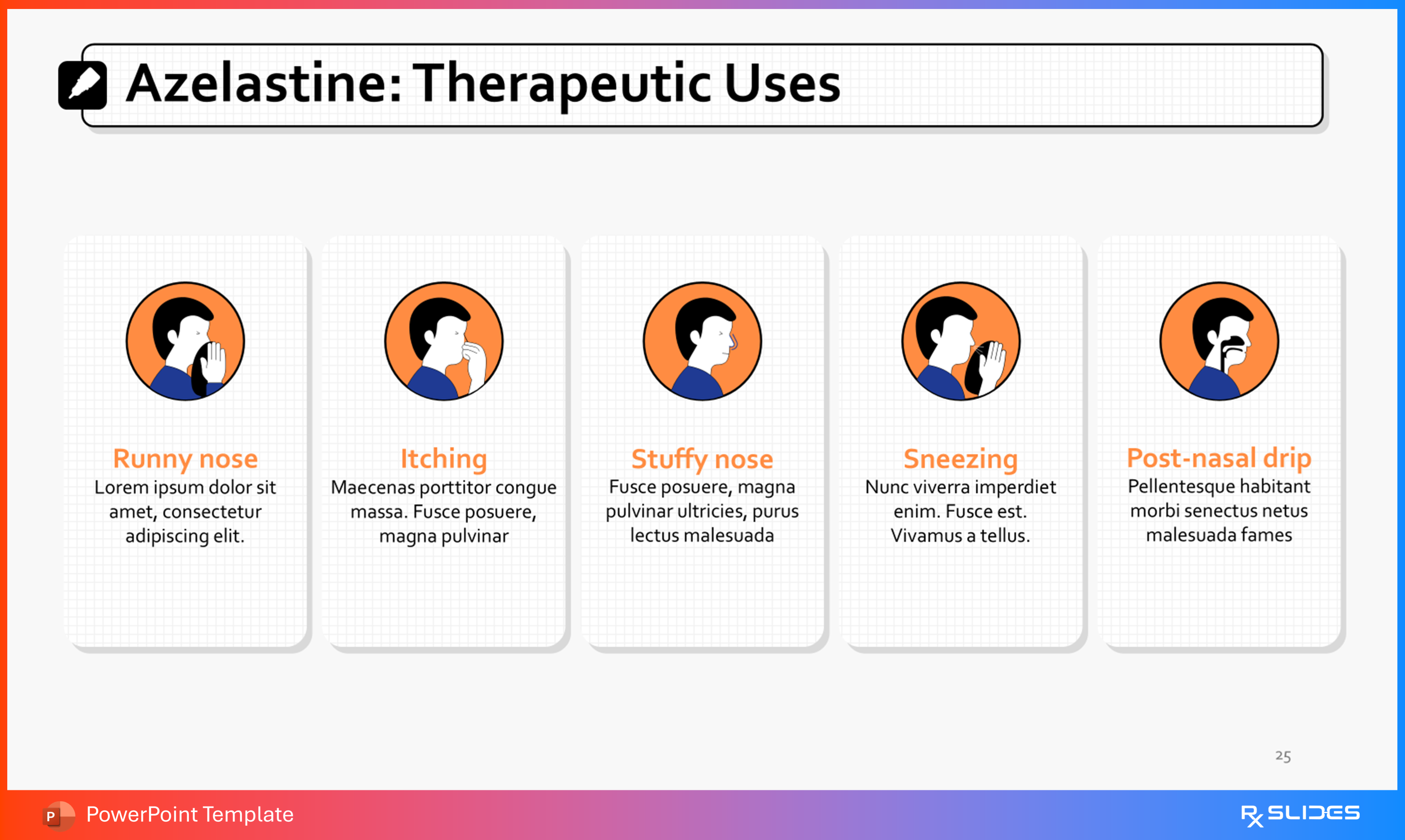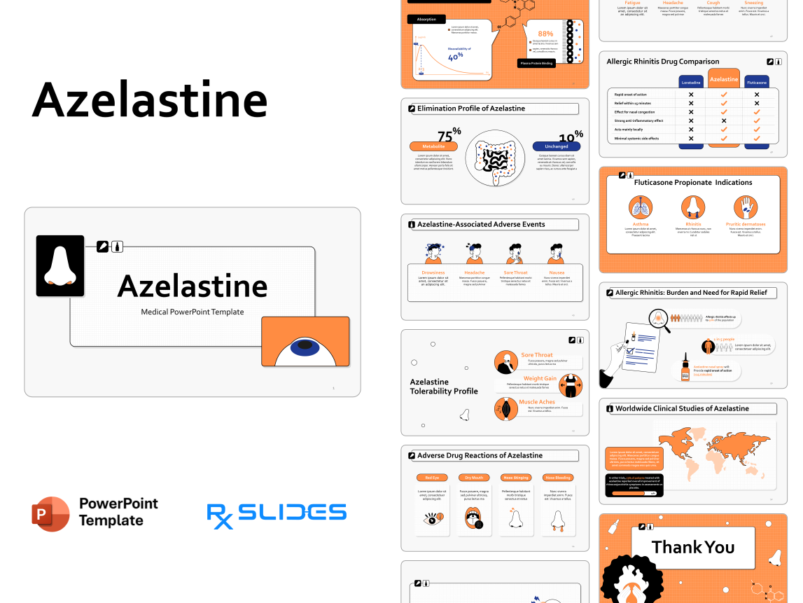 The Azelastine PPT template is an animated medical PowerPoint template designed by RxSlides medical professionals.