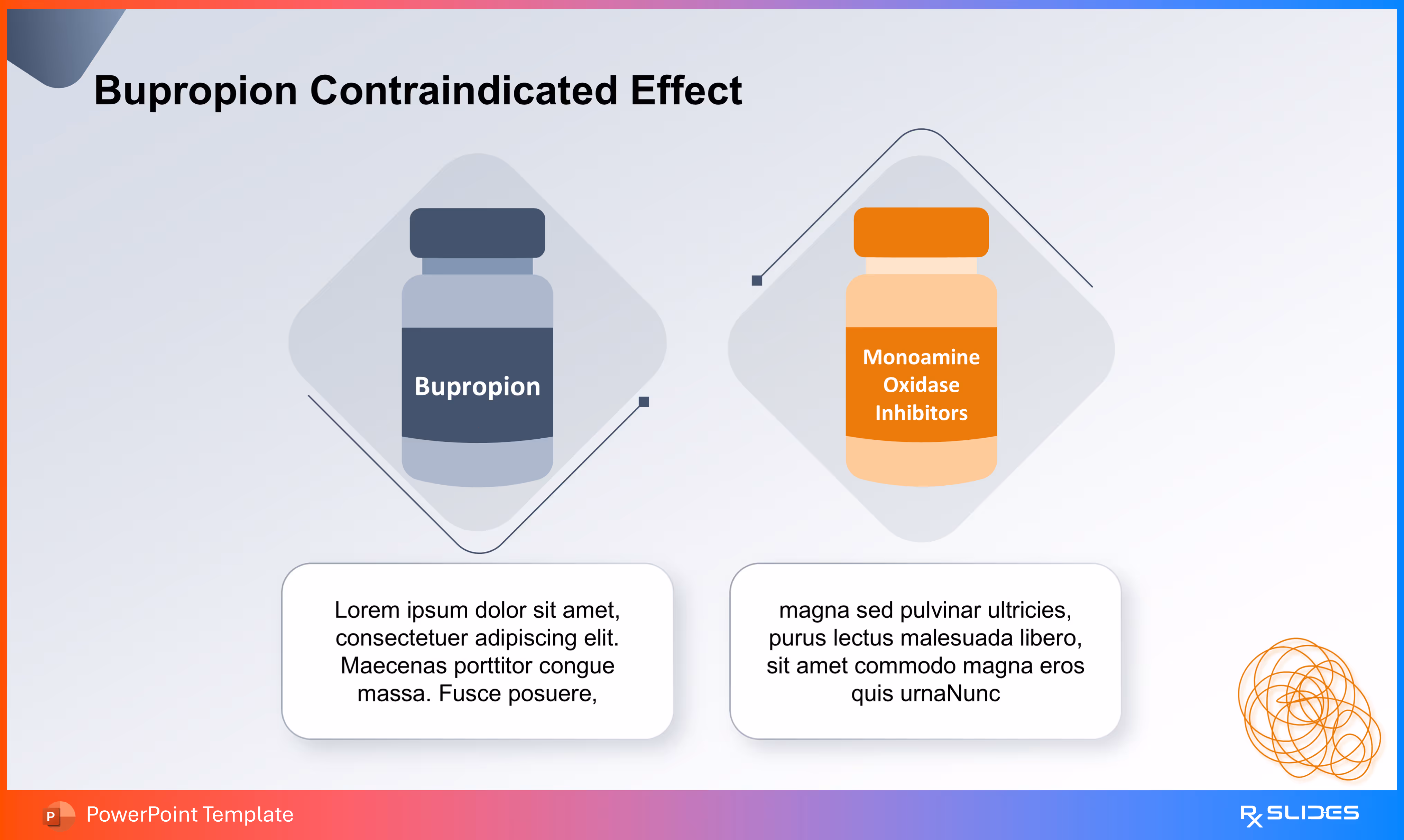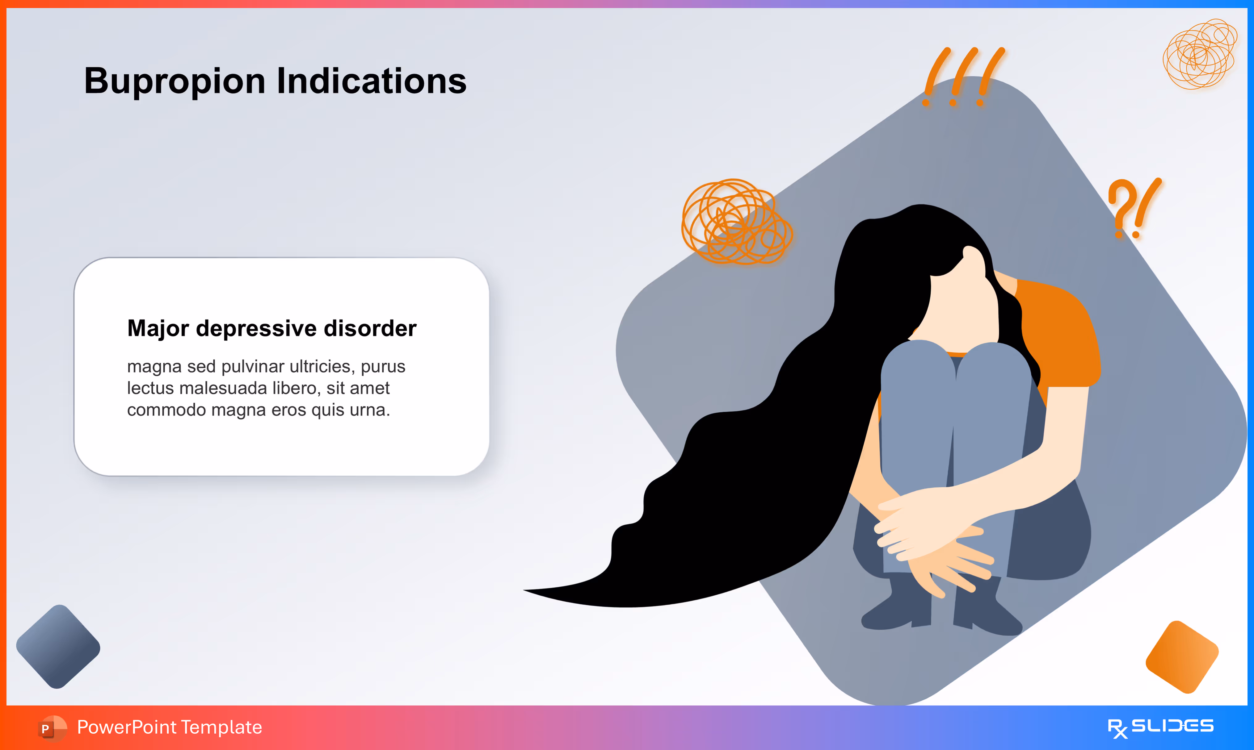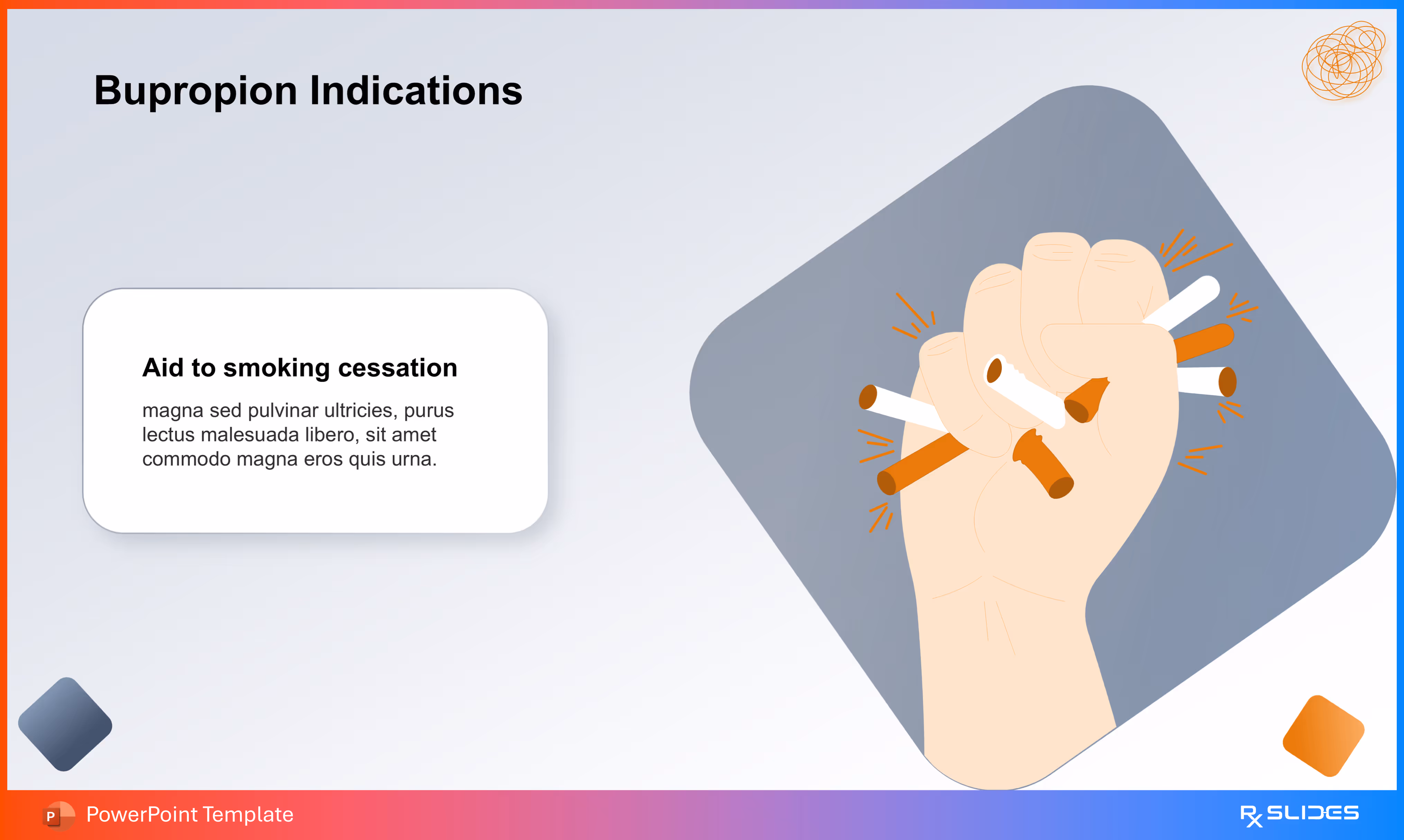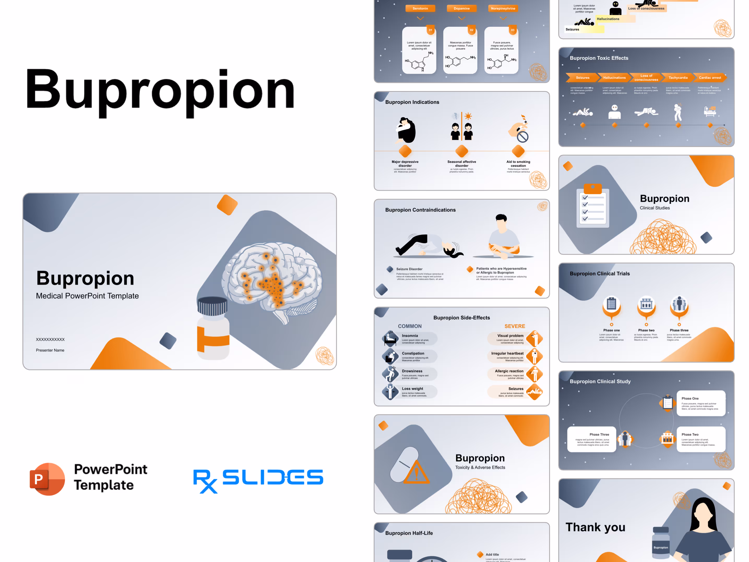 Outlines your Bupropion presentation and instantly structure the four key sections for your audience.