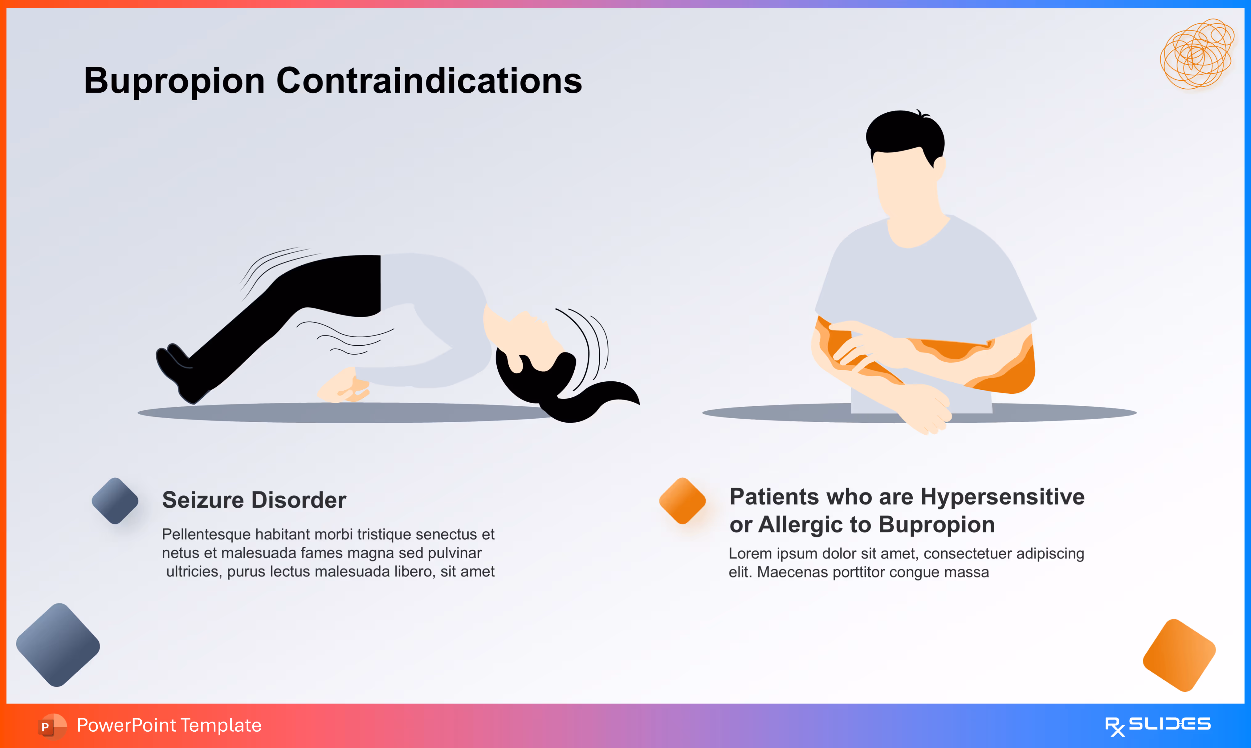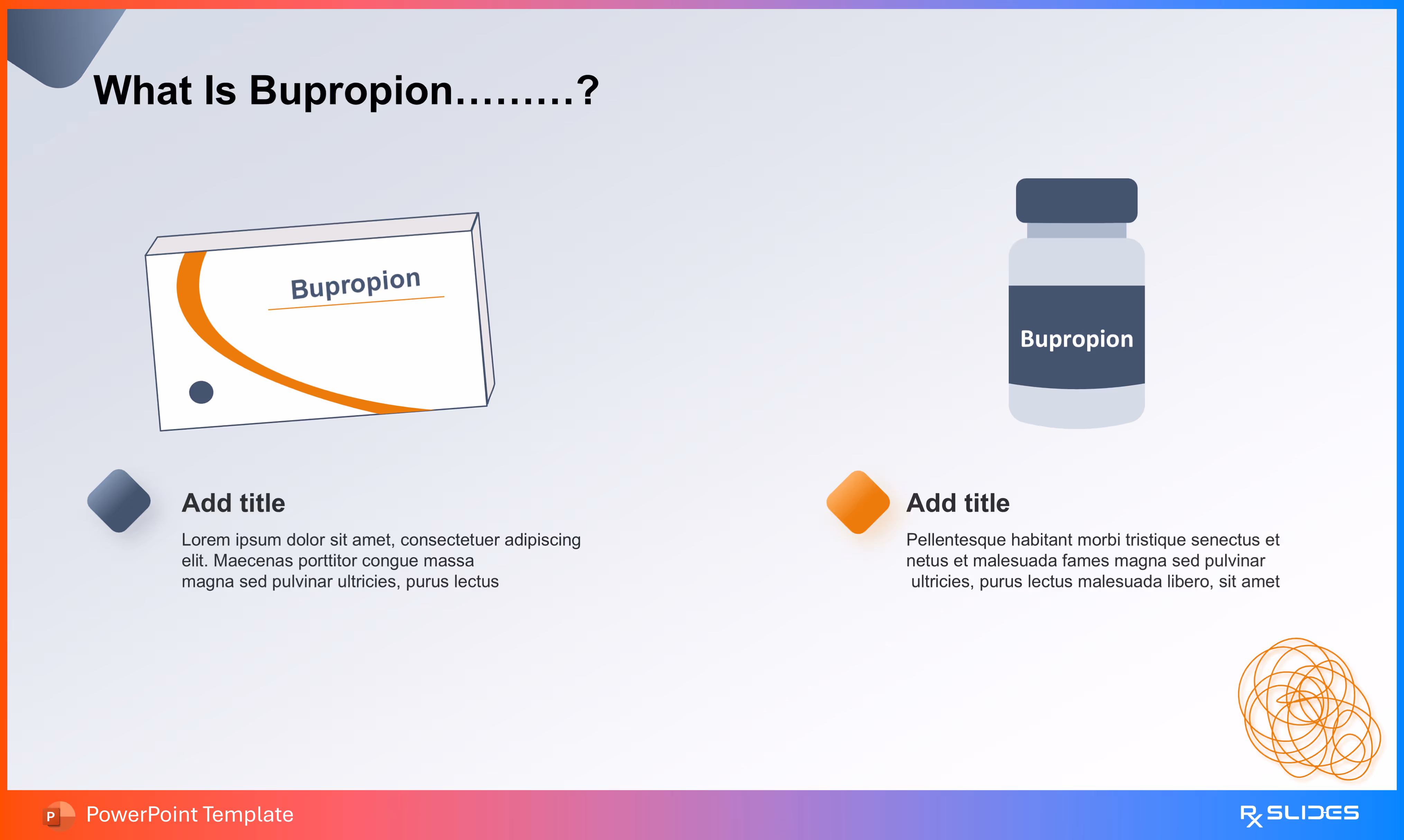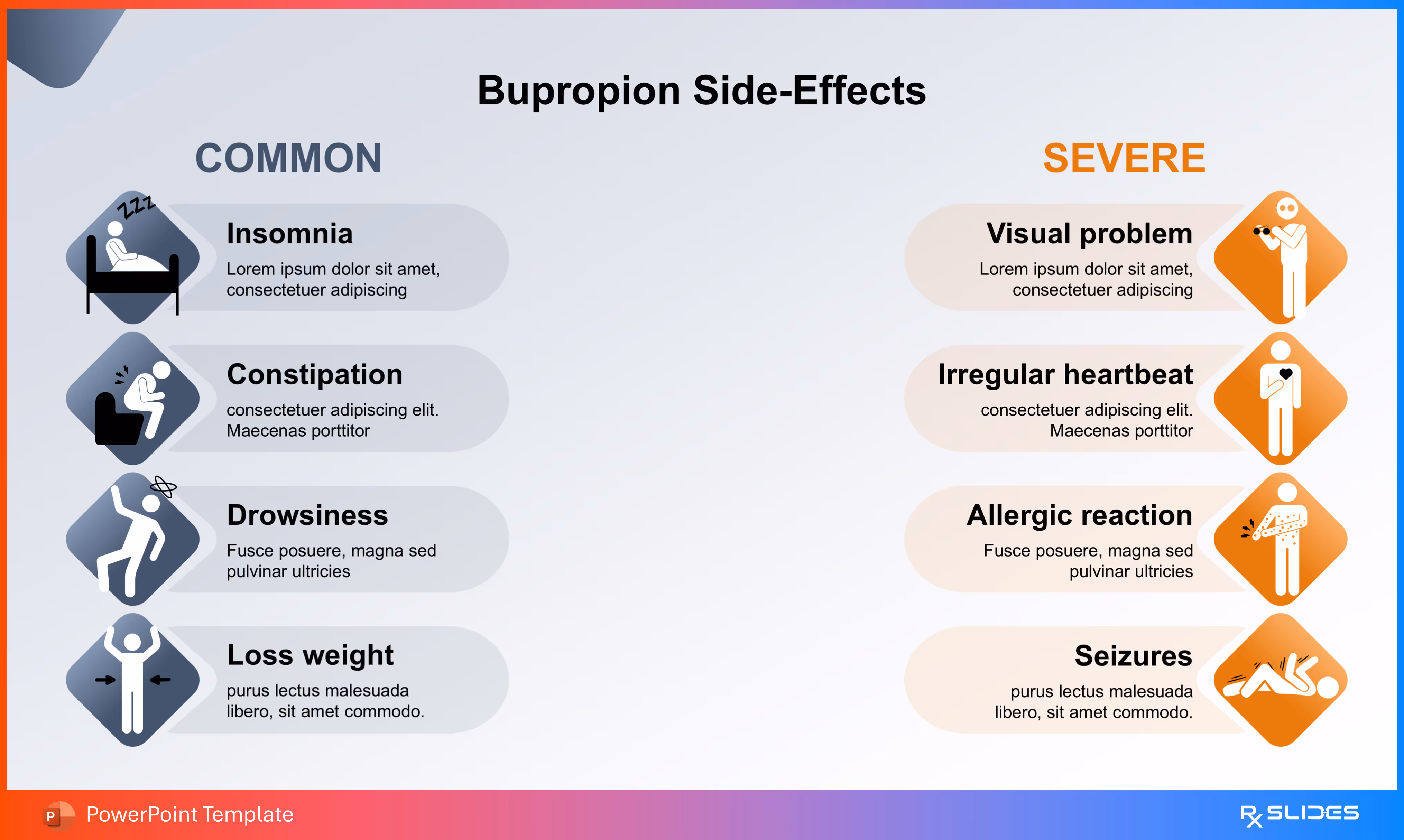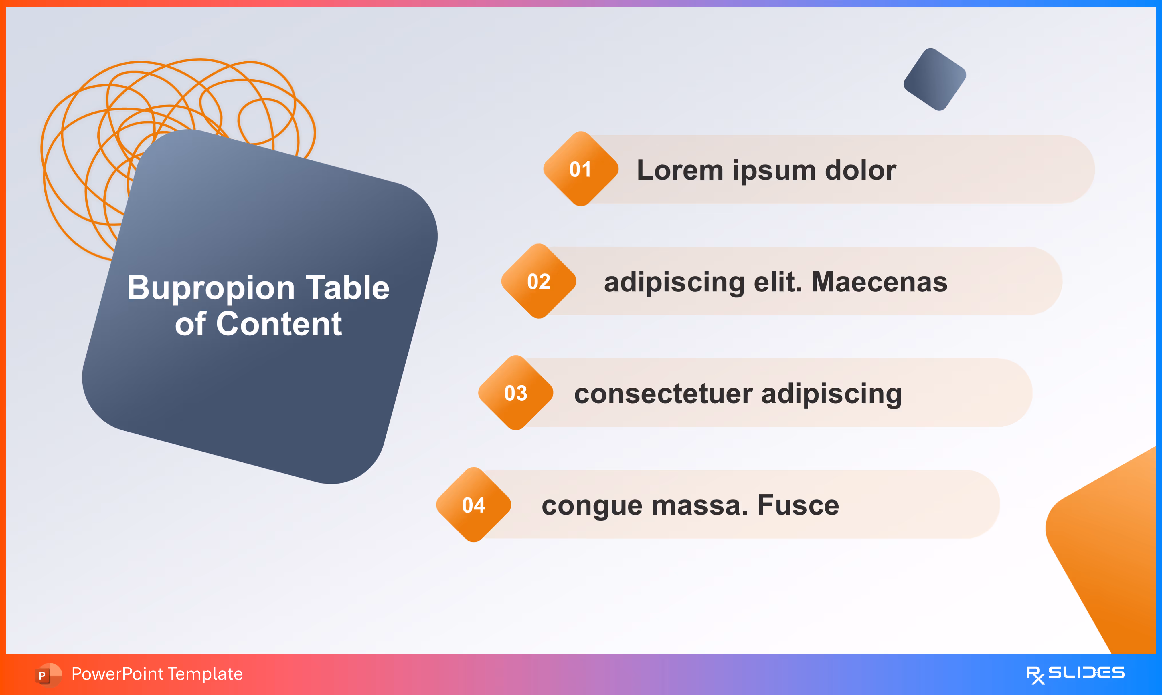 Outlines your Bupropion presentation and instantly structure the four key sections for your audience.