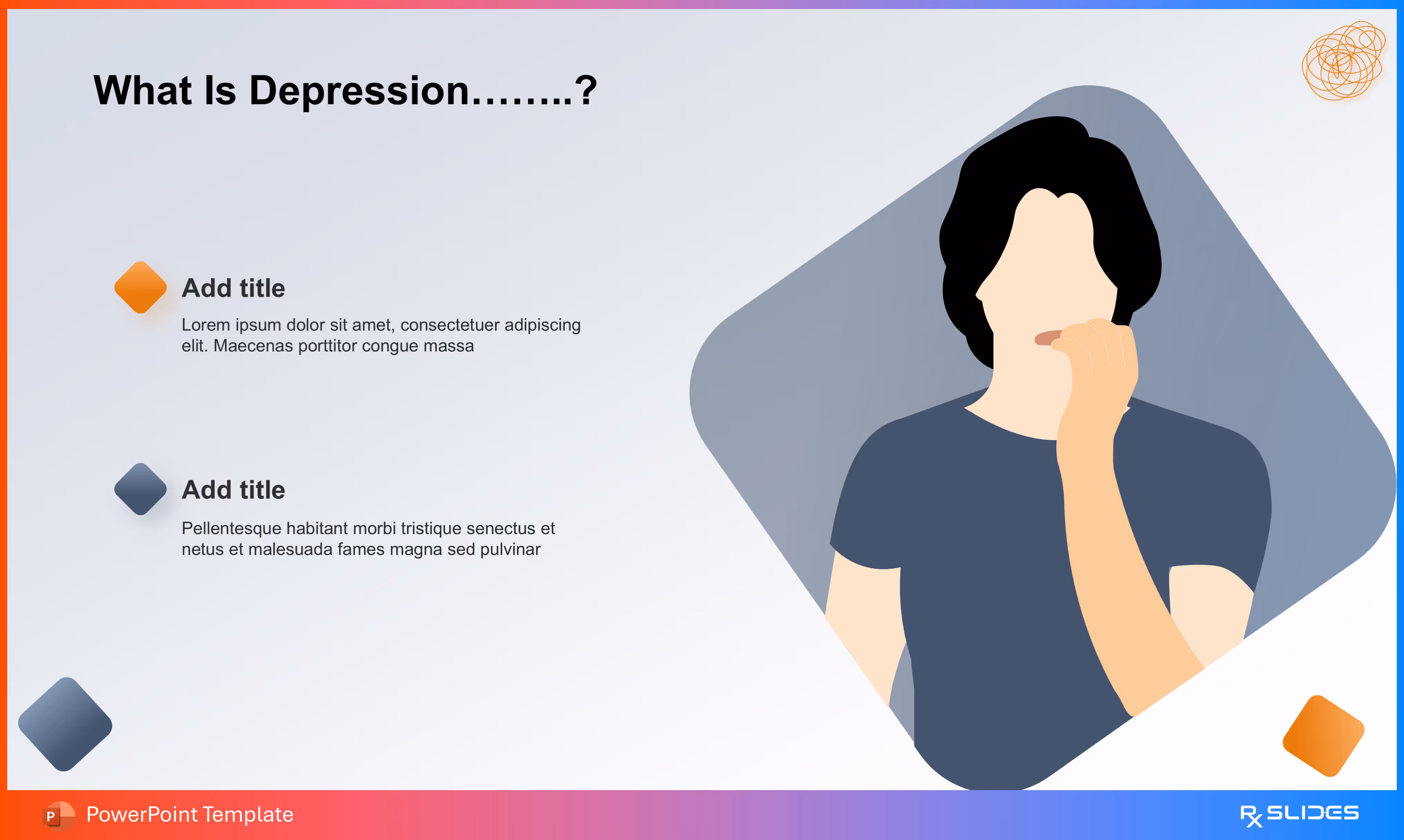 Opens the discussion on depression, using the relatable human figure graphic to immediately connect the topic to your audience's experience.