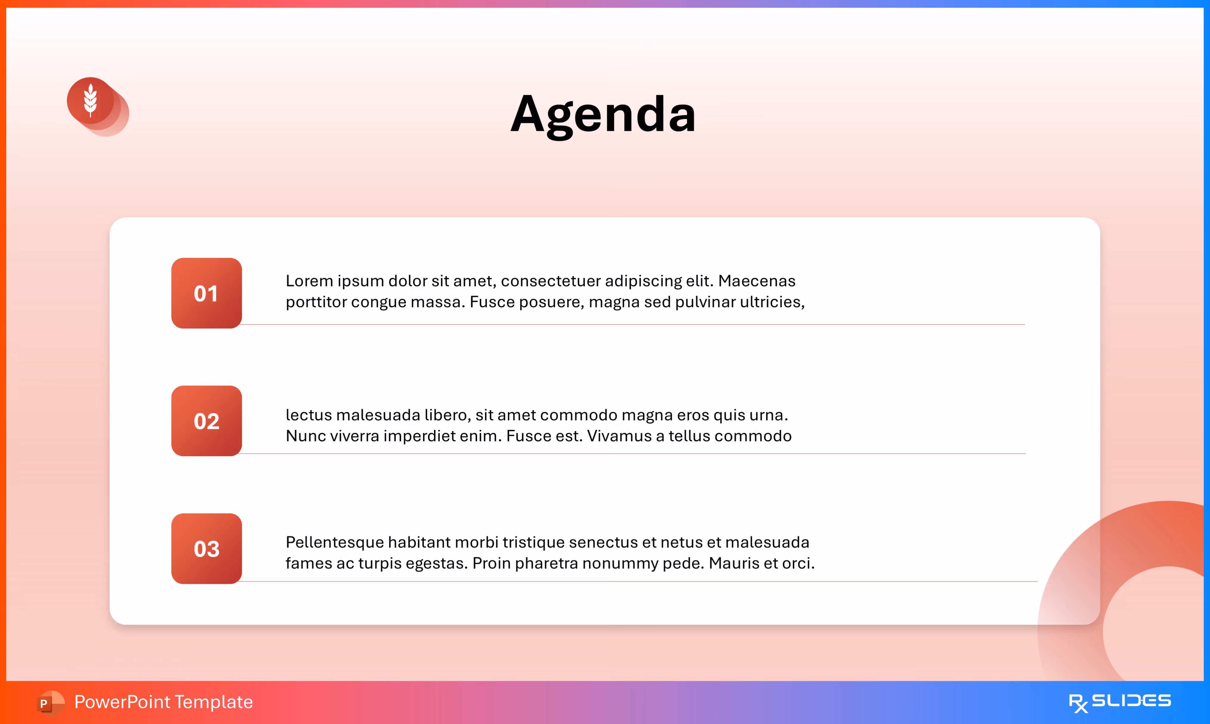 structure your presentation into three distinct content sections, offering easy navigation for your audience.