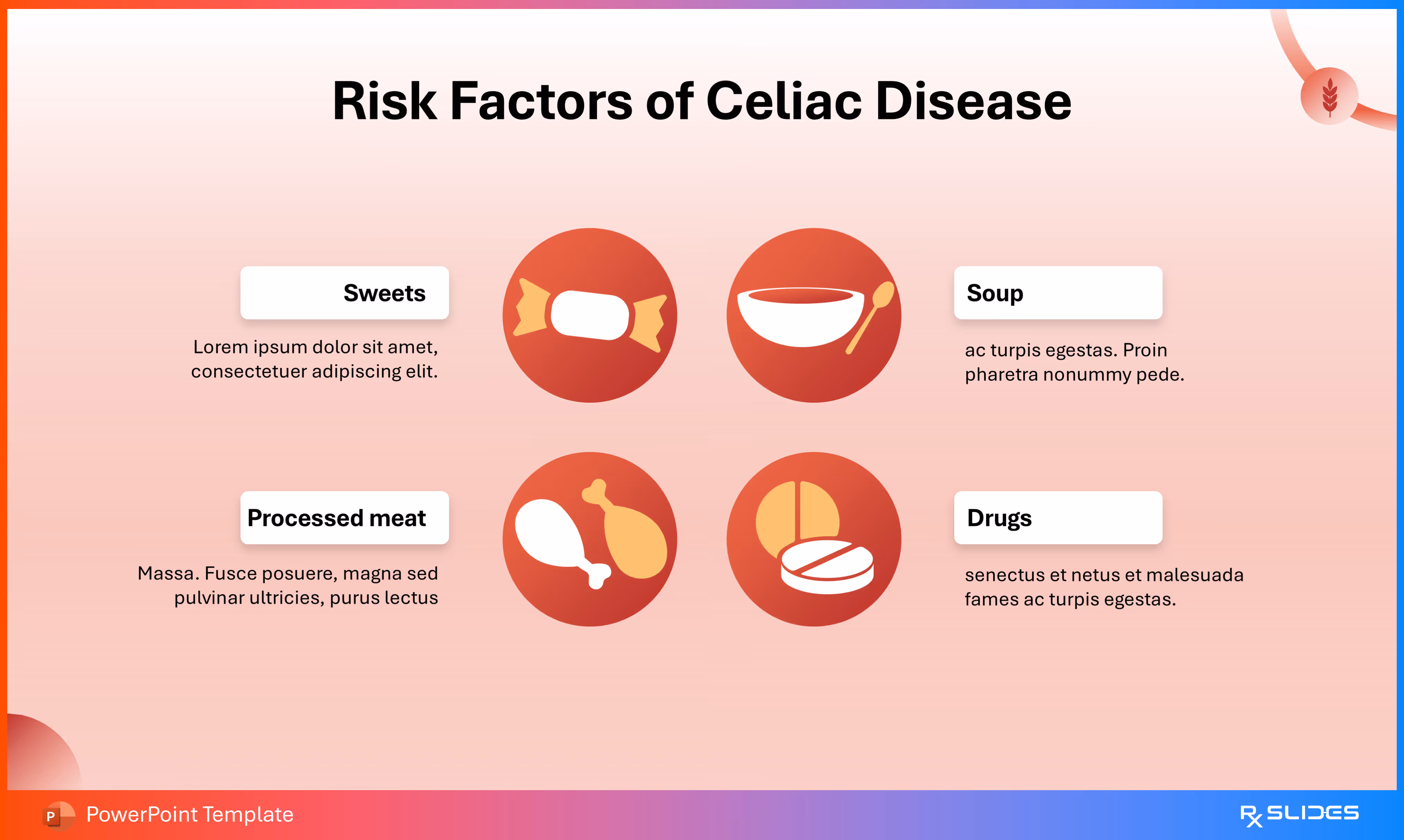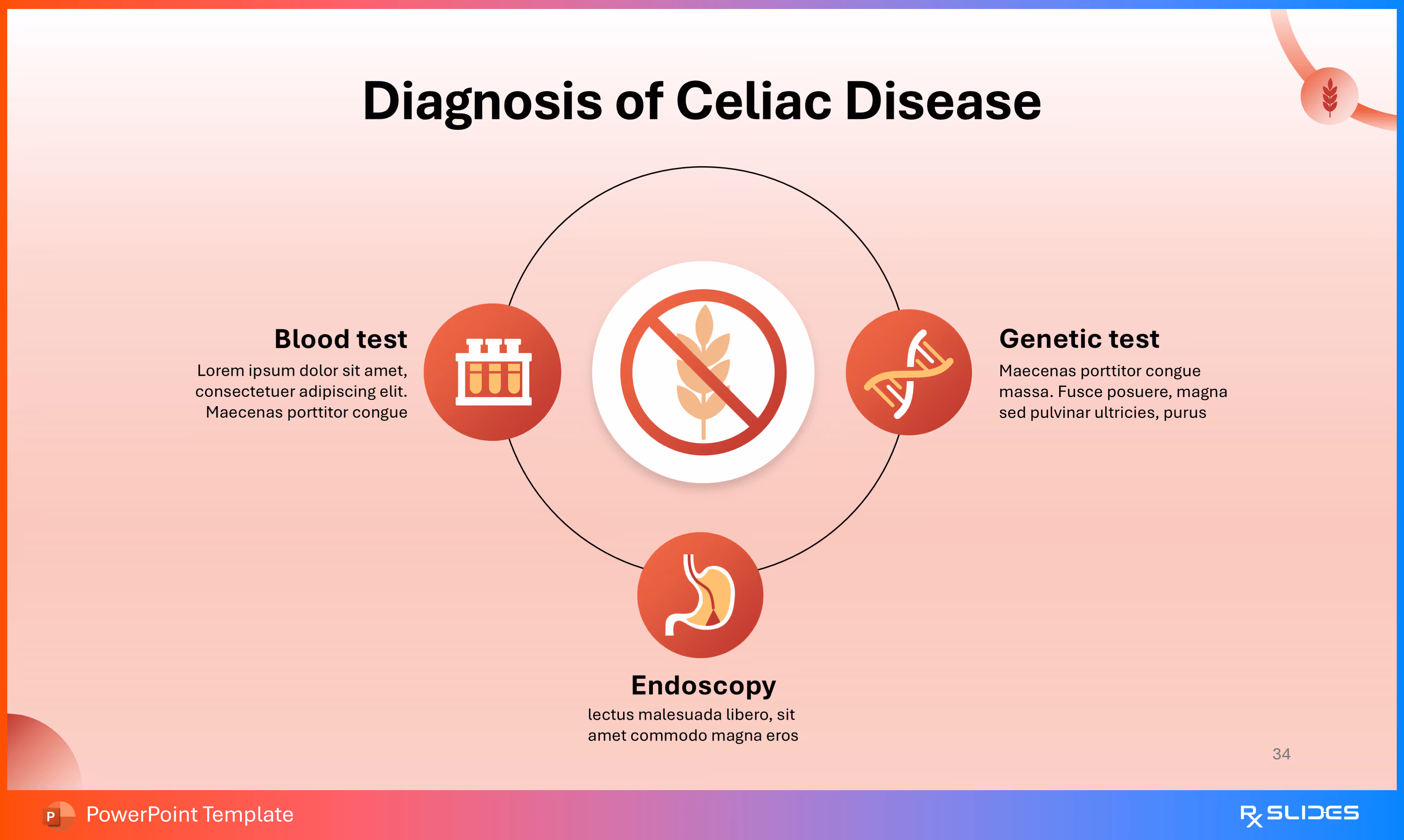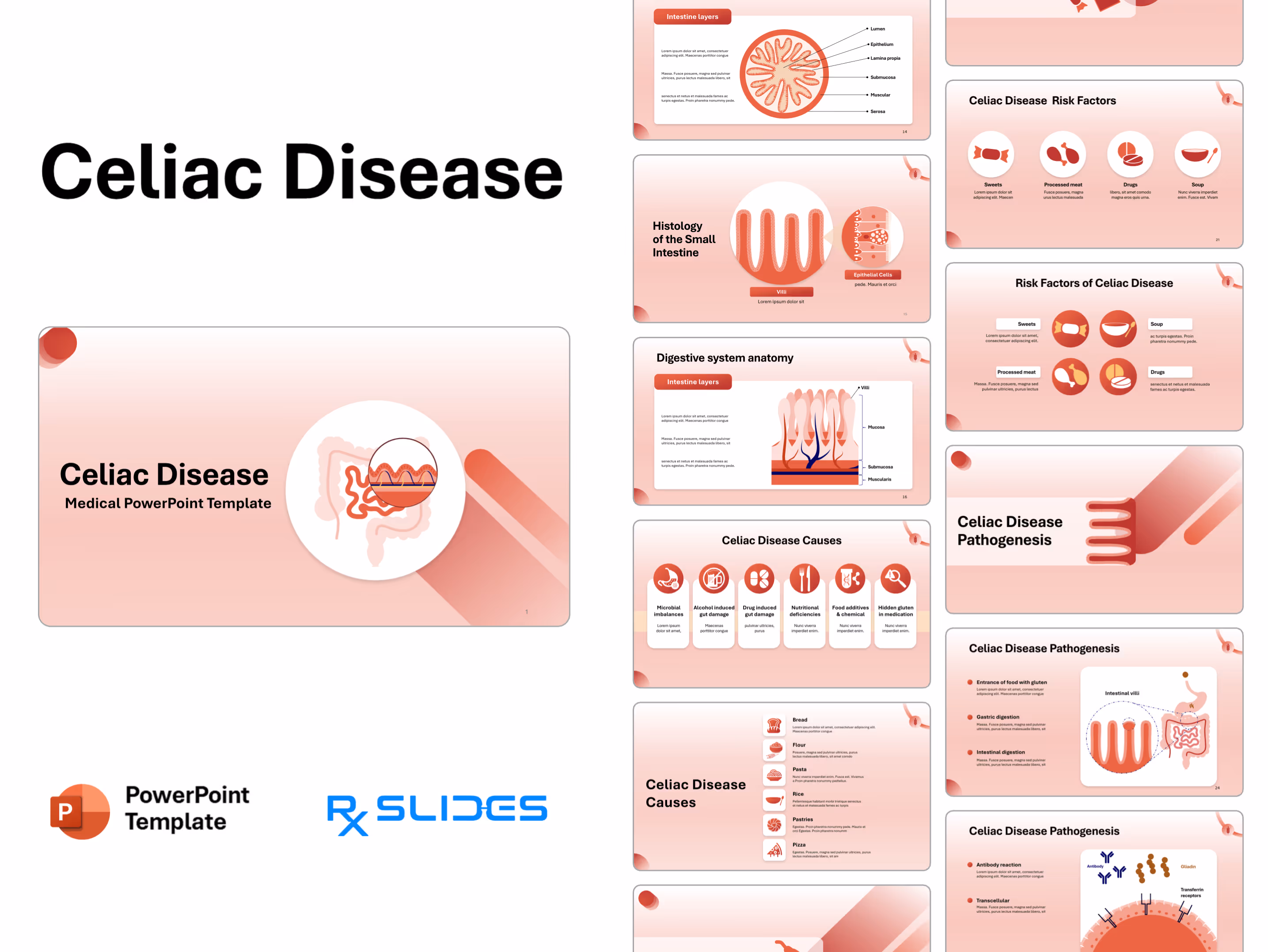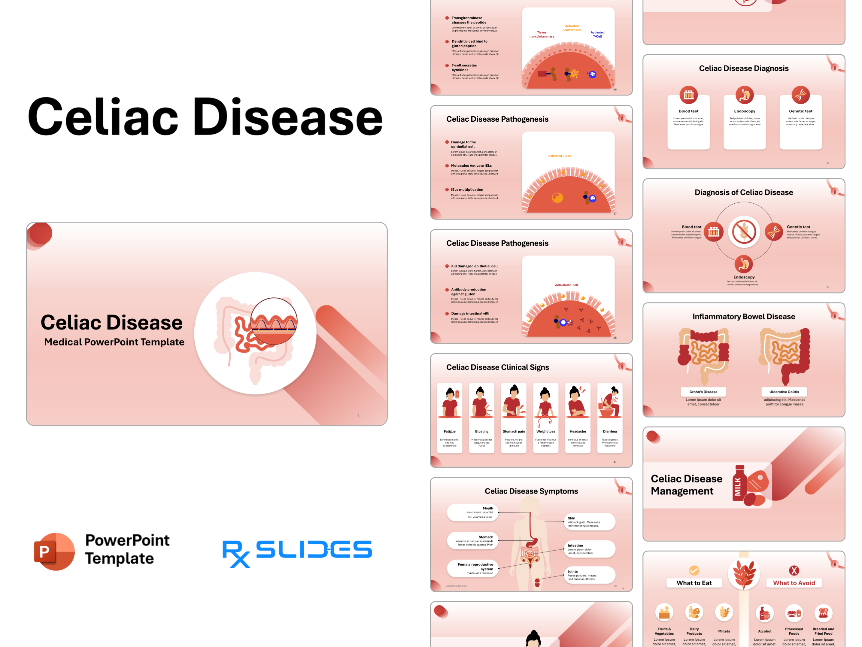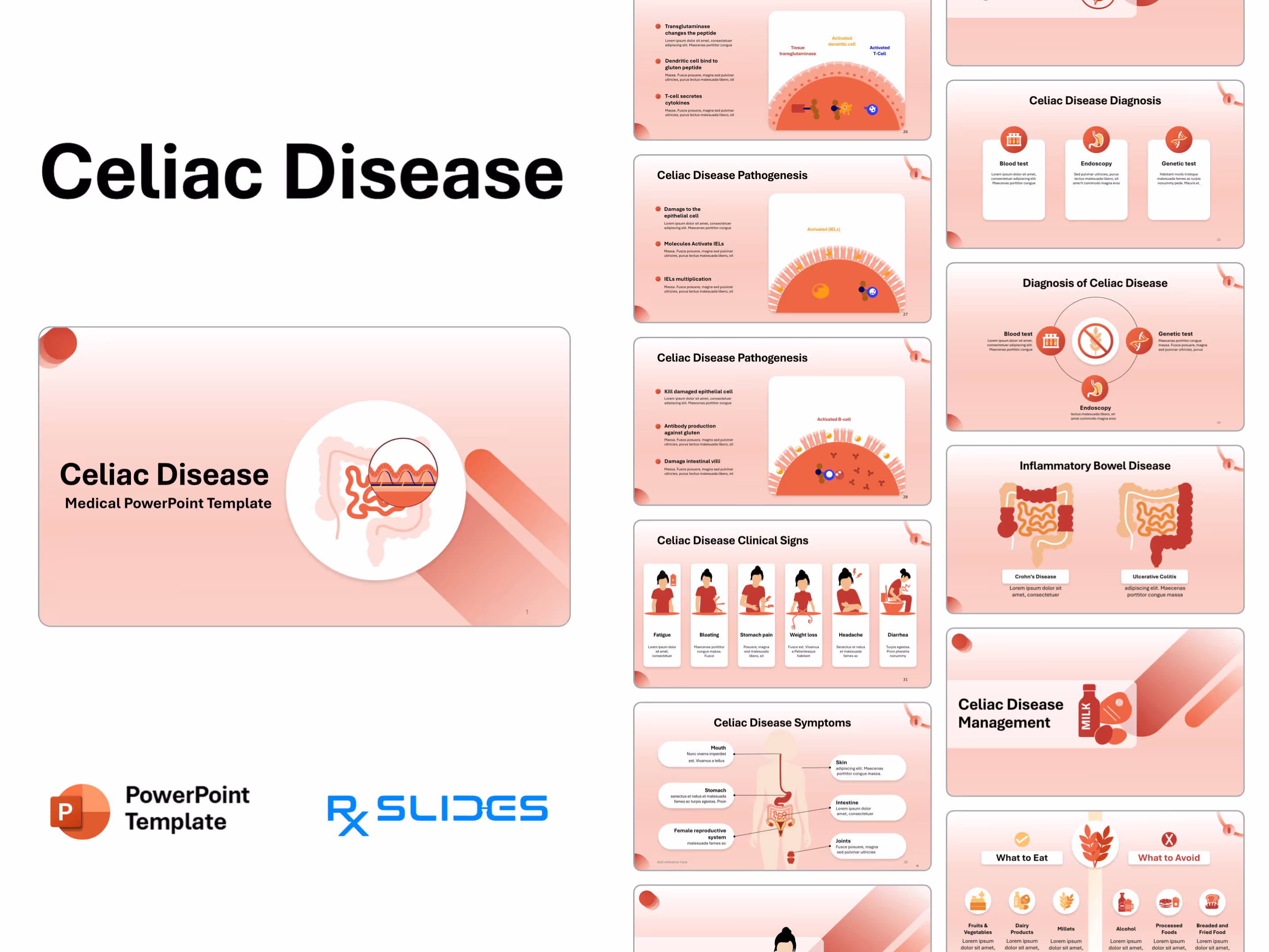 The Celiac Disease PPT template is an animated medical PowerPoint that will help you recognize the entire parts of your presentation. You can rely on our animated infographics to deliver your audience a compelling presentation on celiac disease.