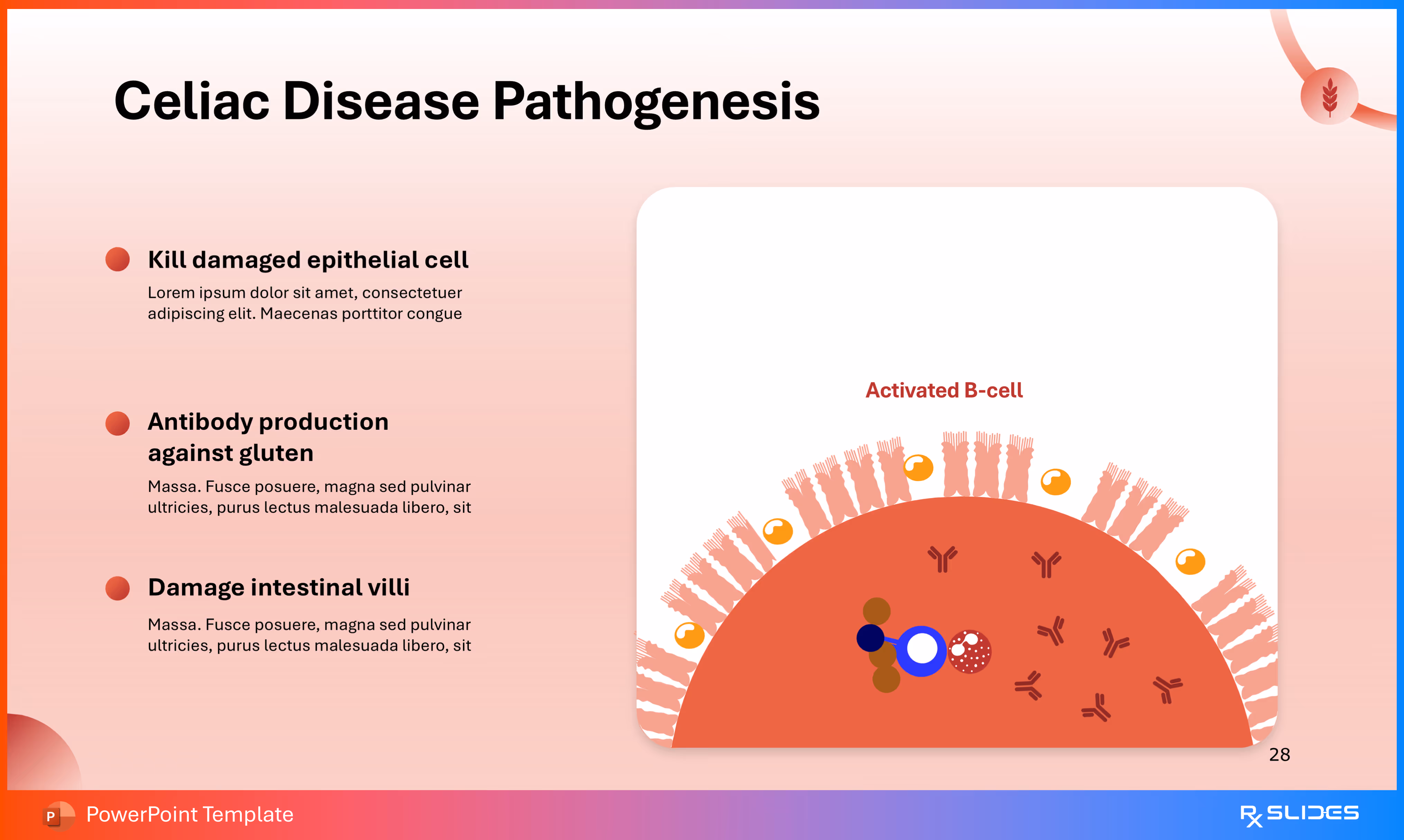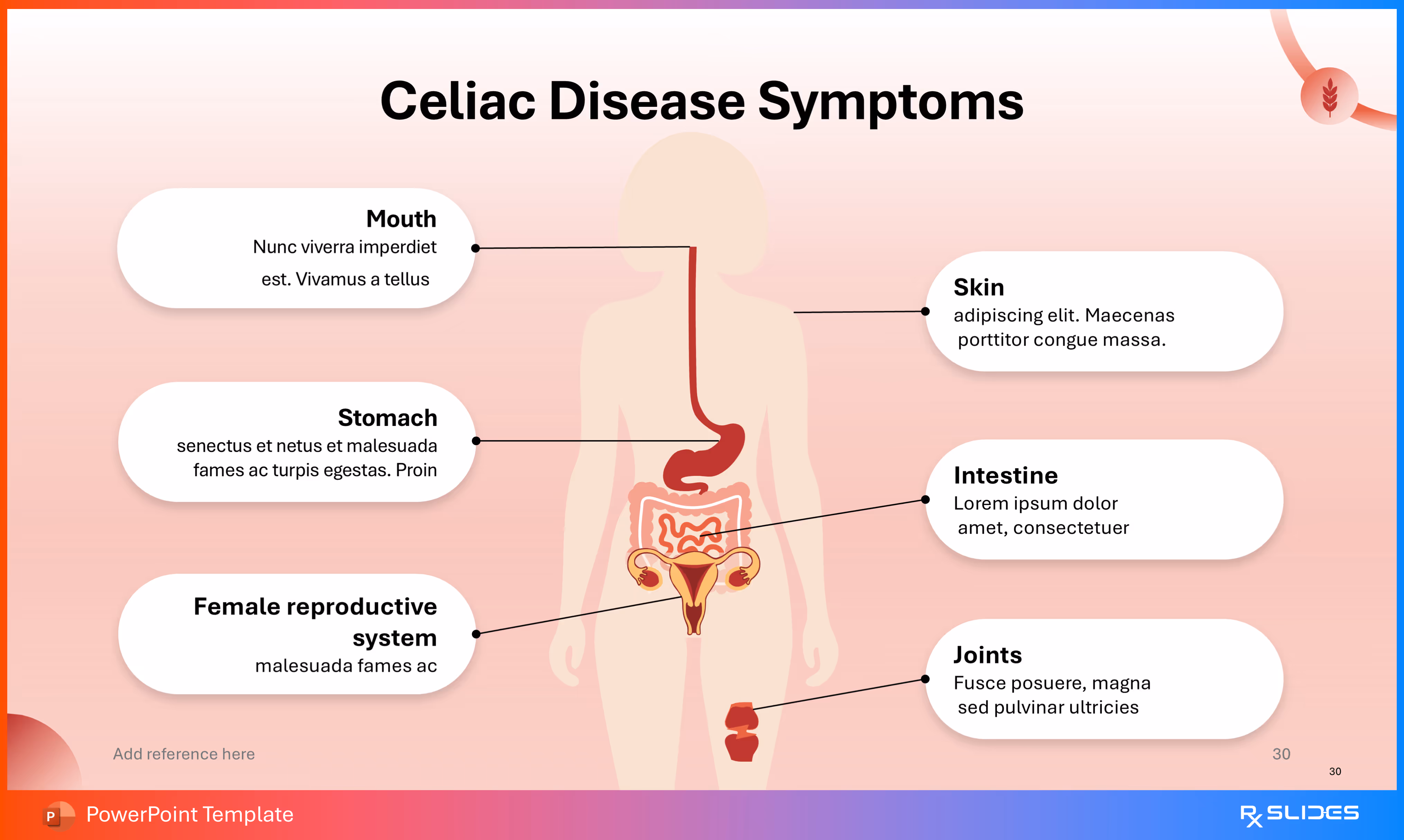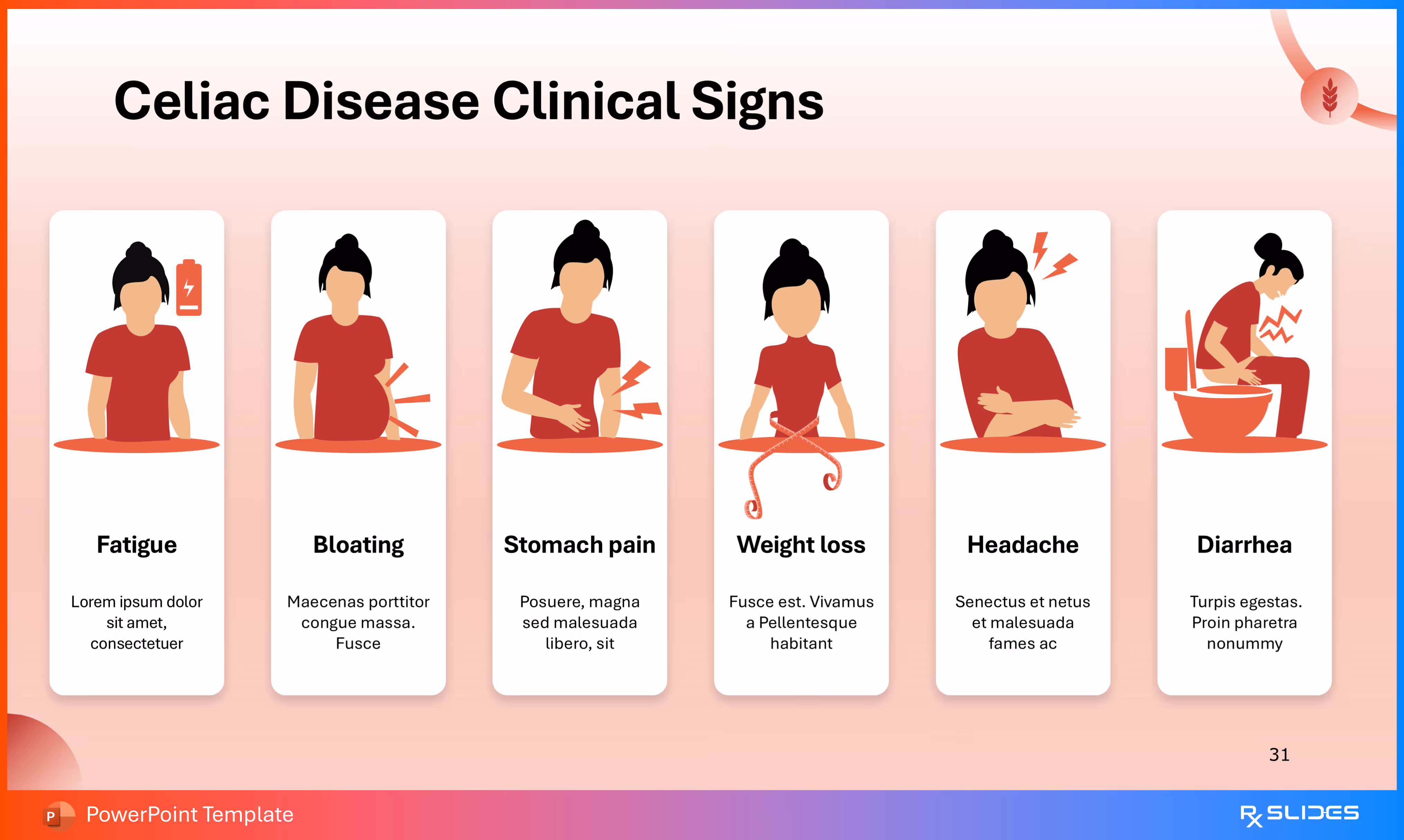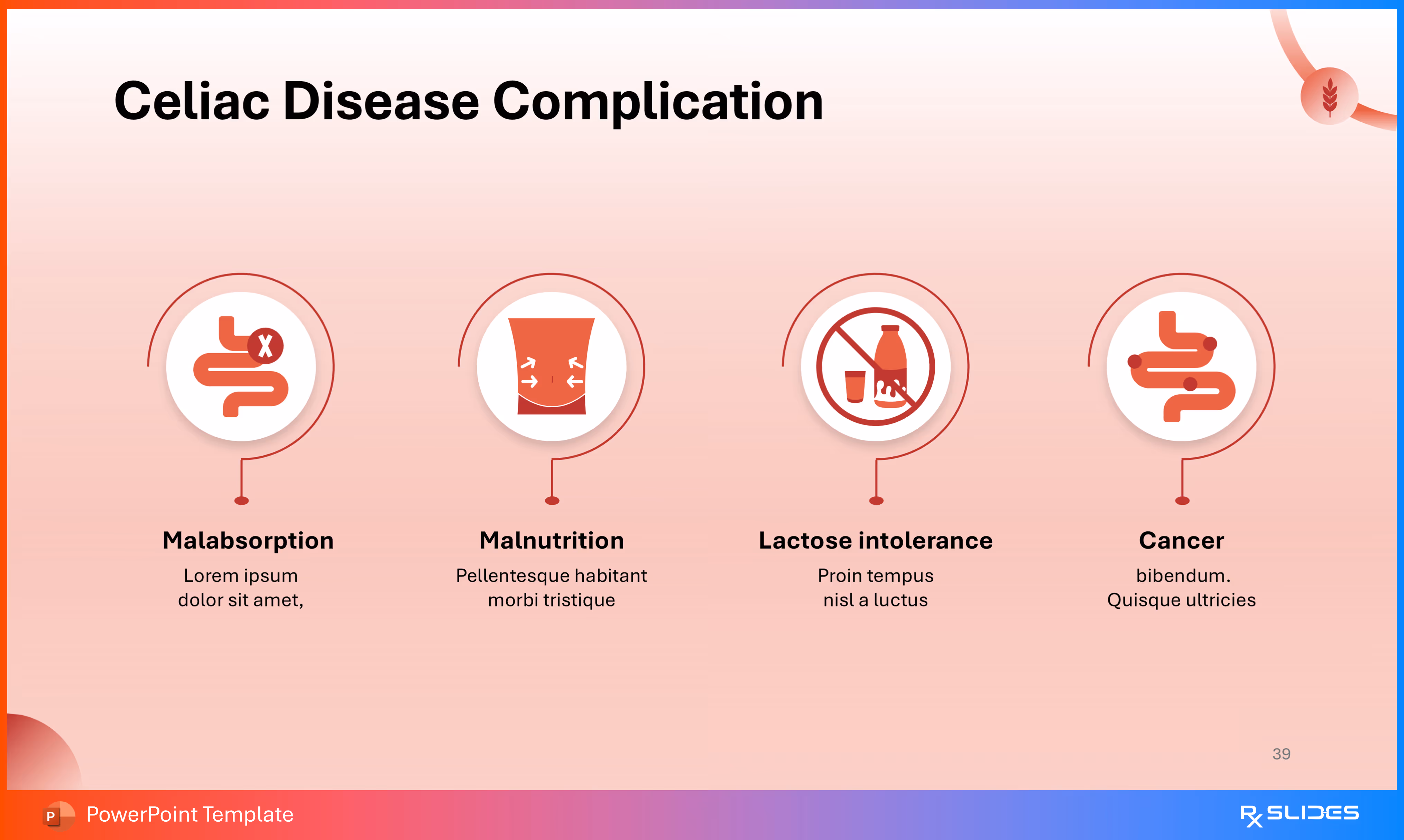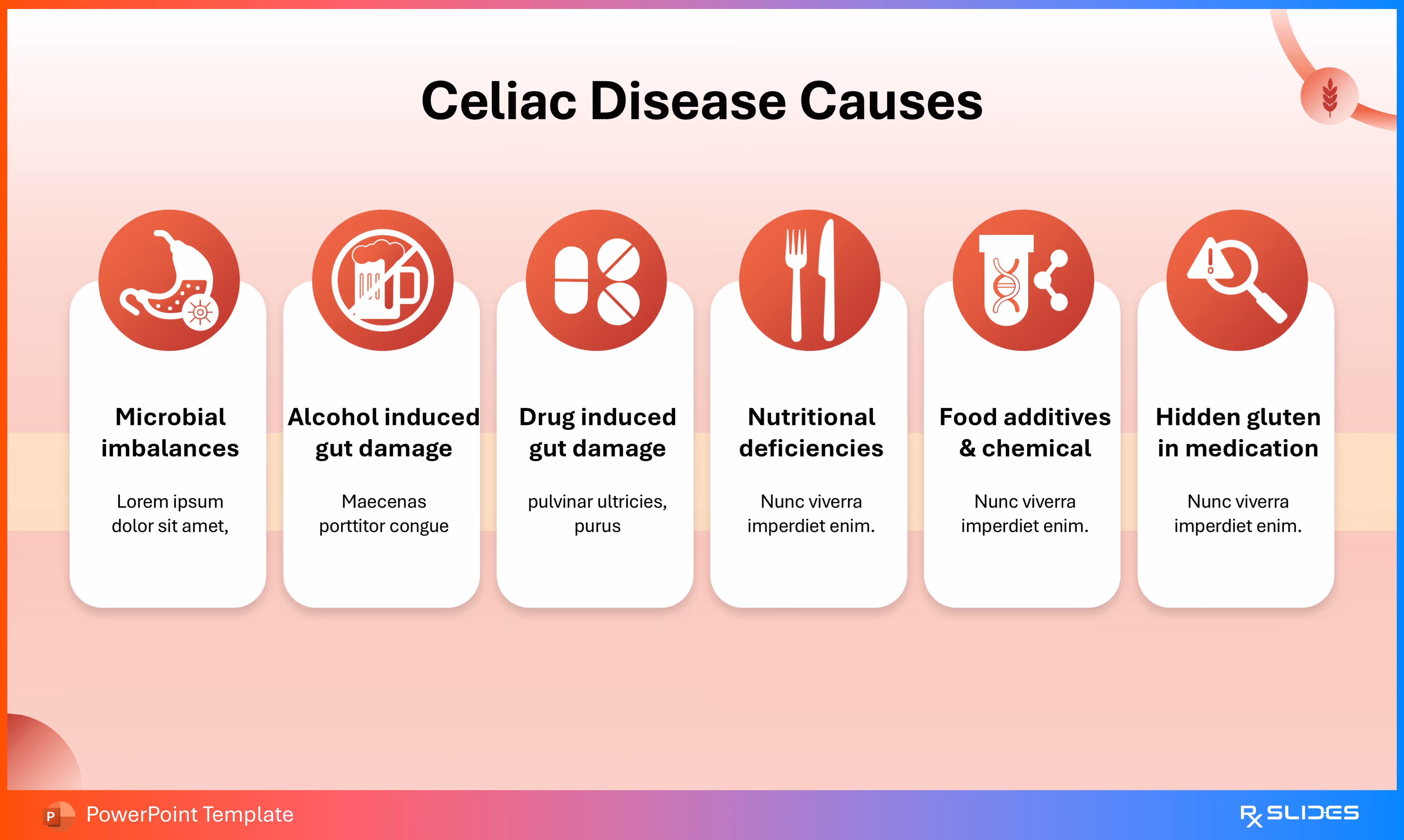 The Celiac Disease PPT template is an animated medical PowerPoint that will help you recognize the entire parts of your presentation. You can rely on our animated infographics to deliver your audience a compelling presentation on celiac disease.