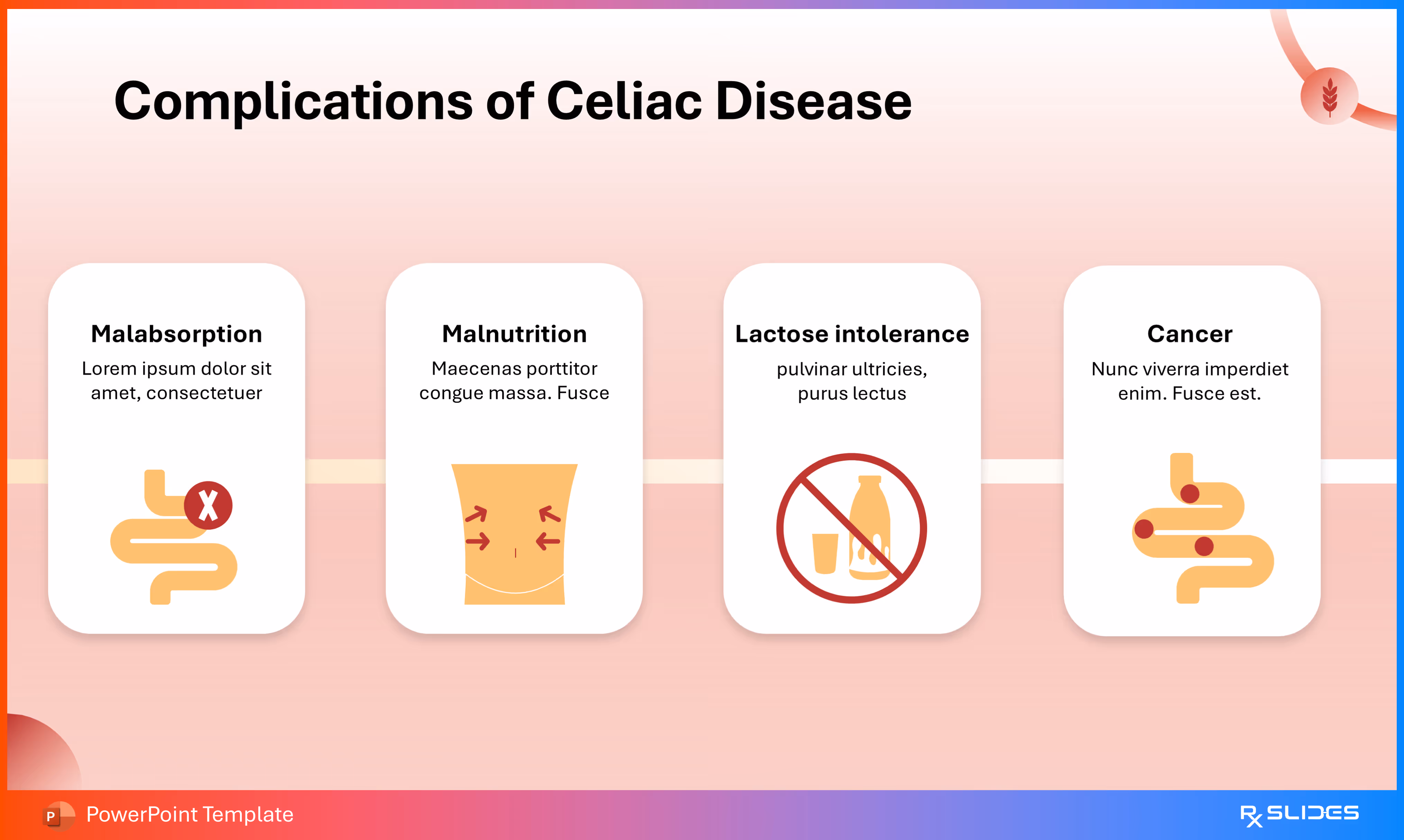 You can use this clear summary slide to reiterate the four most critical long-term complications of Celiac Disease.