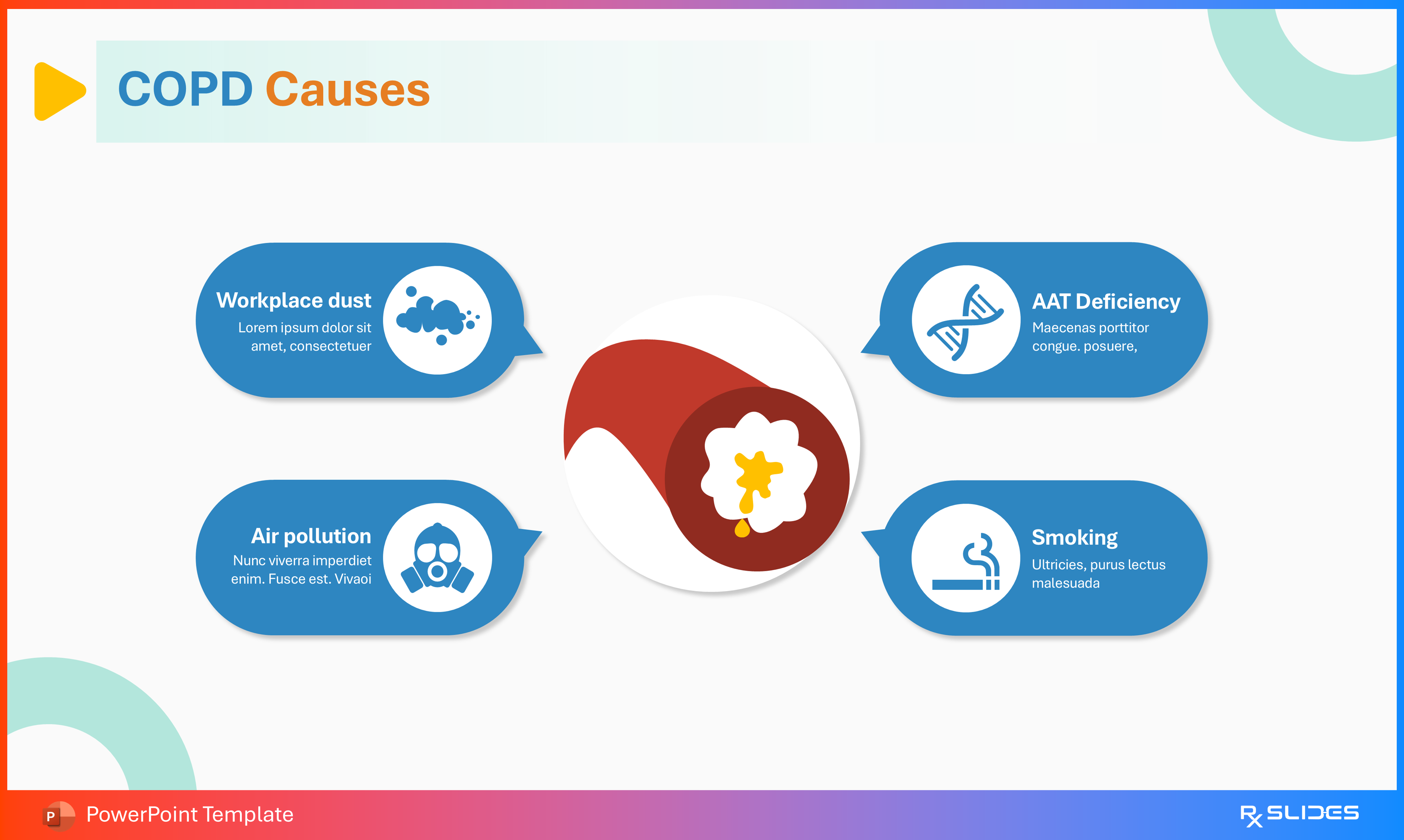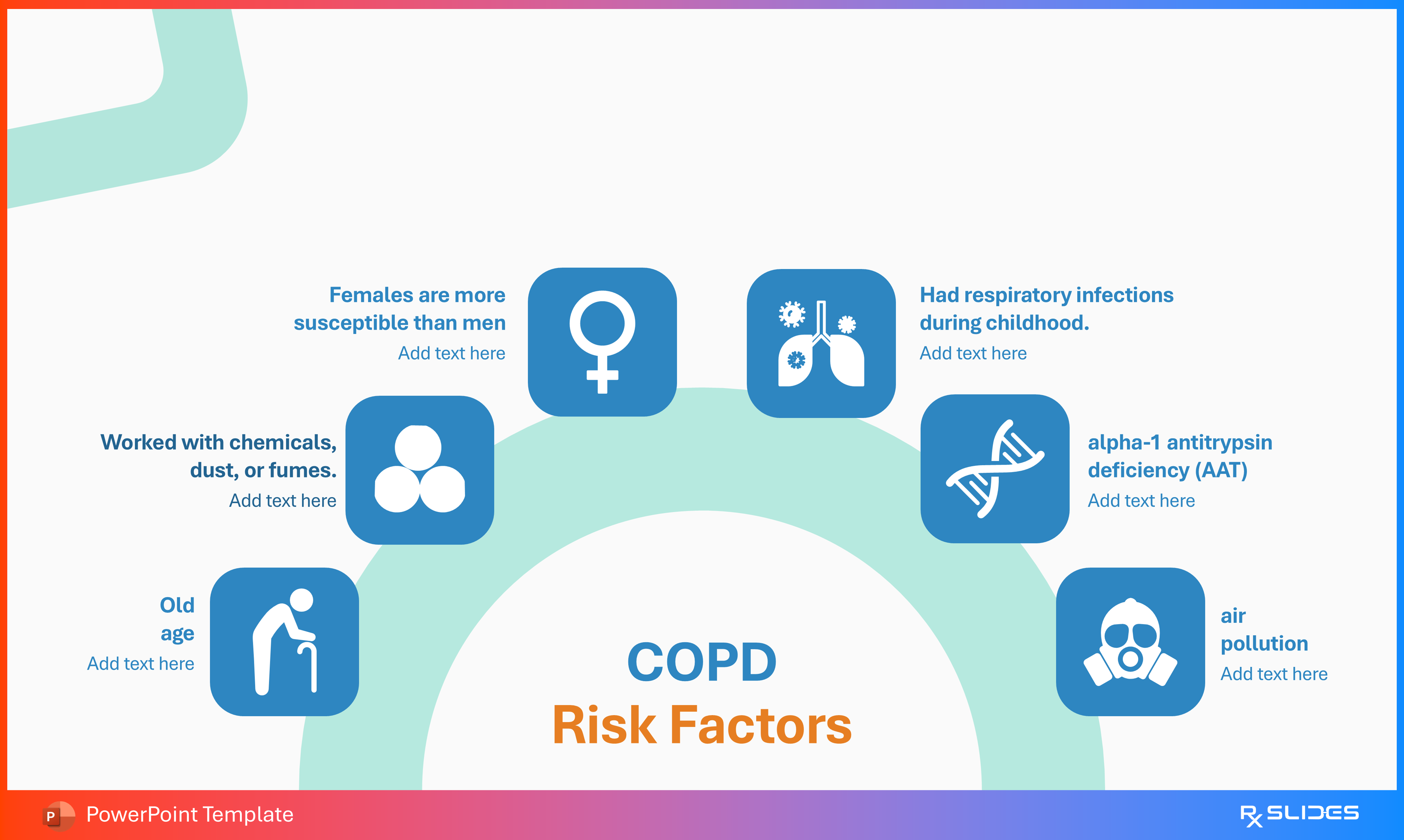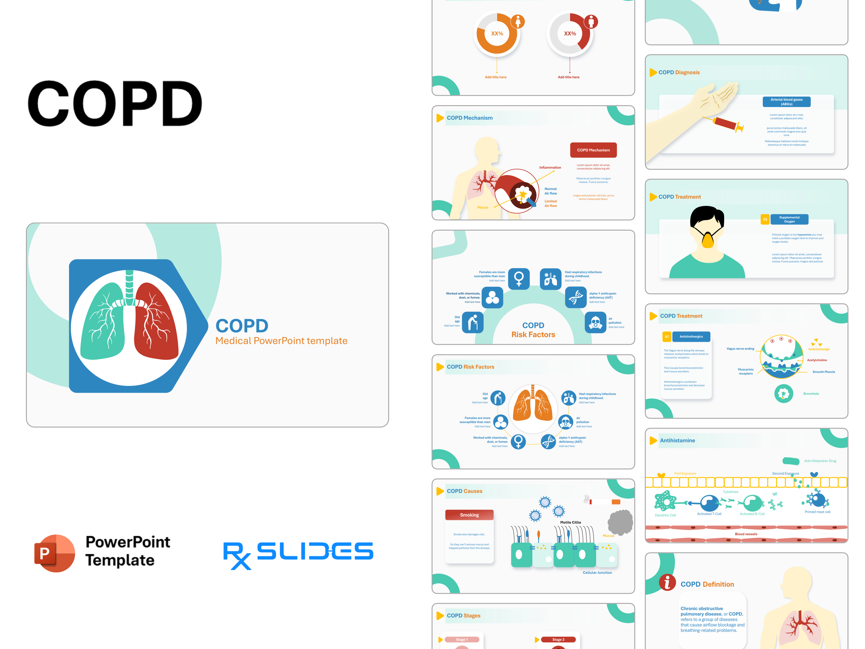 COPD PPT (Chronic Obstructive Pulmonary Disease) animated template is a dynamic medical PowerPoint template that will help you explore the full potential of your presentation.