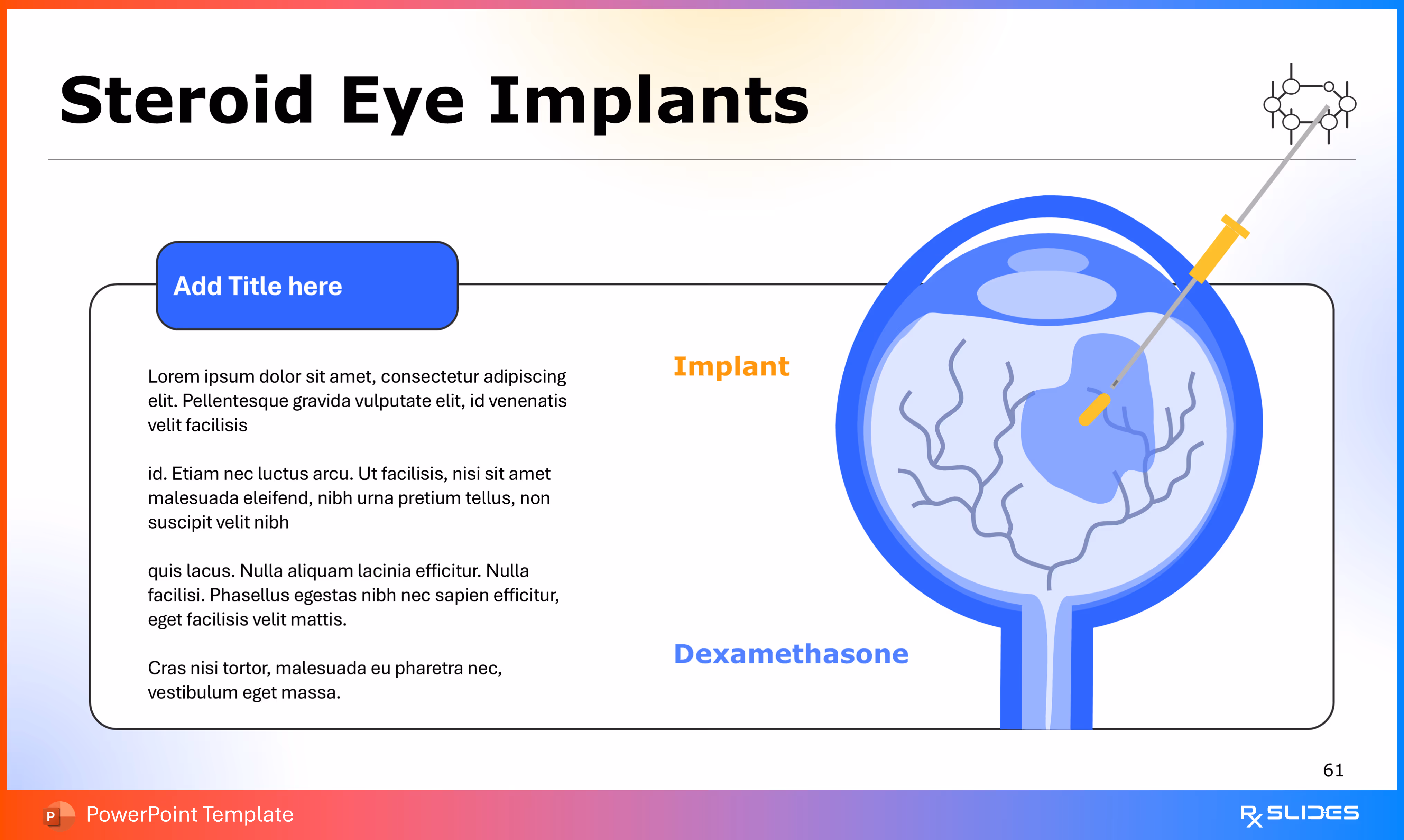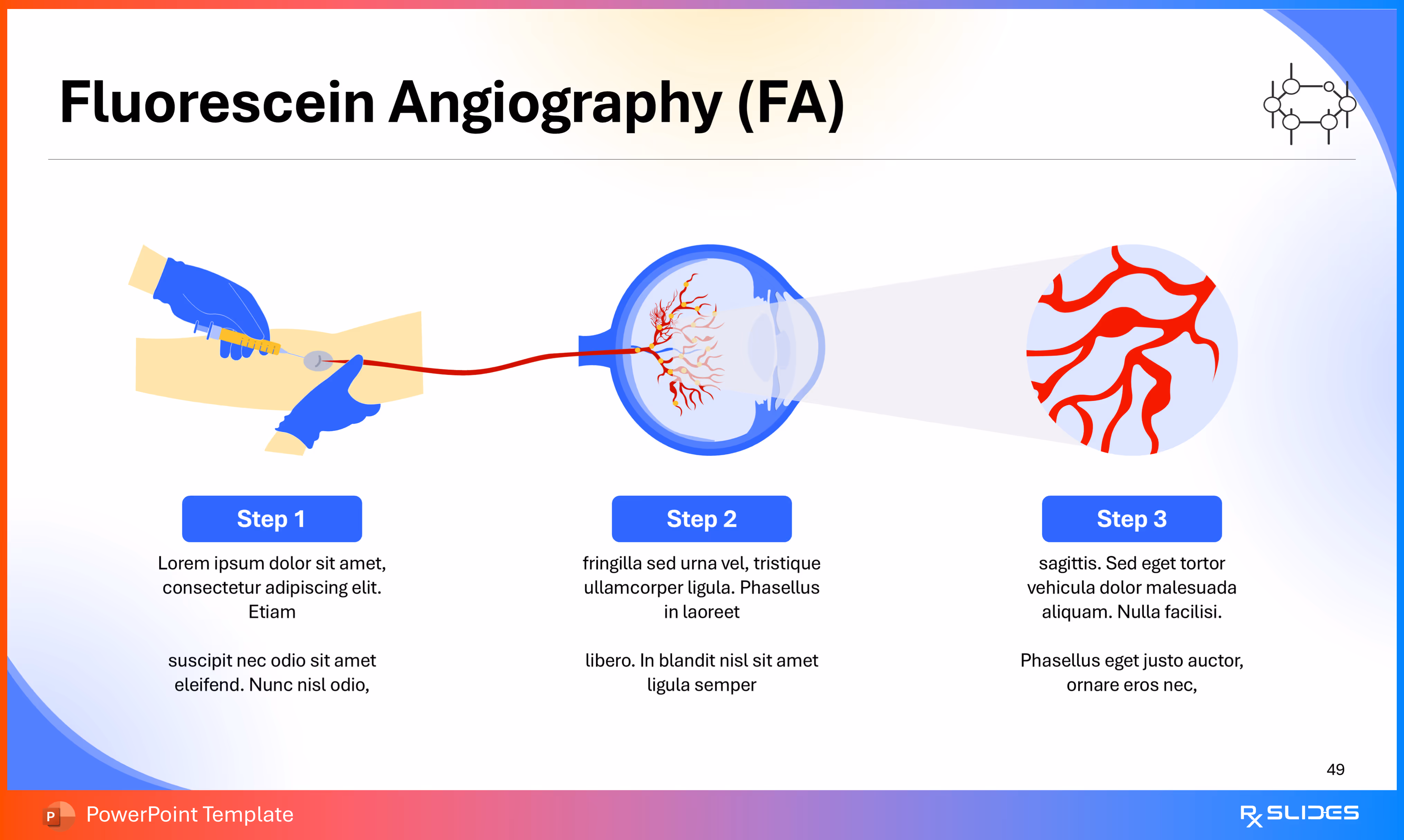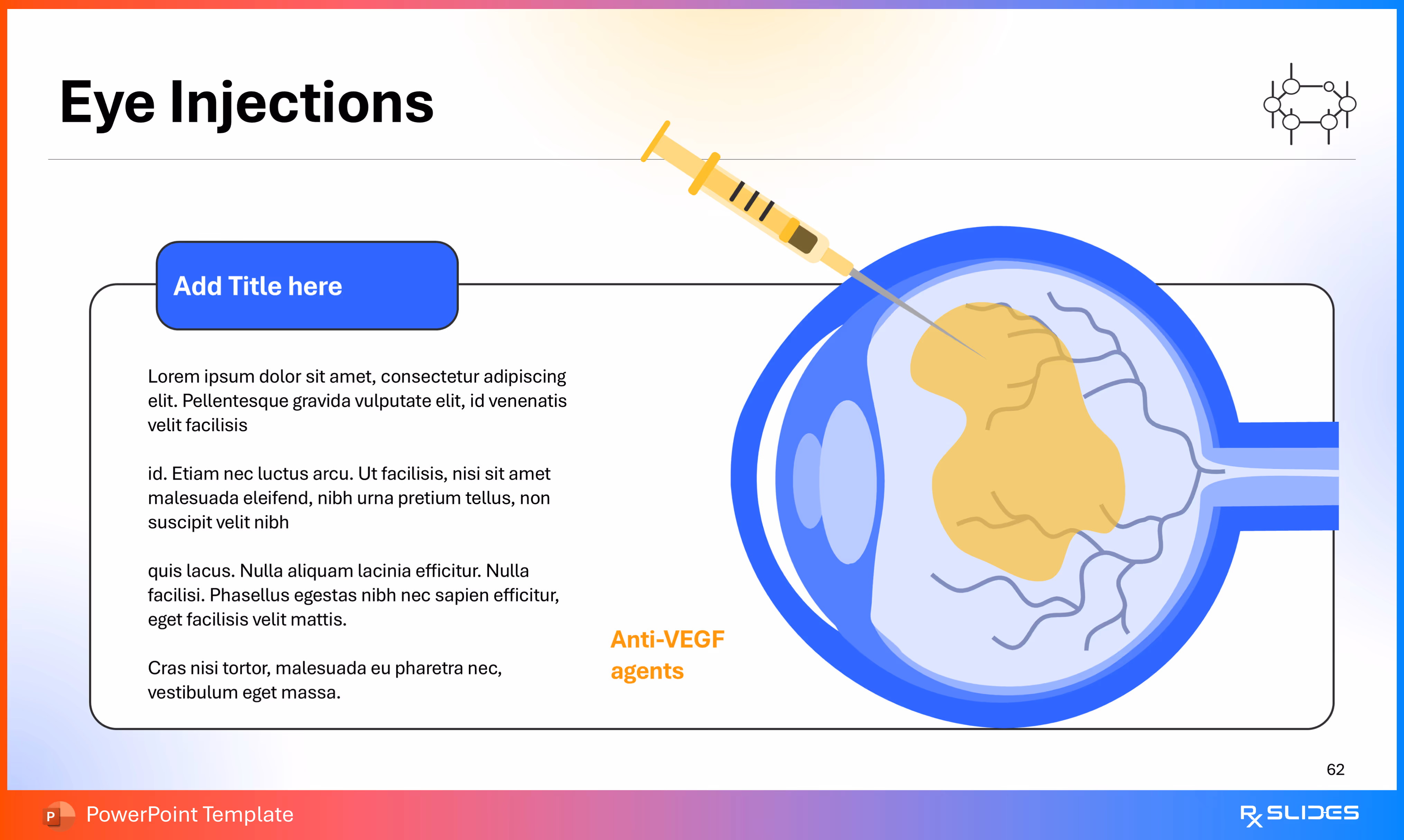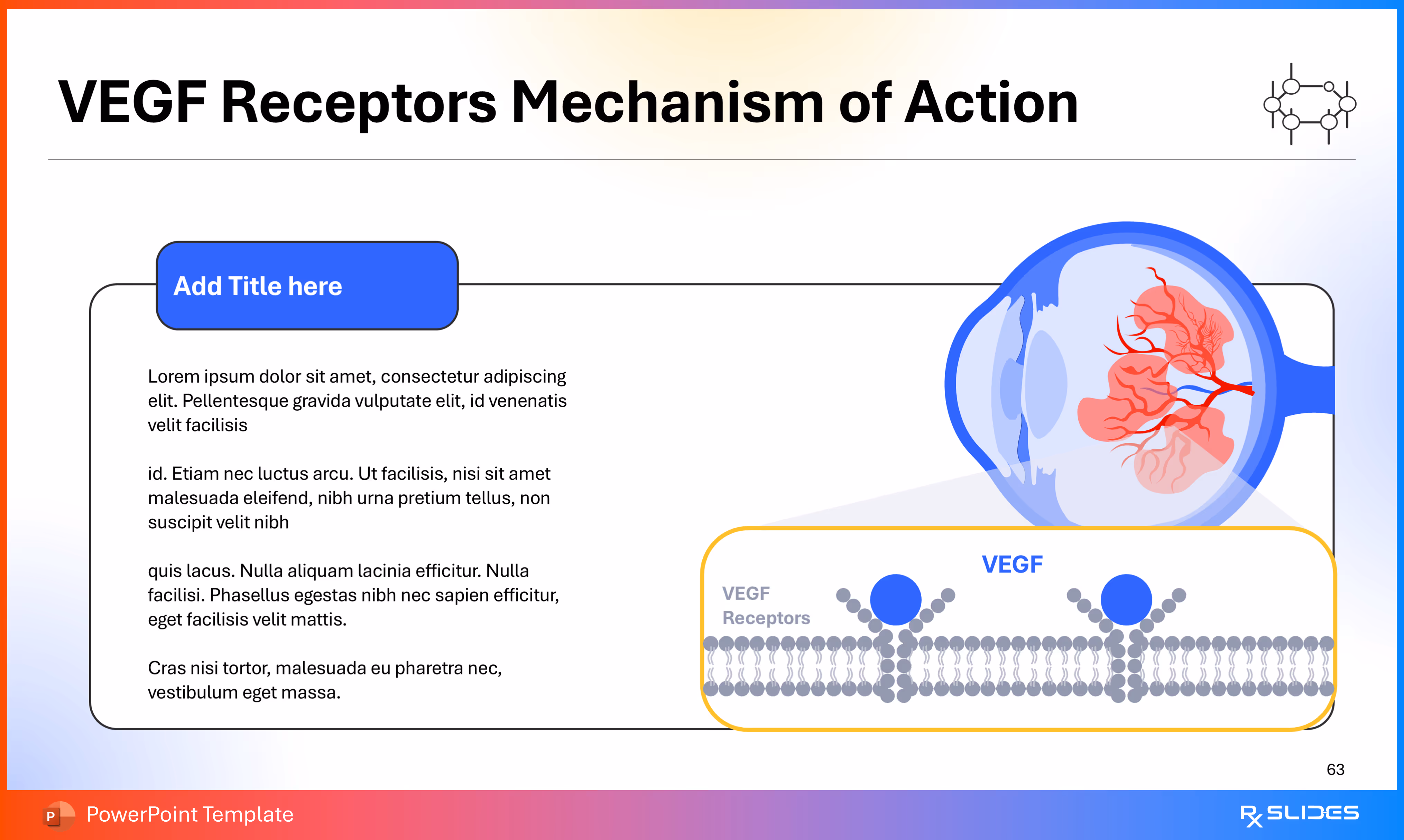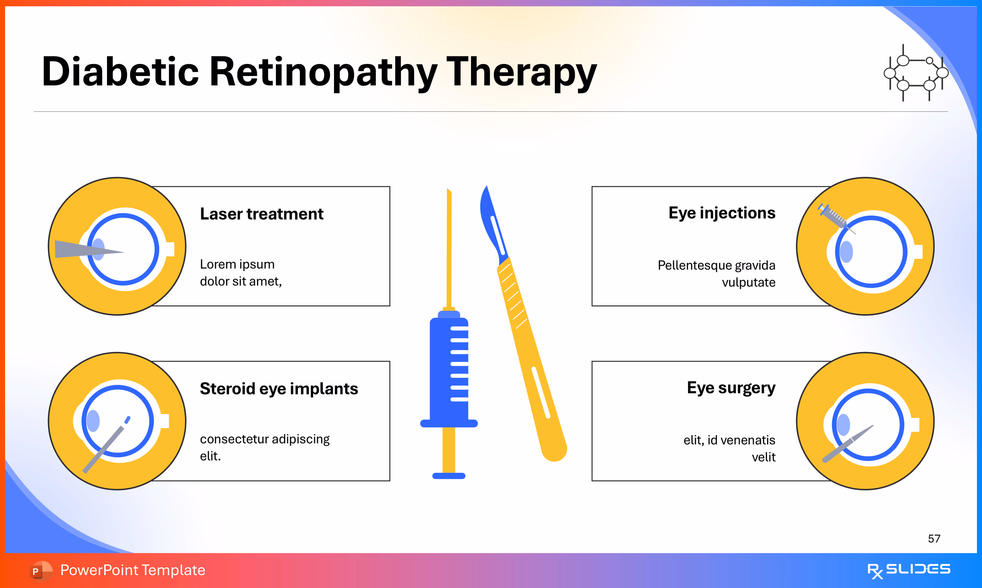 RxSlides presents a Diabetic Retinopathy PPT template to uncover the complexity of this topic in a straightforward, visually appealing way with the help of engaging animations.