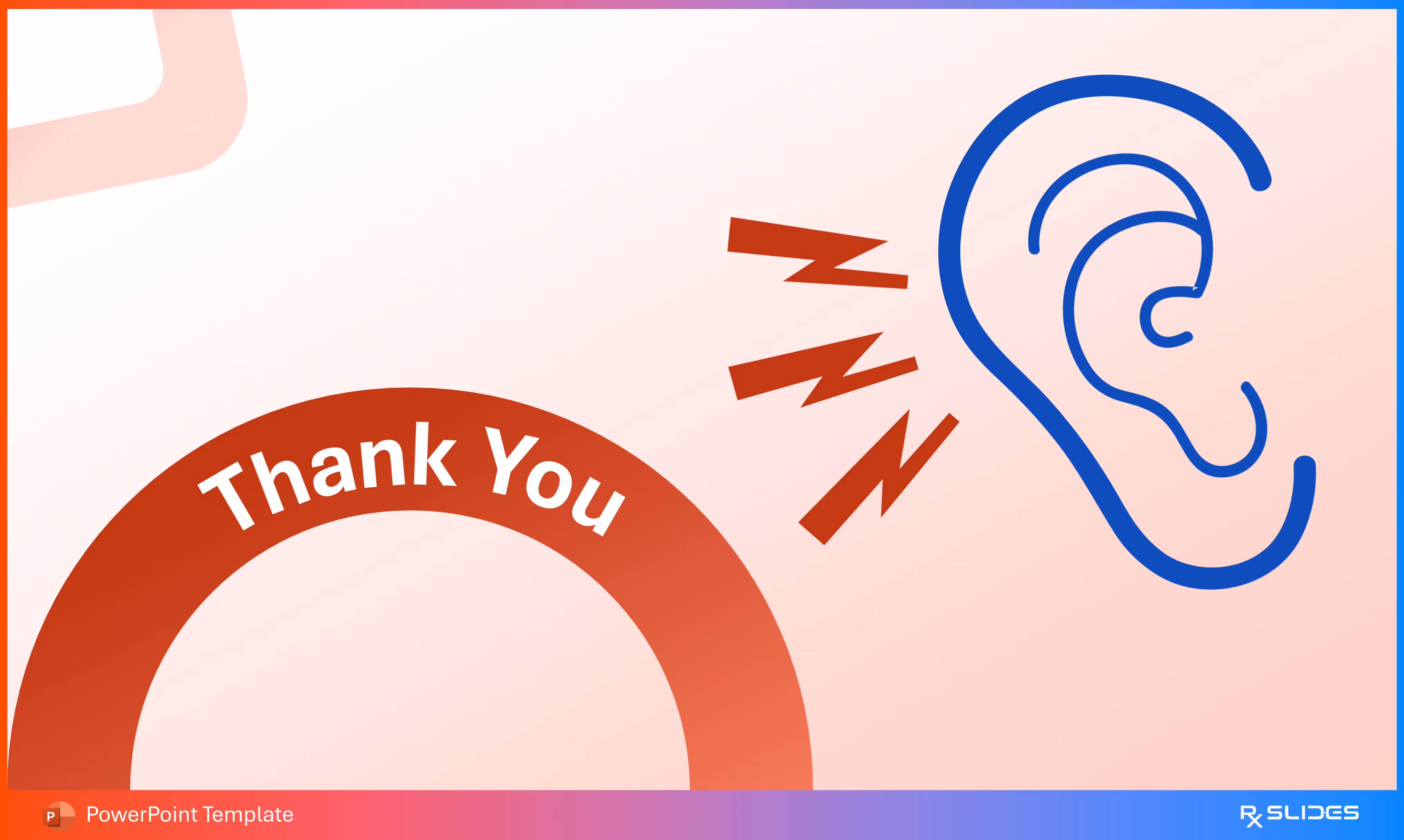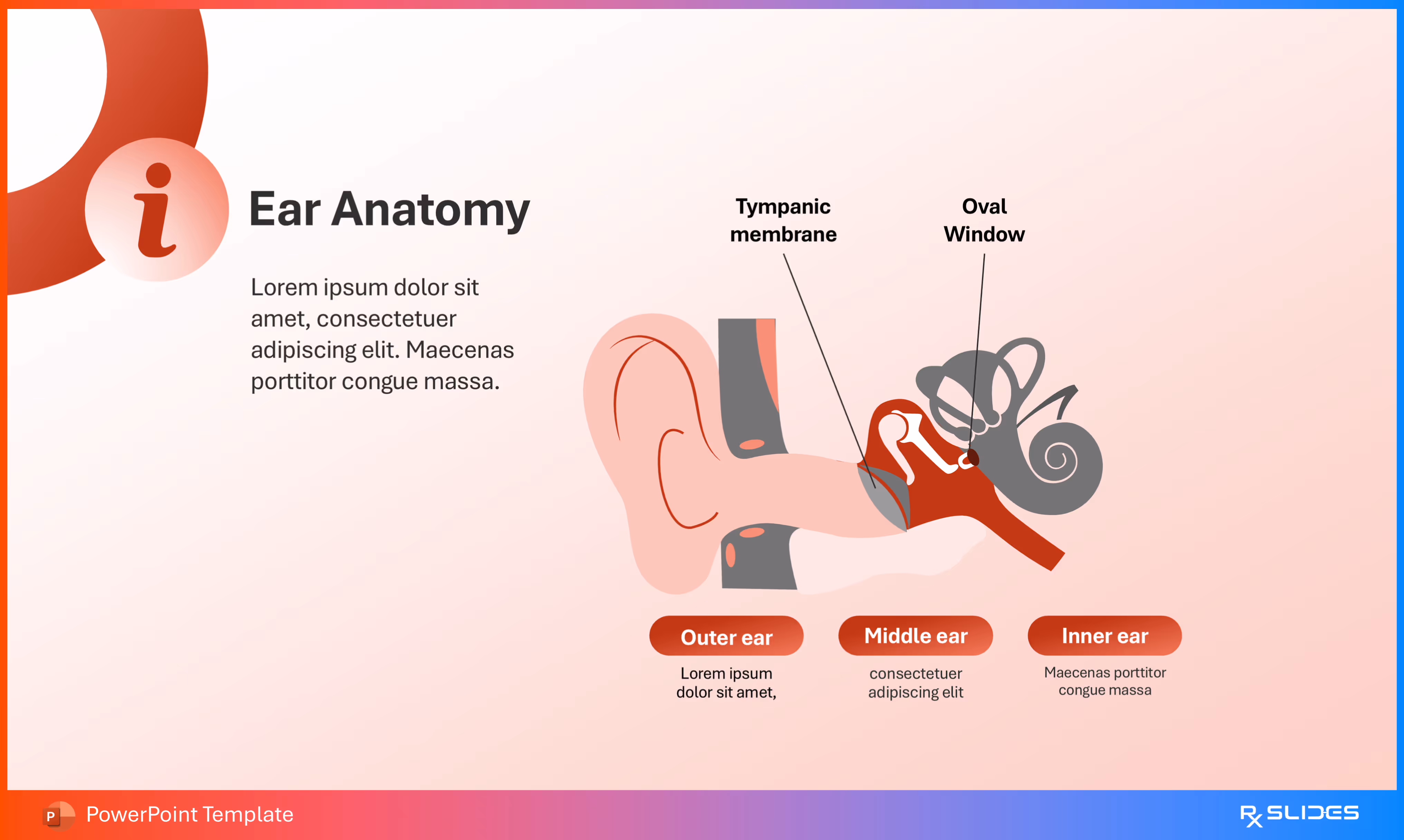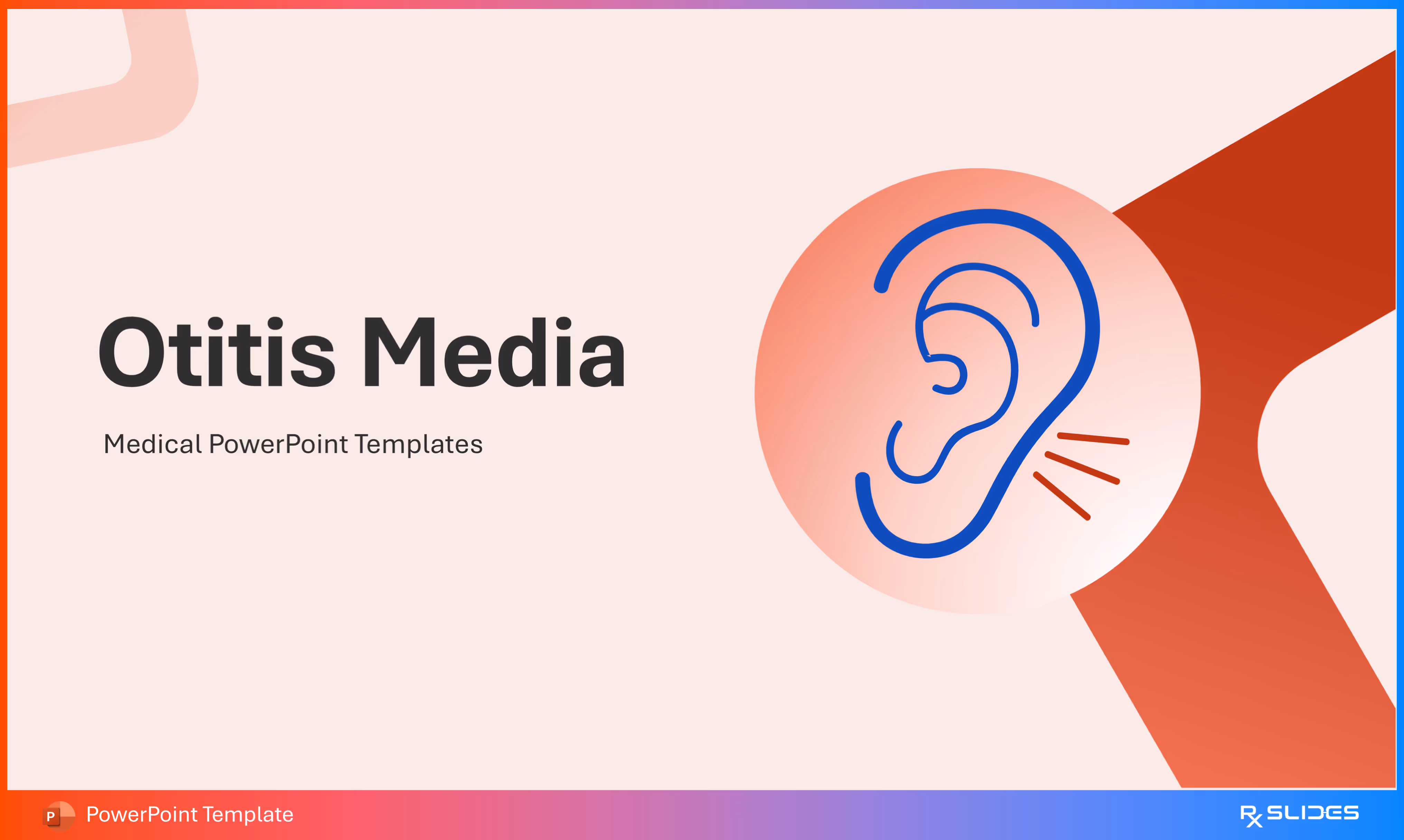 The slide features a large, stylized blue ear icon on a pink, rounded-square shape, with red sound/pain lines.