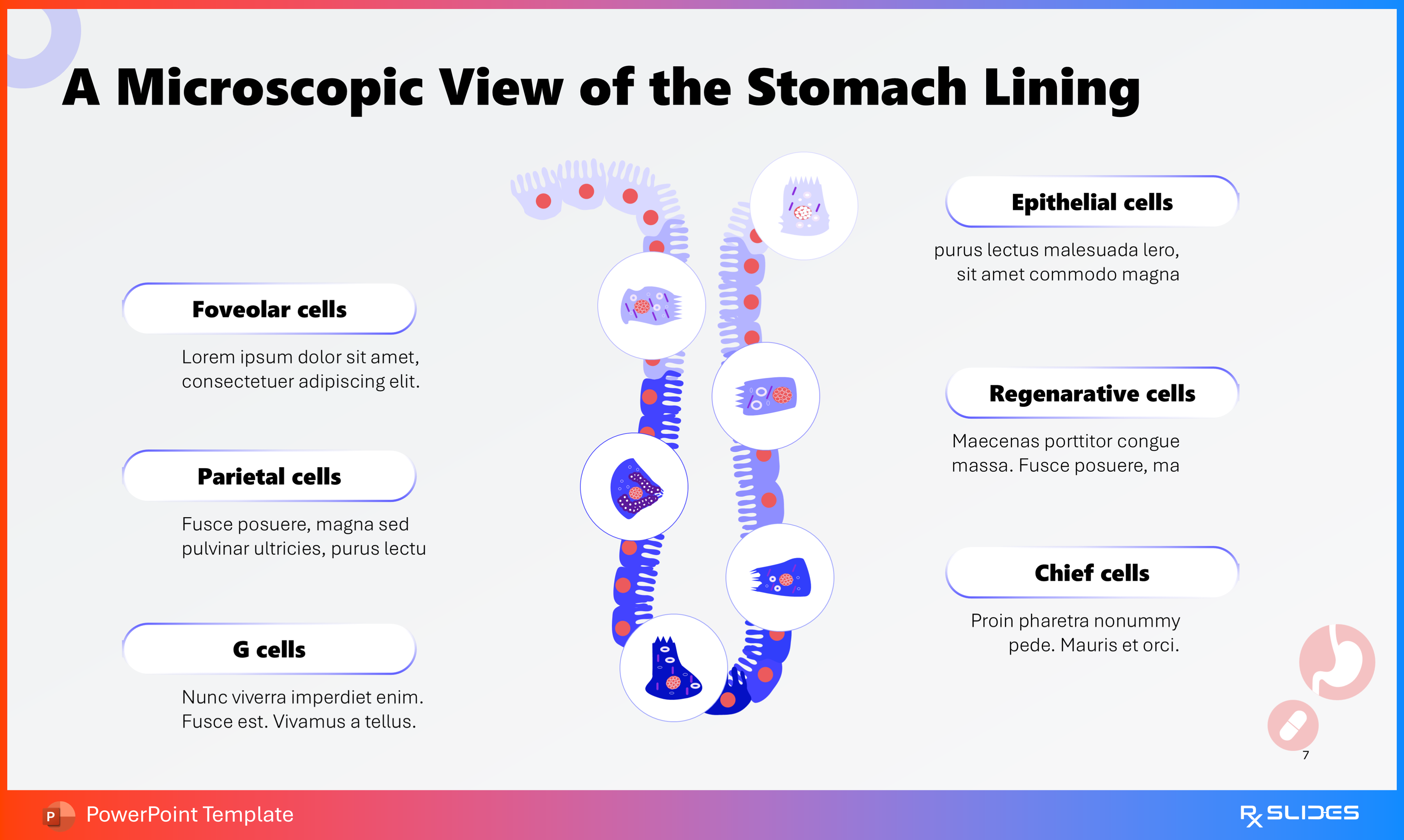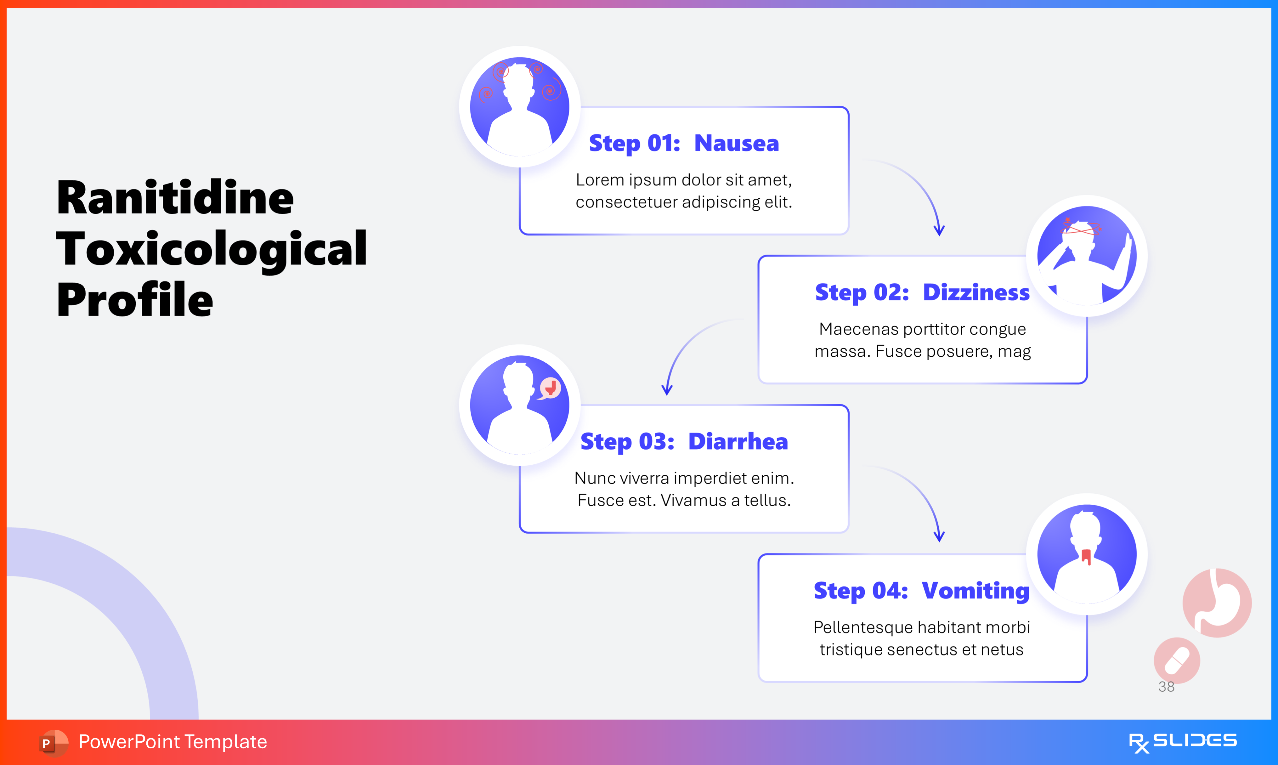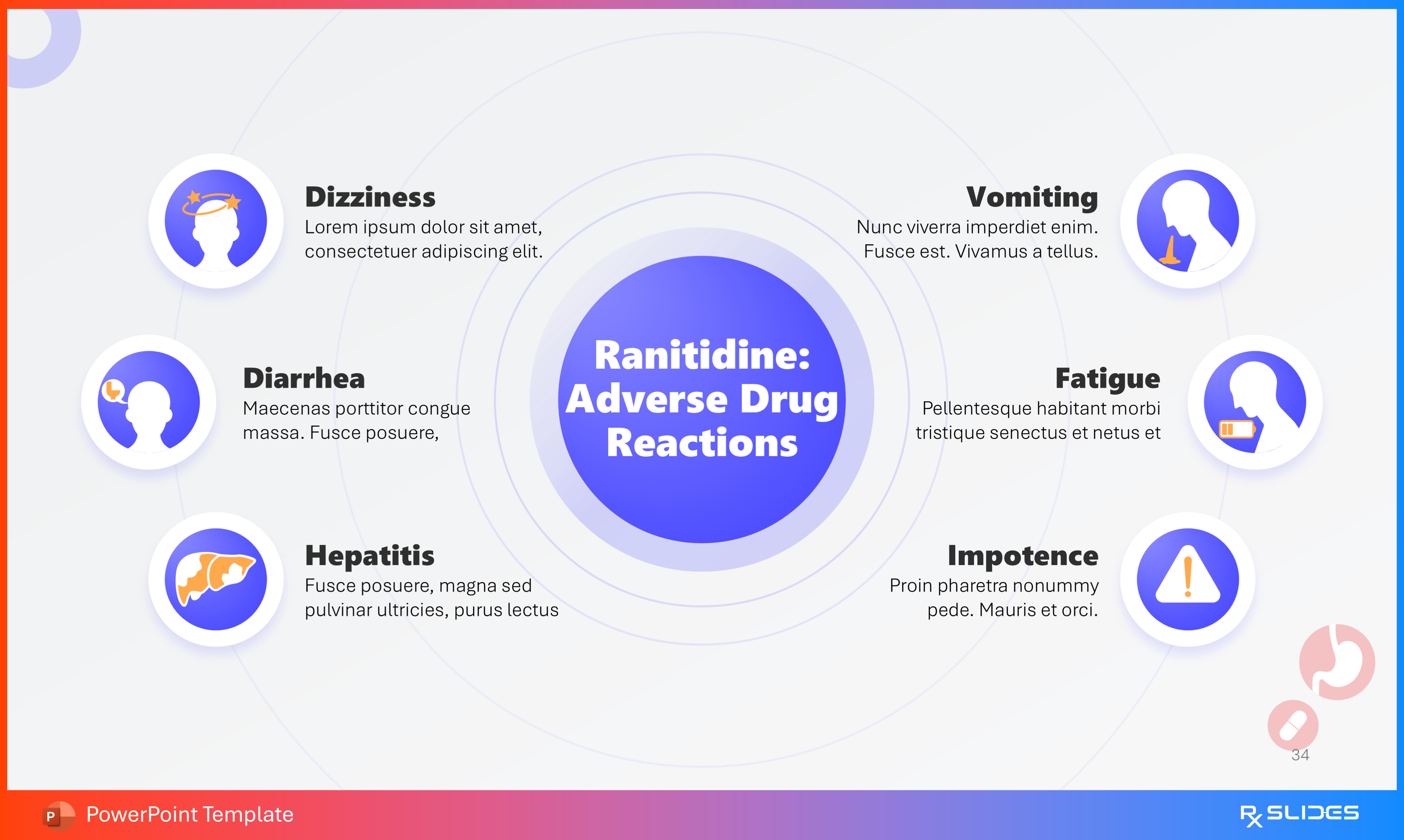 Present the complete pharmacological profile of ranitidine with this professional, medically accurate PowerPoint template. Designed for pharmacists, medical educators, and clinical presenters, this 47-slide deck offers a comprehensive visual guide to H2 blockers. From high-resolution microscopic views of the gastric mucosa to detailed diagrams of the proton pump mechanism and comparative pharmacokinetics, this template transforms complex drug data into clear, easy-to-understand visual narratives. It covers every aspect of the drug's lifecycle—from molecular structure and metabolism to clinical indications and safety profiles.