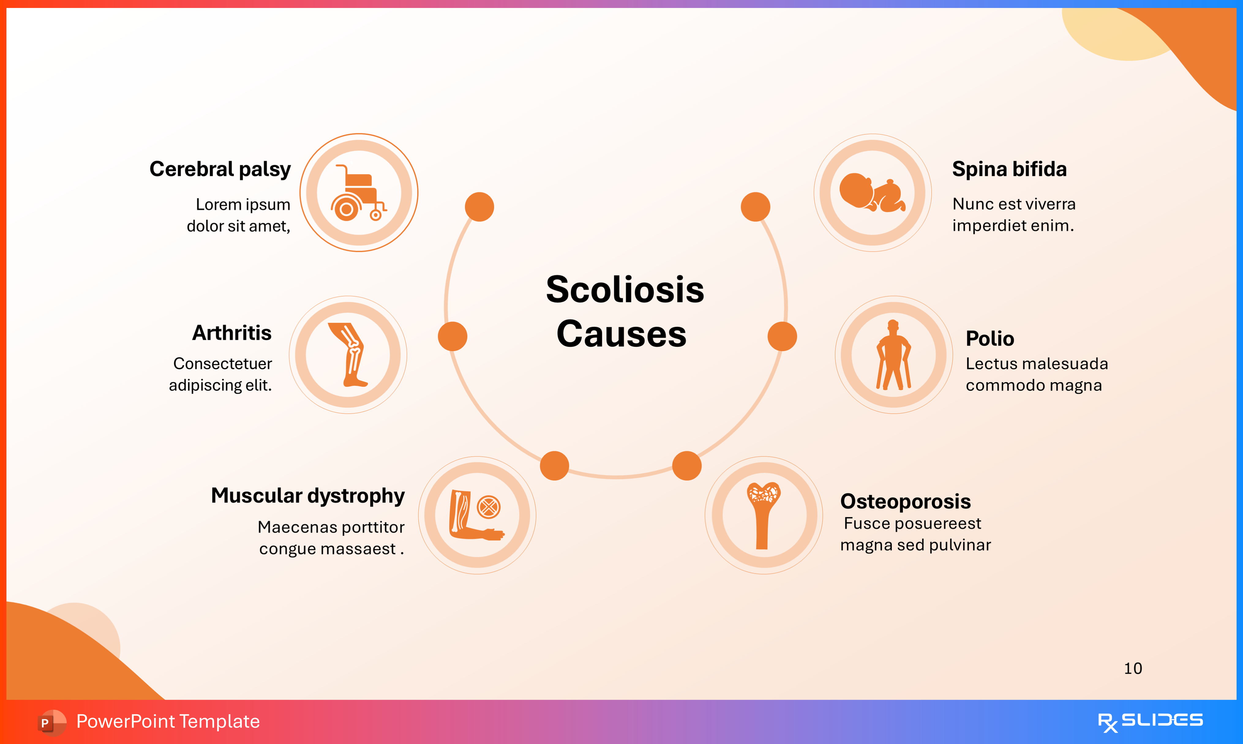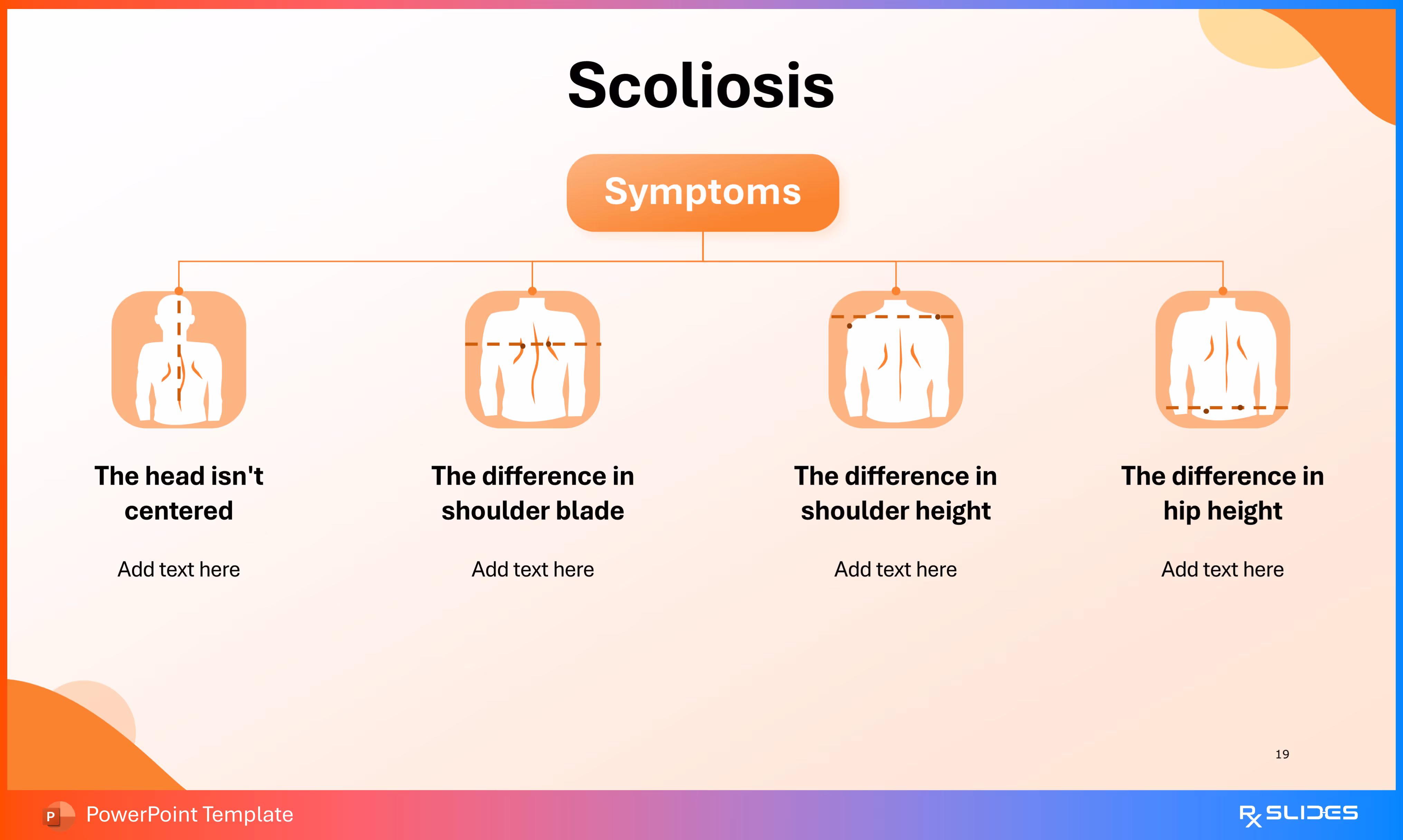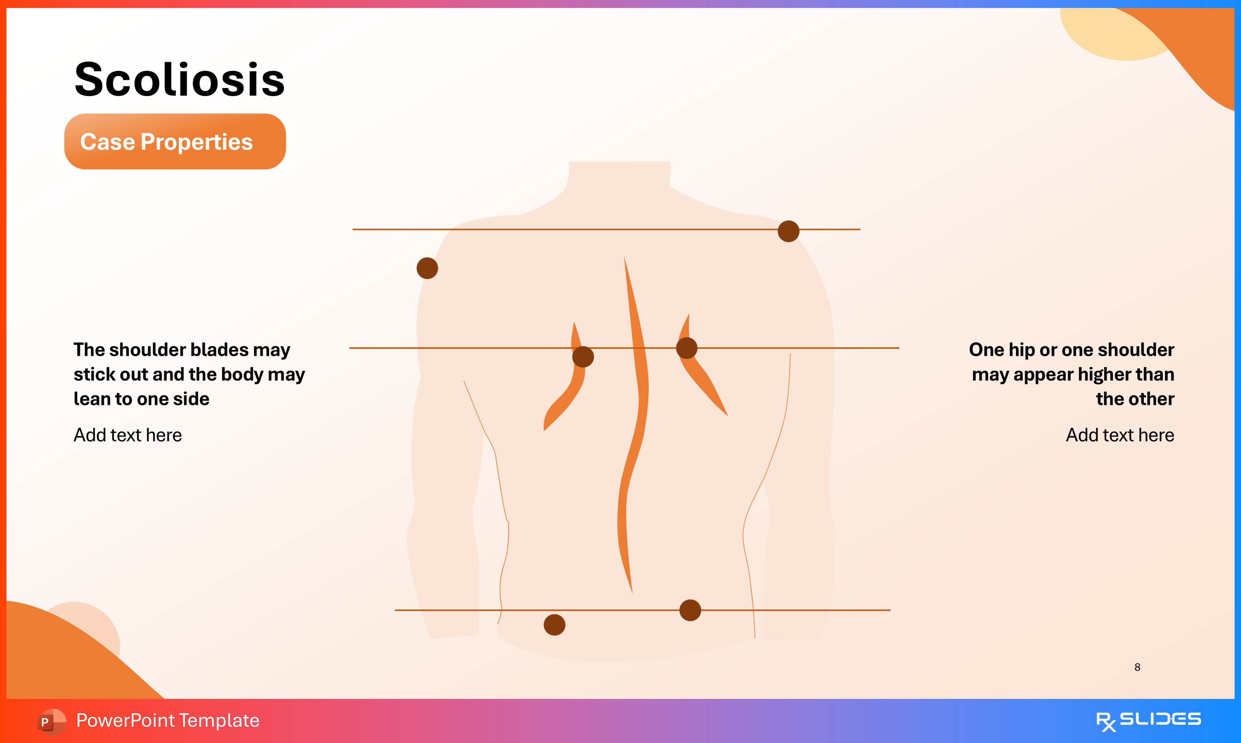 You can take advantage of our demonstrated infographics to provide your audience with a dynamic and appealing scoliosis presentation.