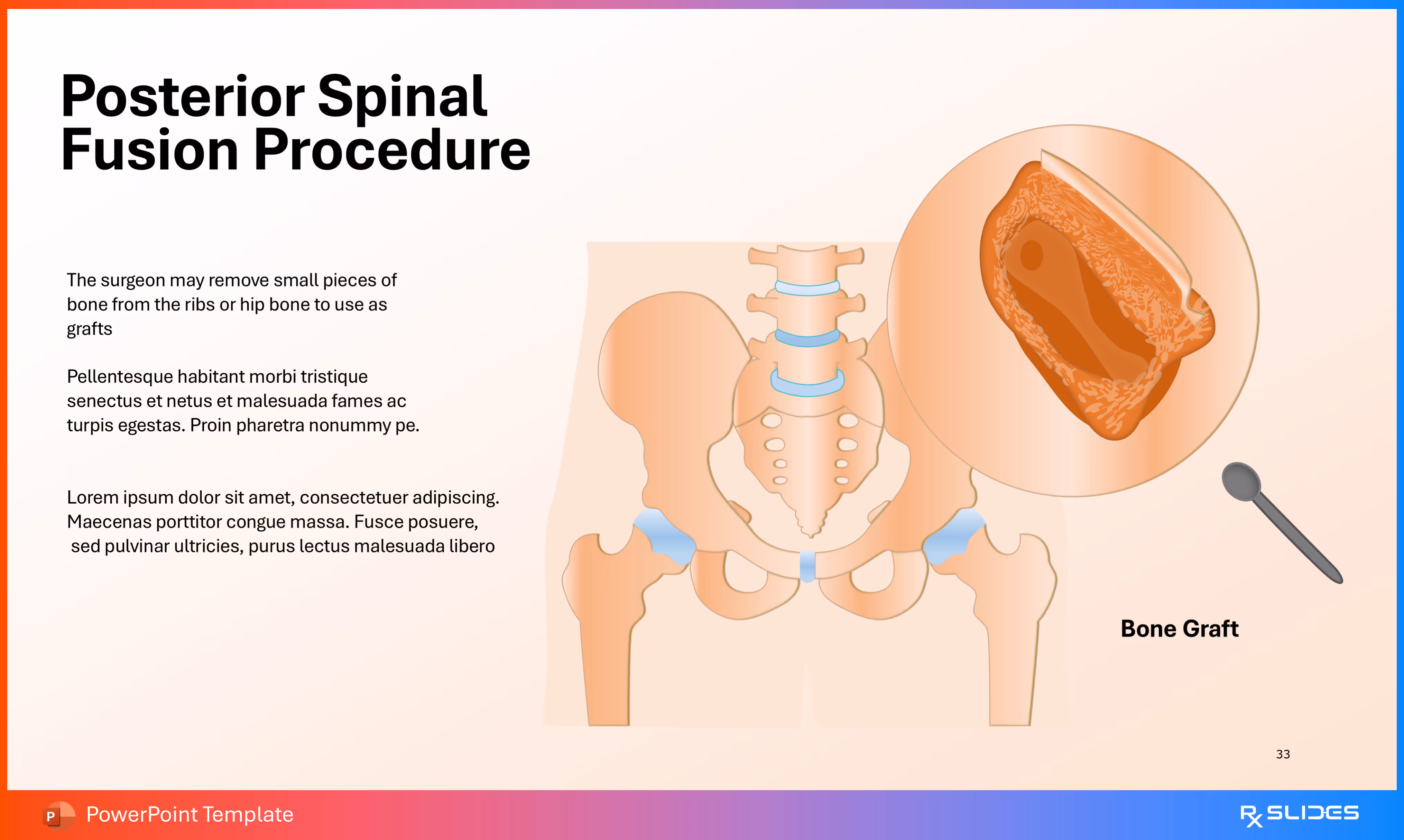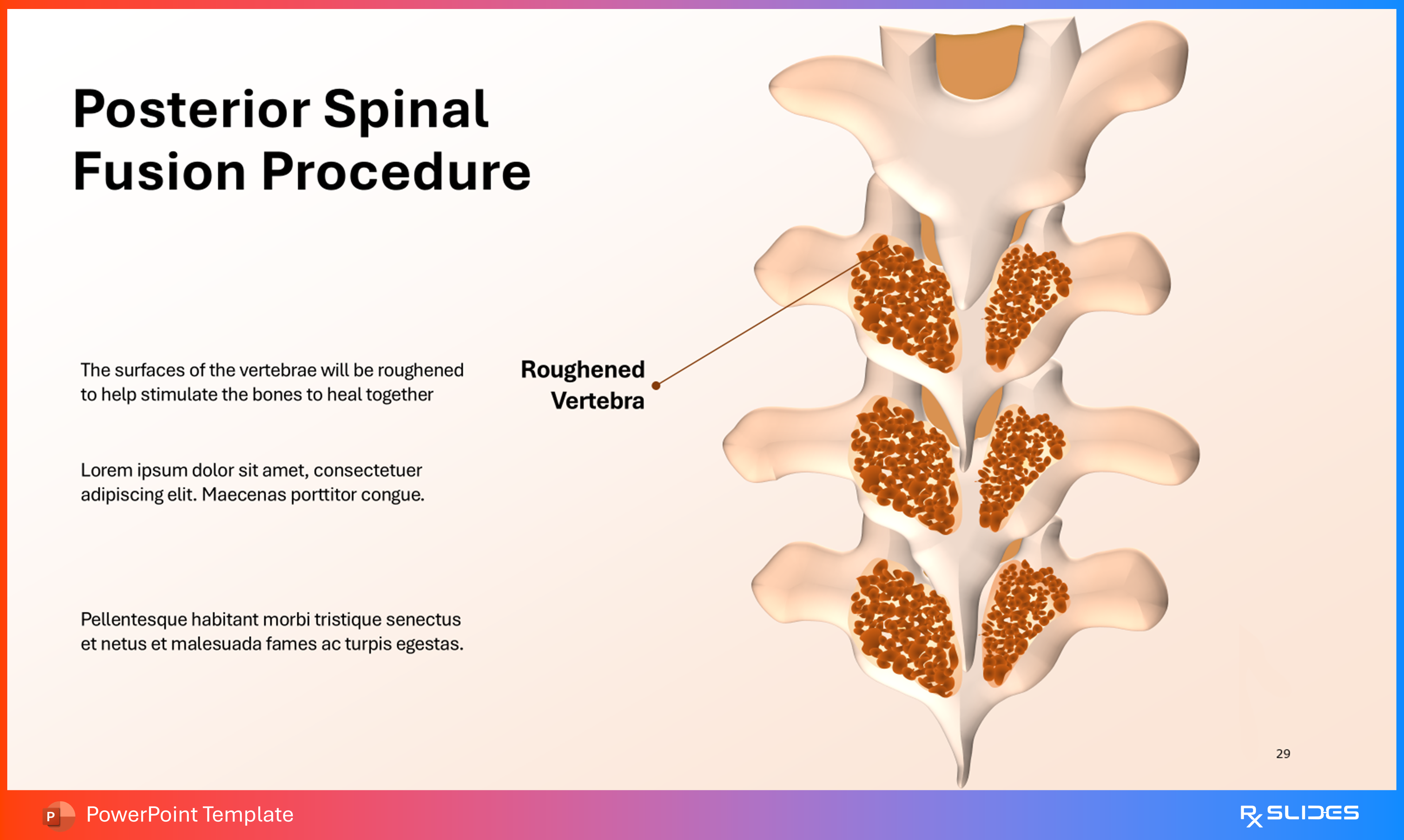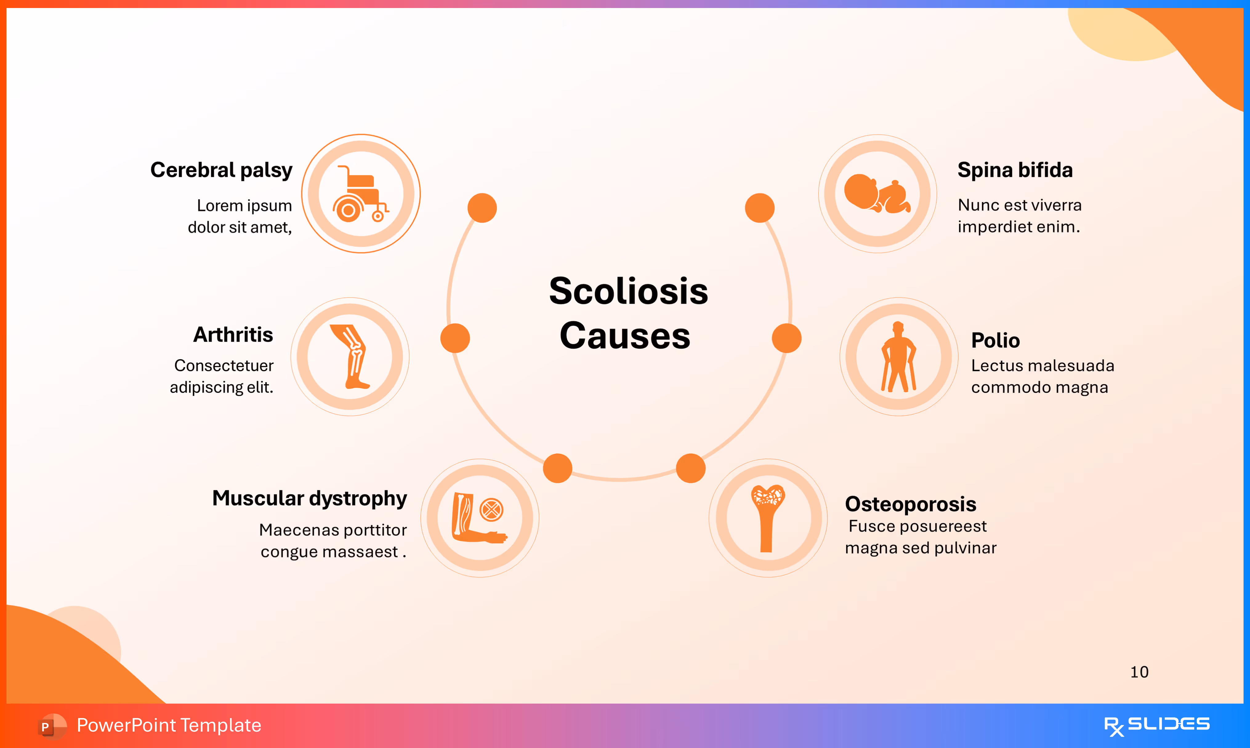 This template is one of RxSlides library of musculoskeletal PowerPoint templates includes other medical animations and infographics that will attract your audience.