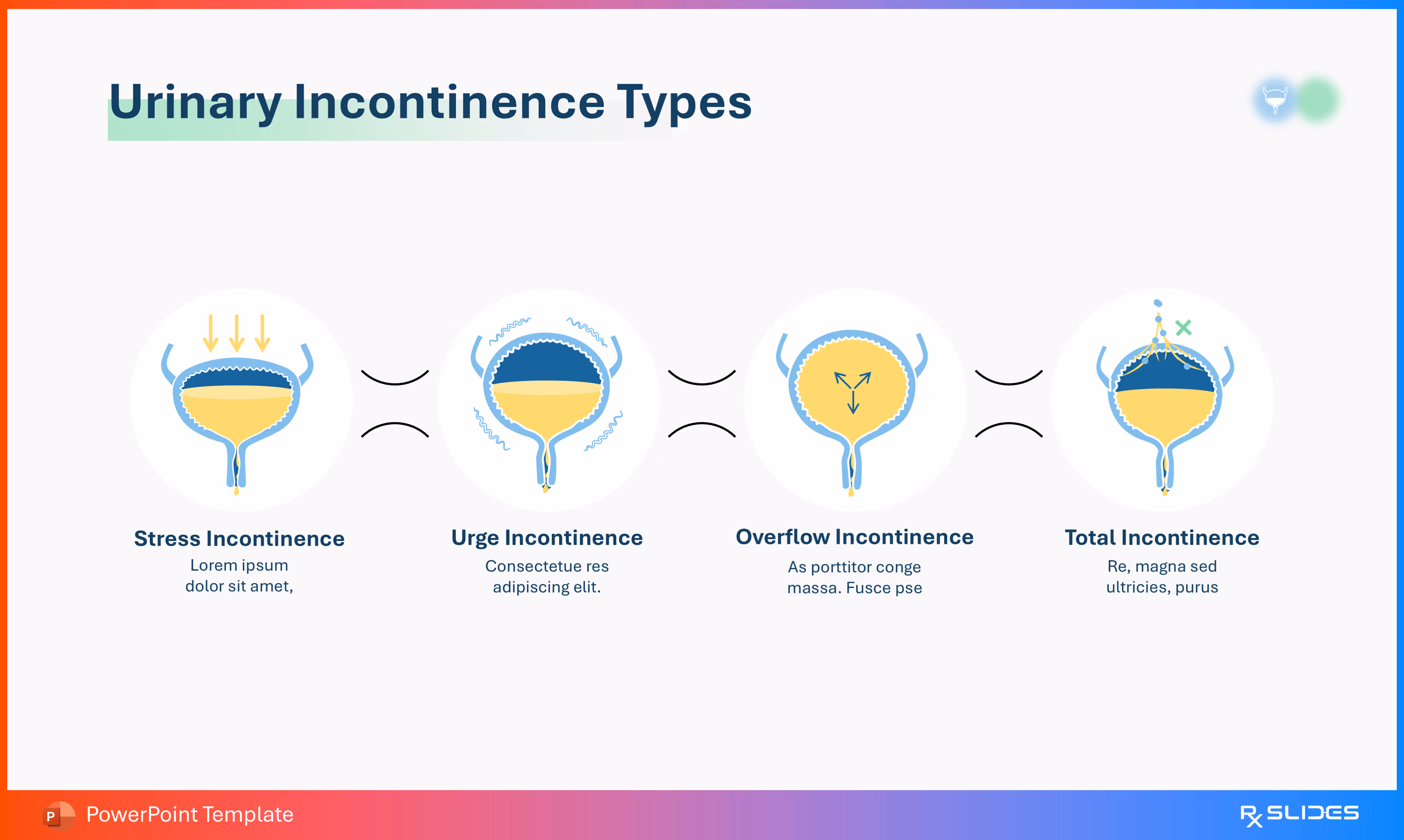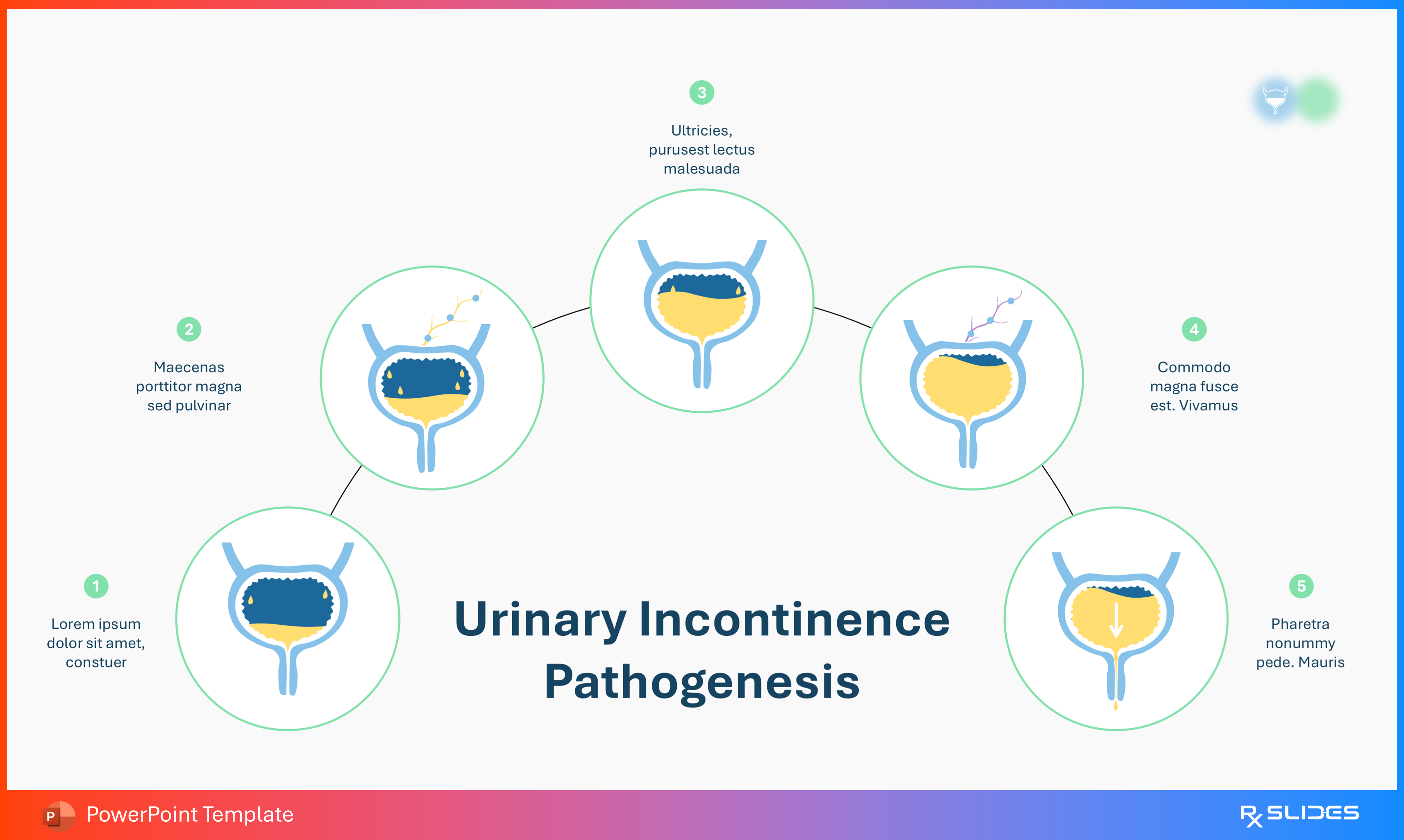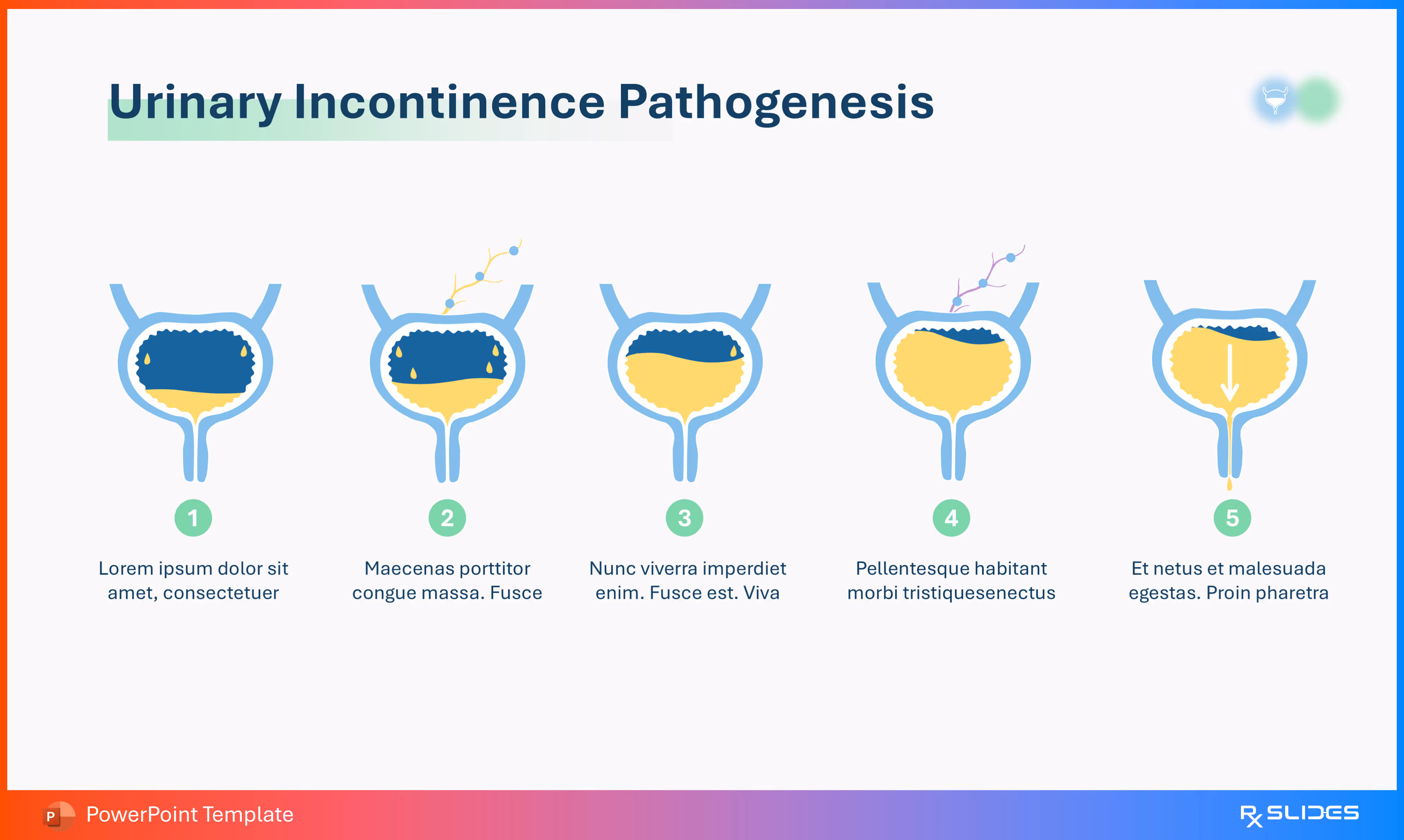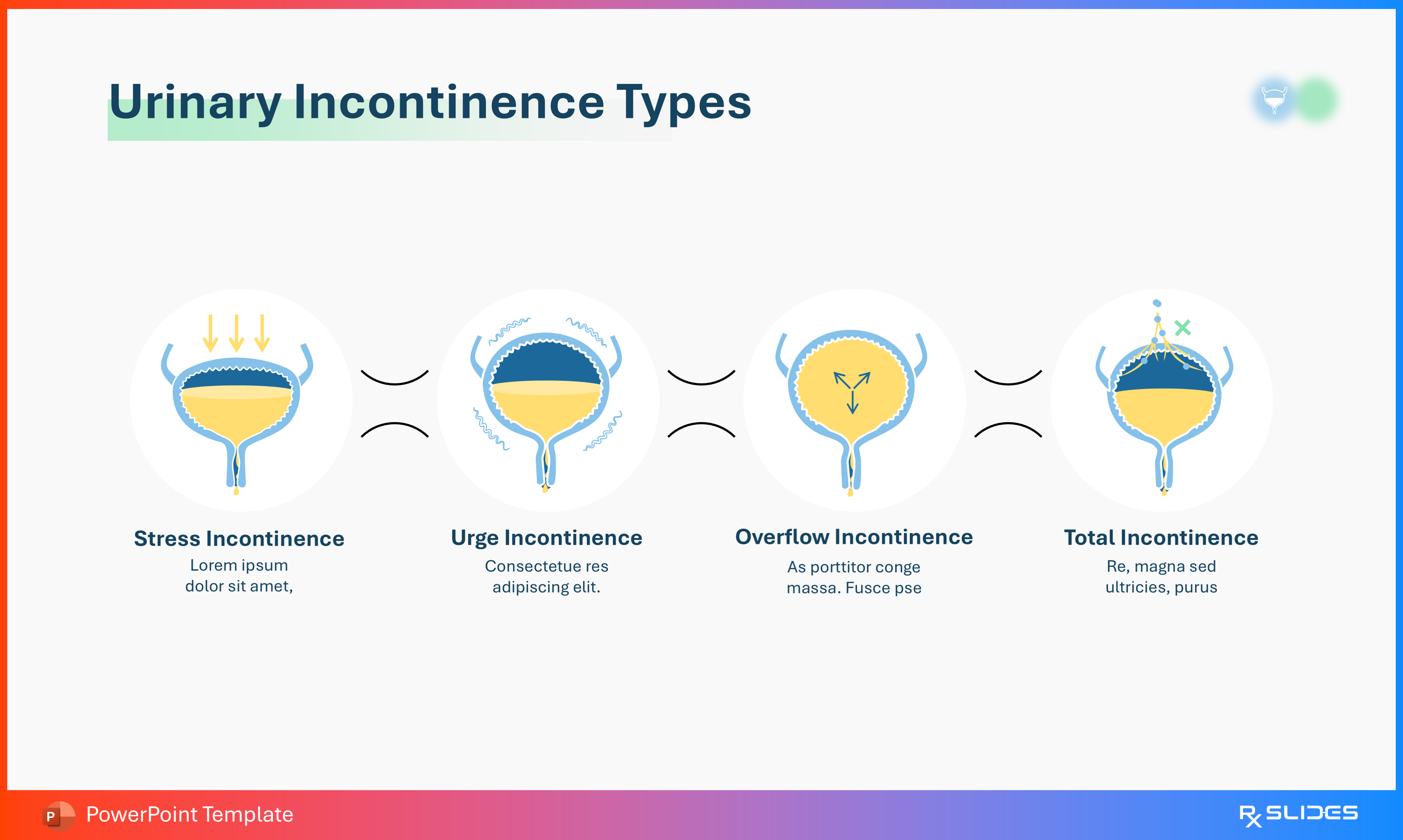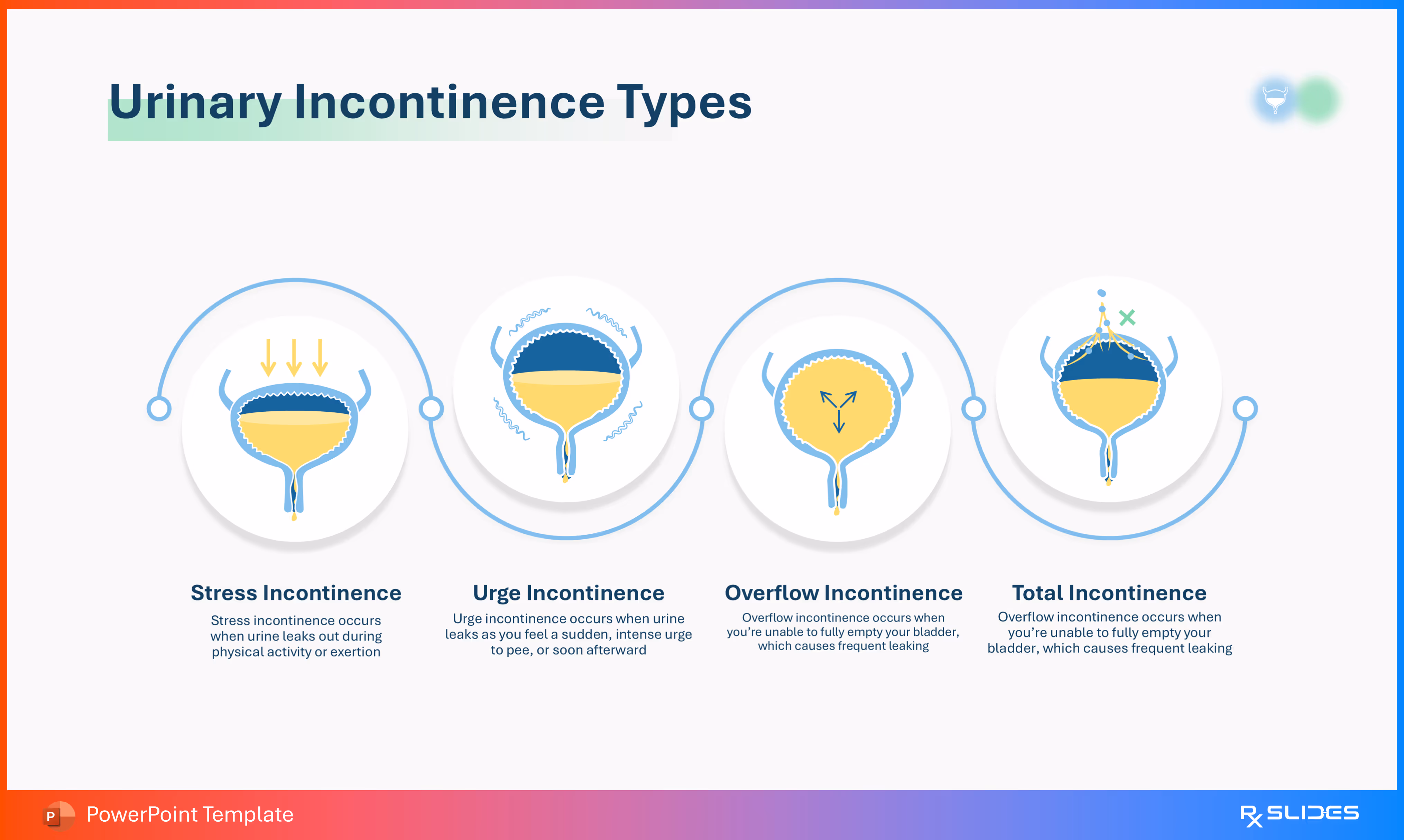 The urinary incontinence PPT is a dynamic medical PowerPoint template that can enhance the effectiveness of your presentation.