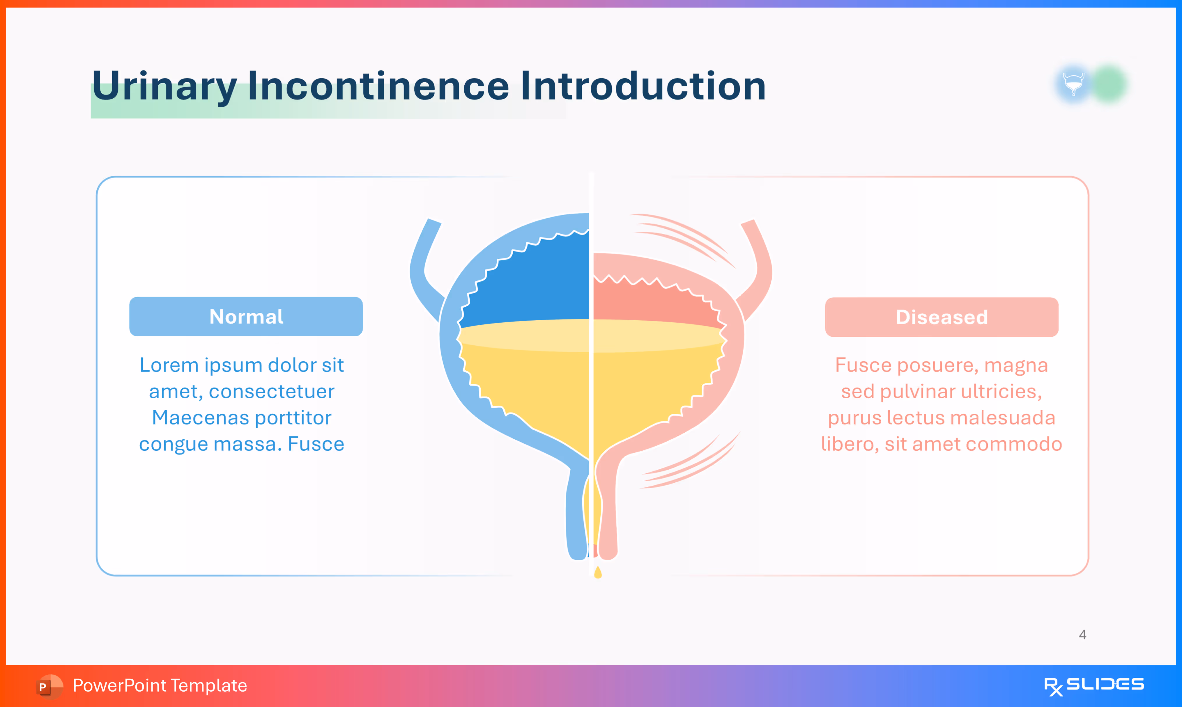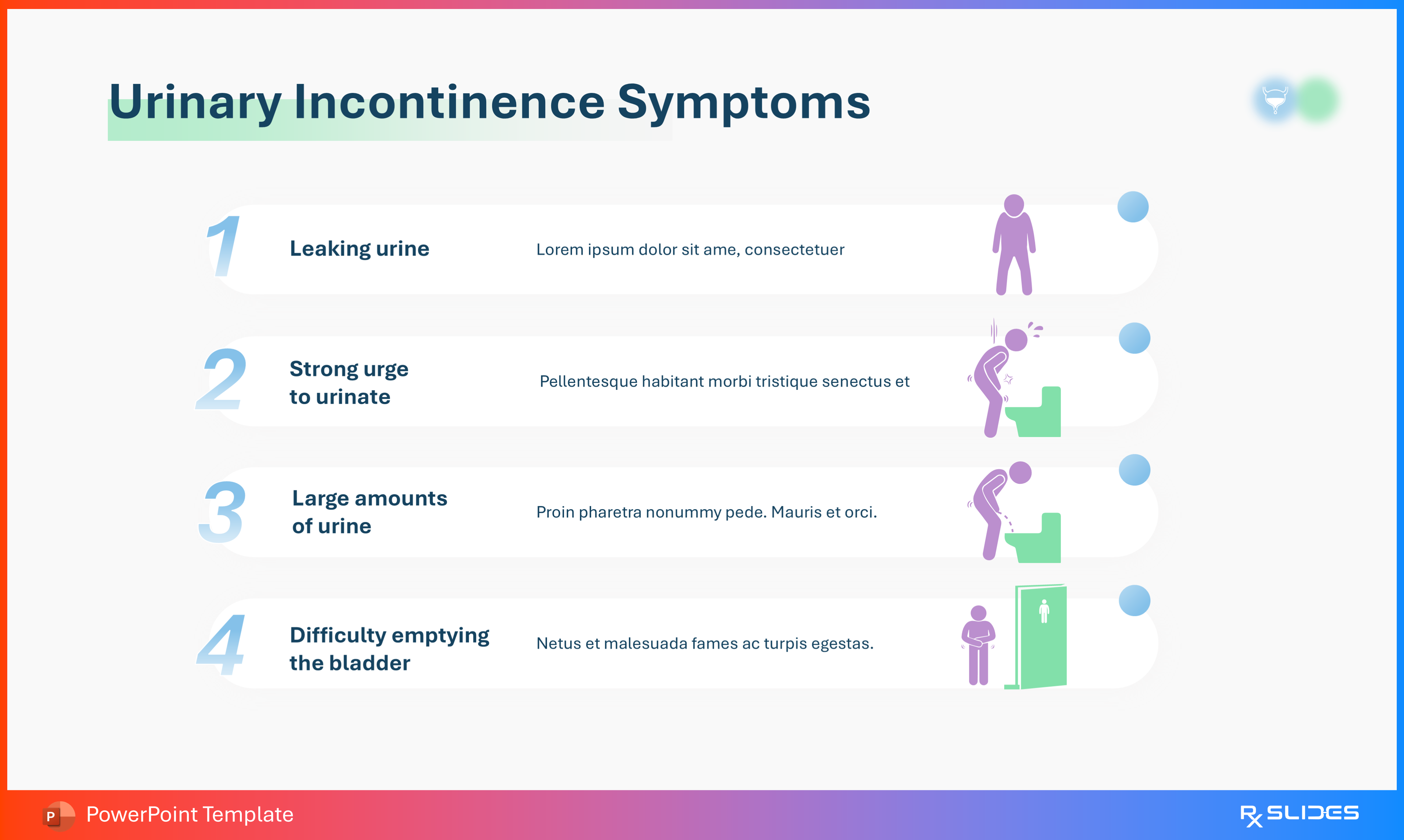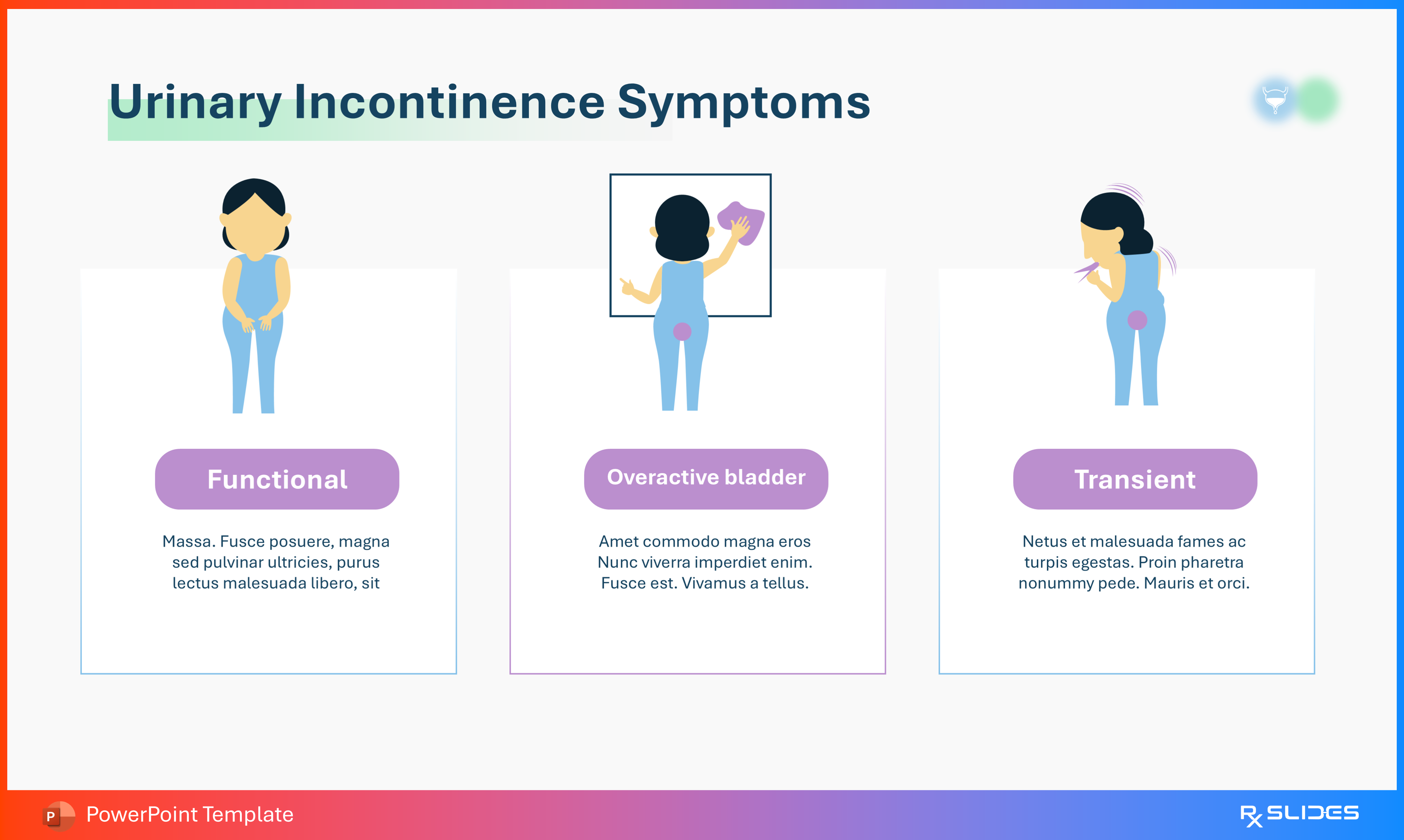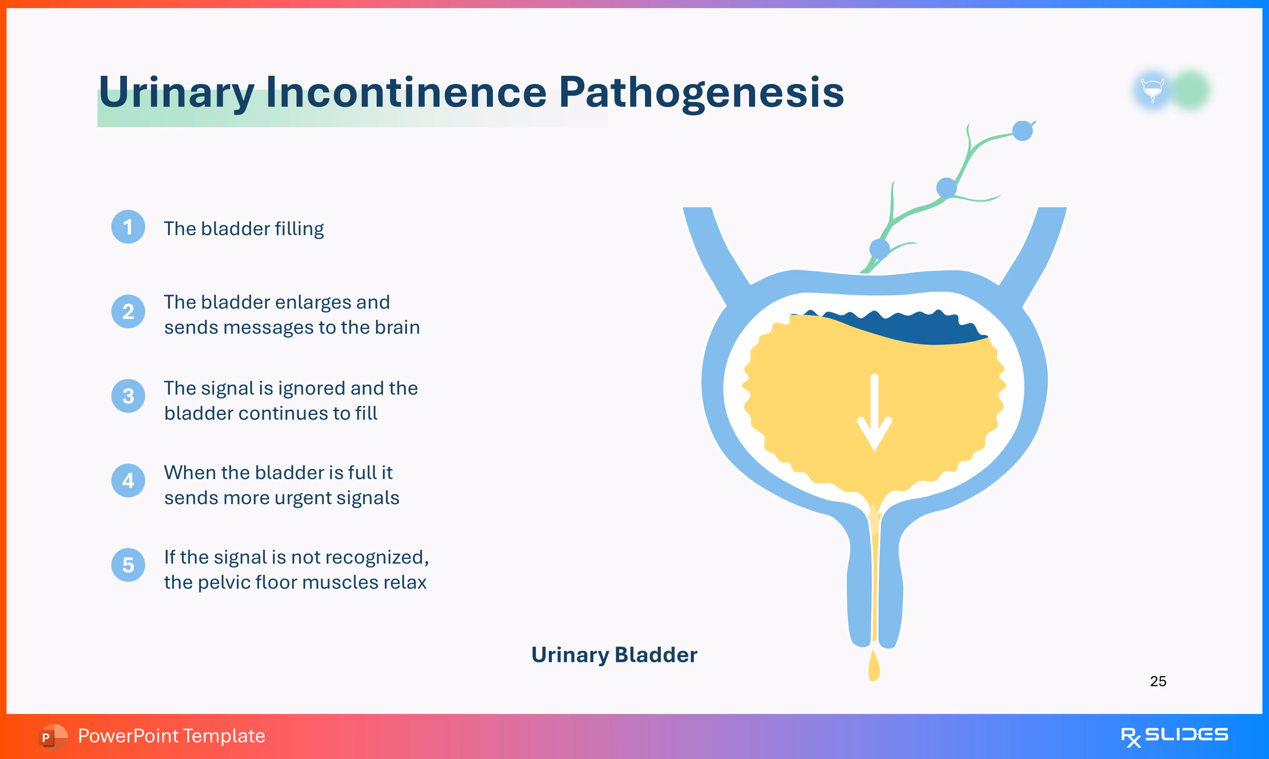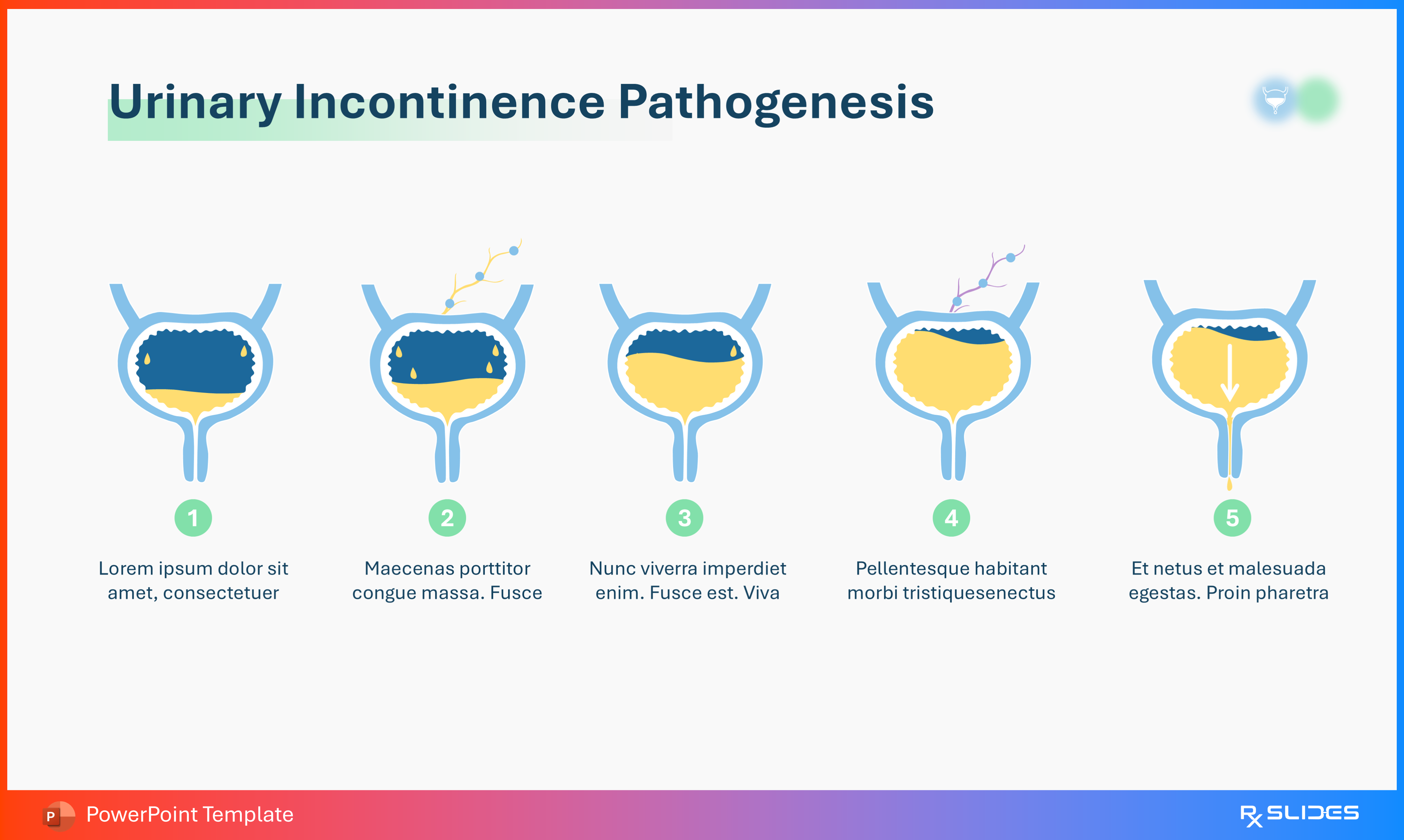 The urinary incontinence PPT is a dynamic medical PowerPoint template that can enhance the effectiveness of your presentation.