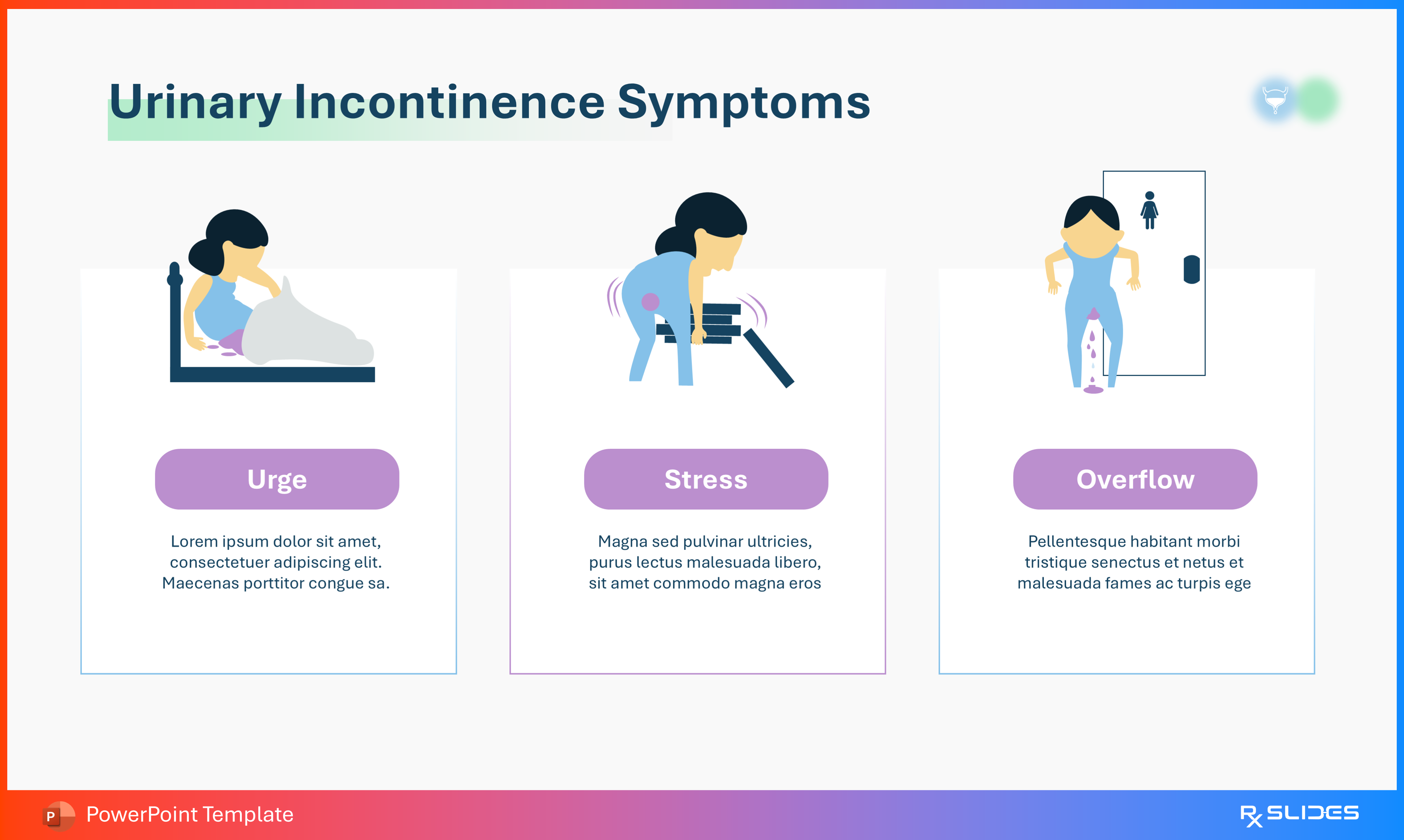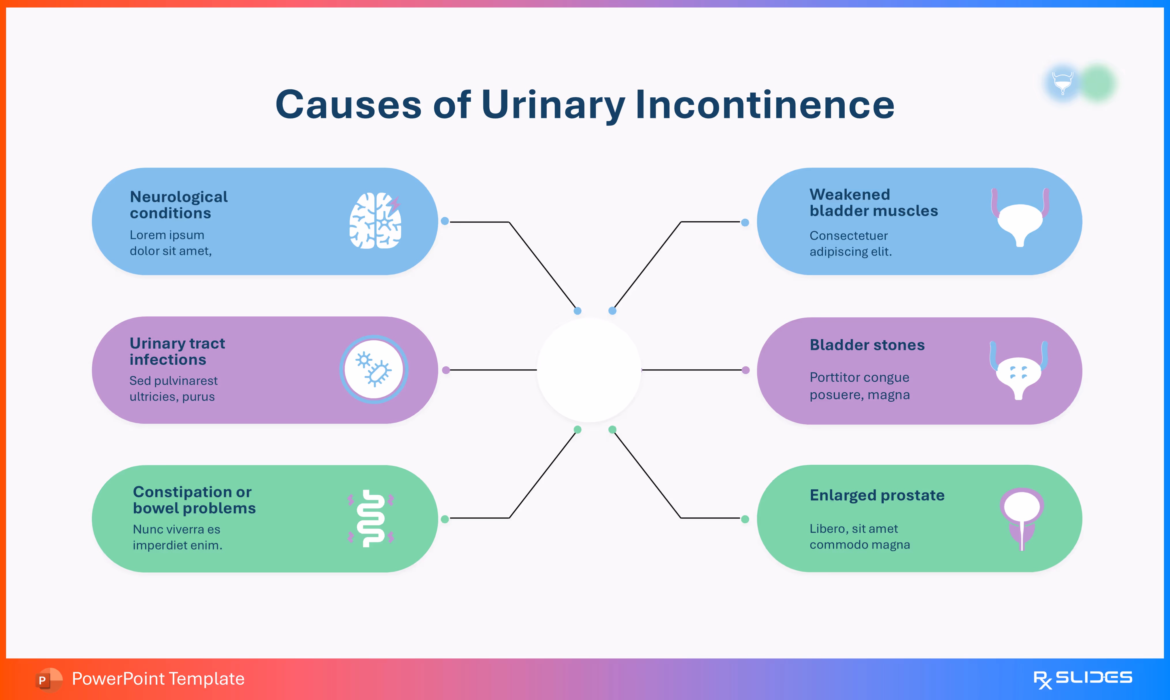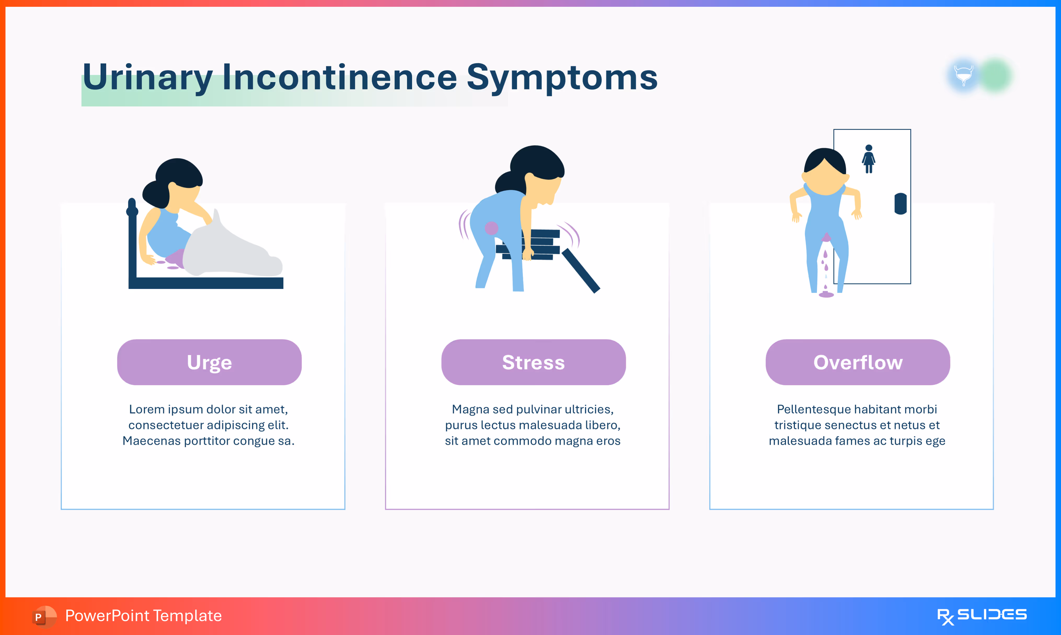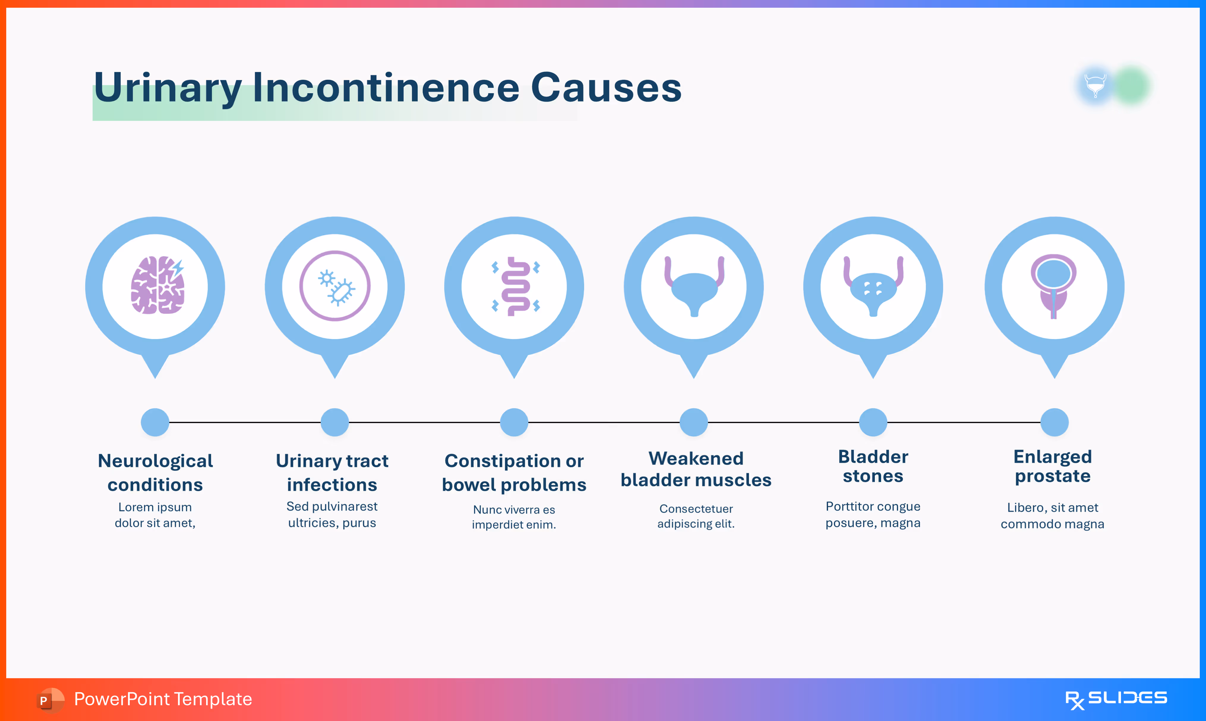 The urinary incontinence PPT is a dynamic medical PowerPoint template that can enhance the effectiveness of your presentation.