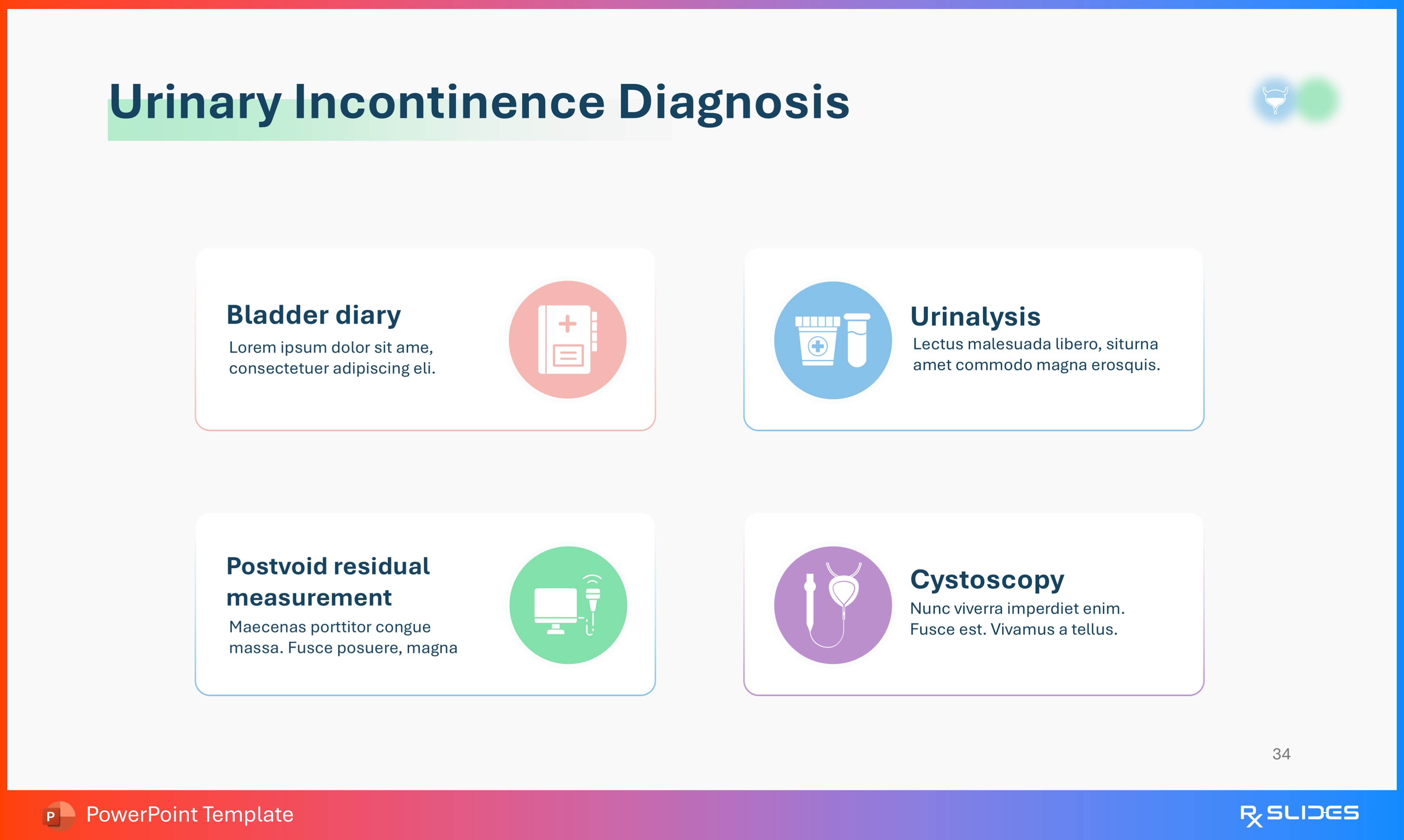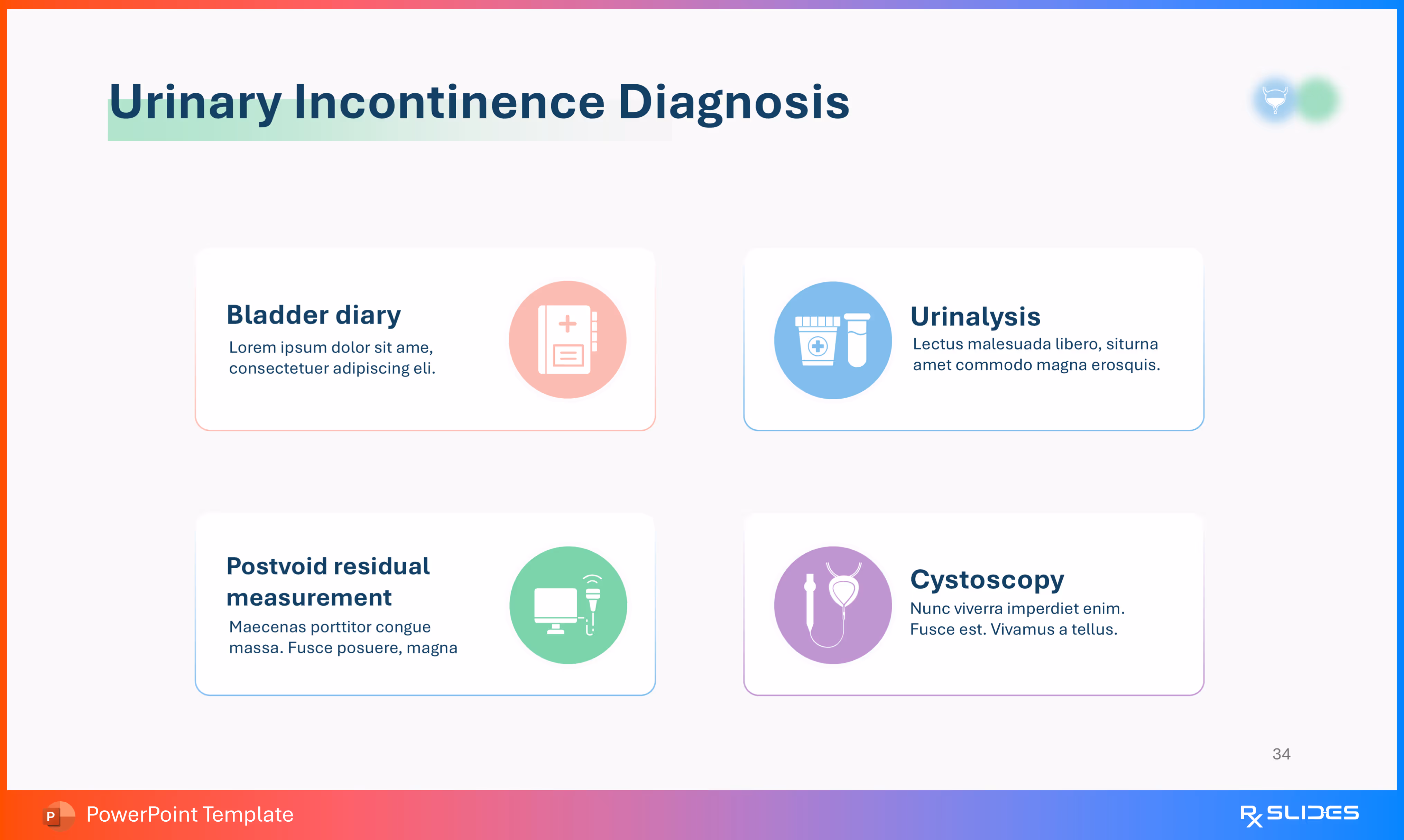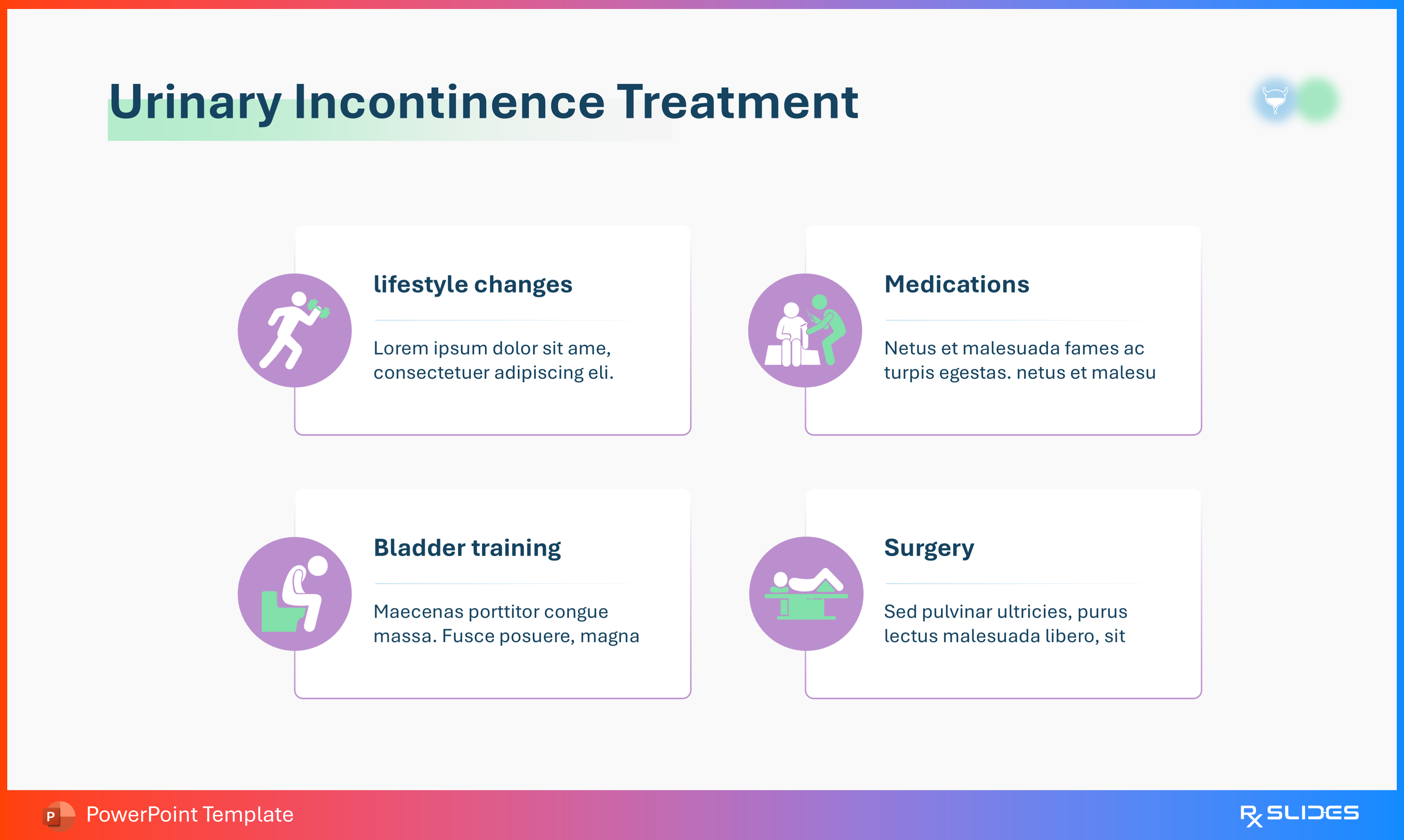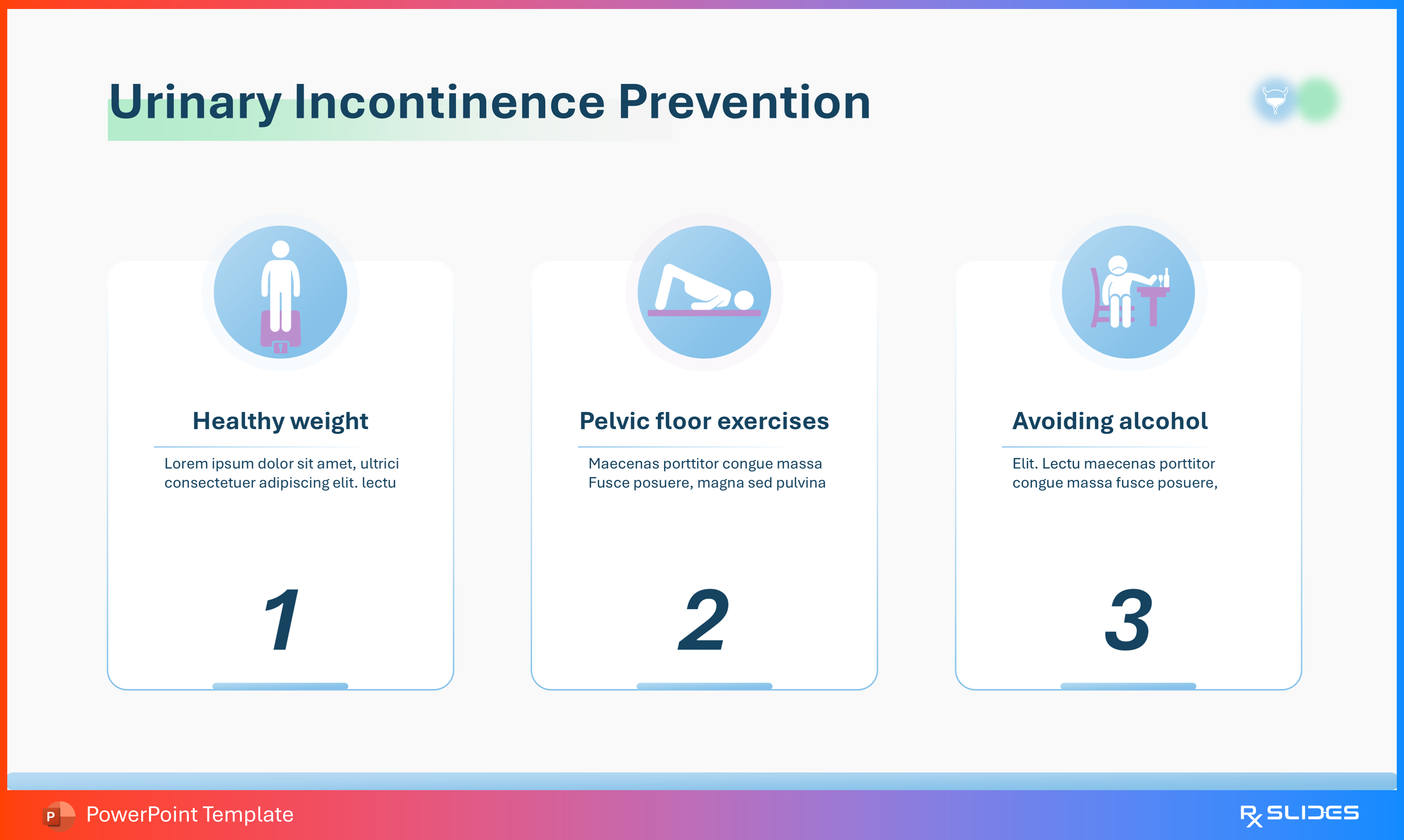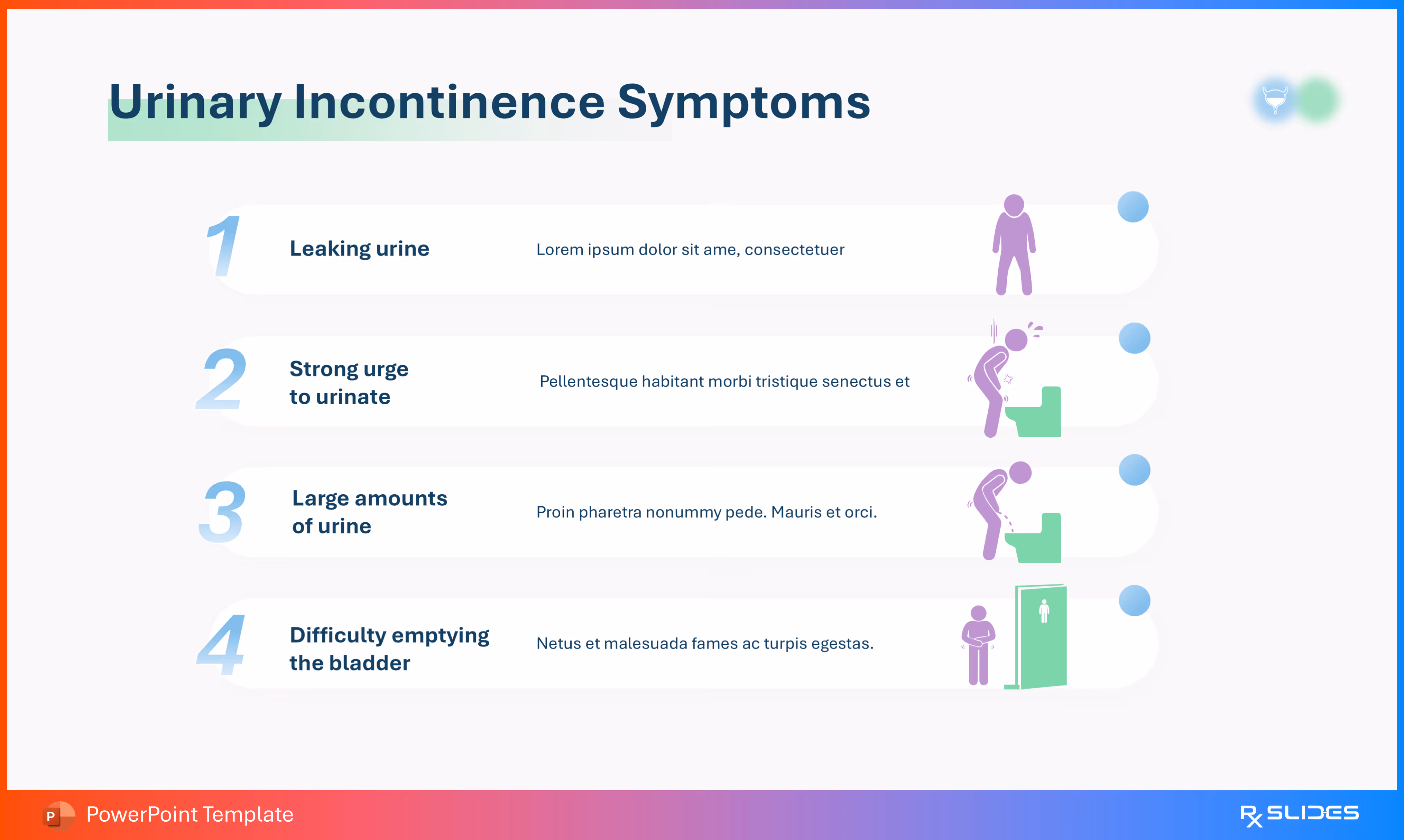 The urinary incontinence PPT is a dynamic medical PowerPoint template that can enhance the effectiveness of your presentation.