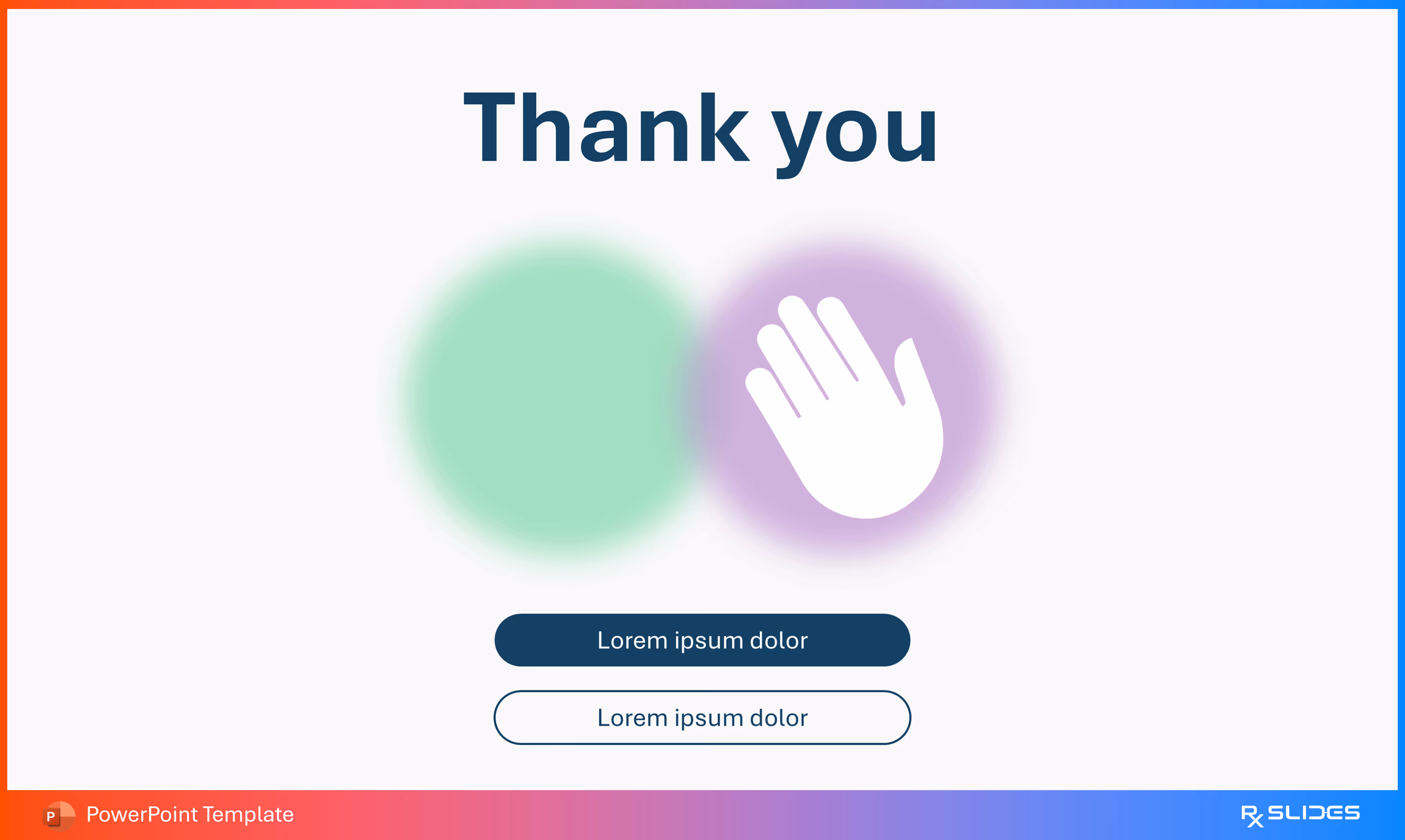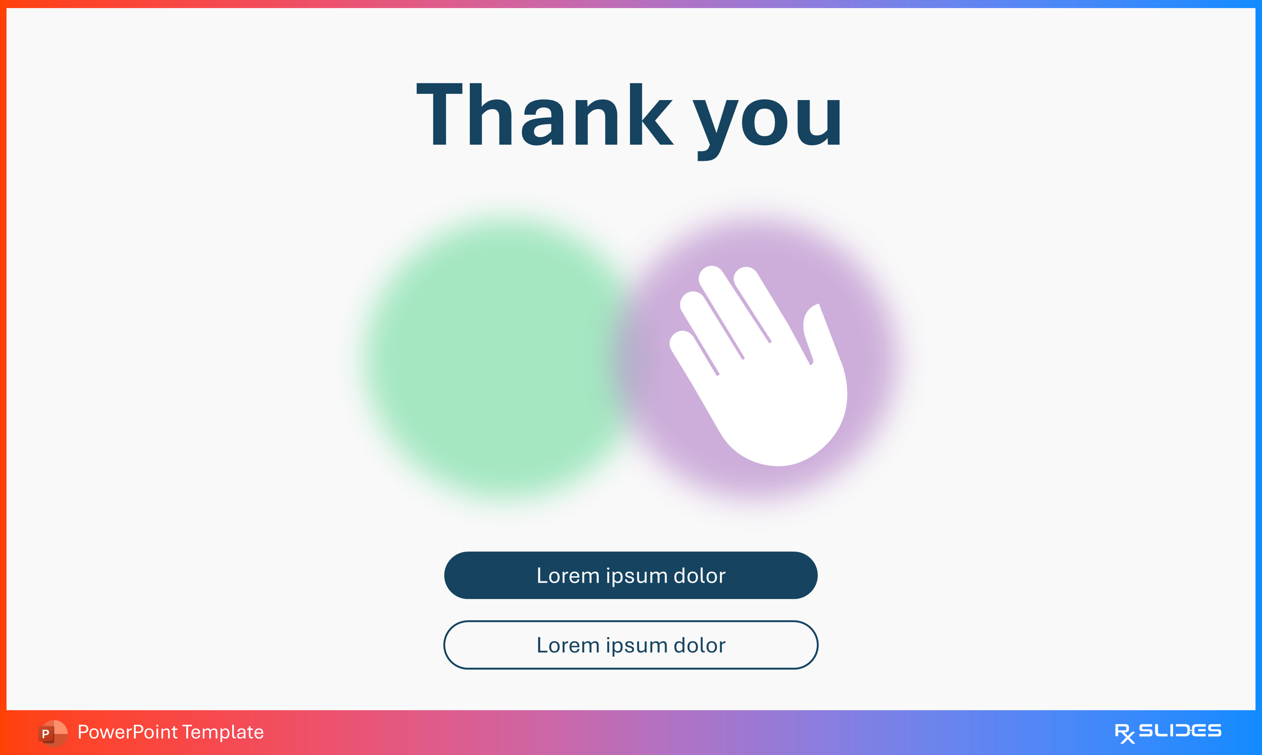 The design features the title "Thank you" prominently, centered above two blurred circles and a large icon of an open hand (a friendly wave or sign of gratitude).