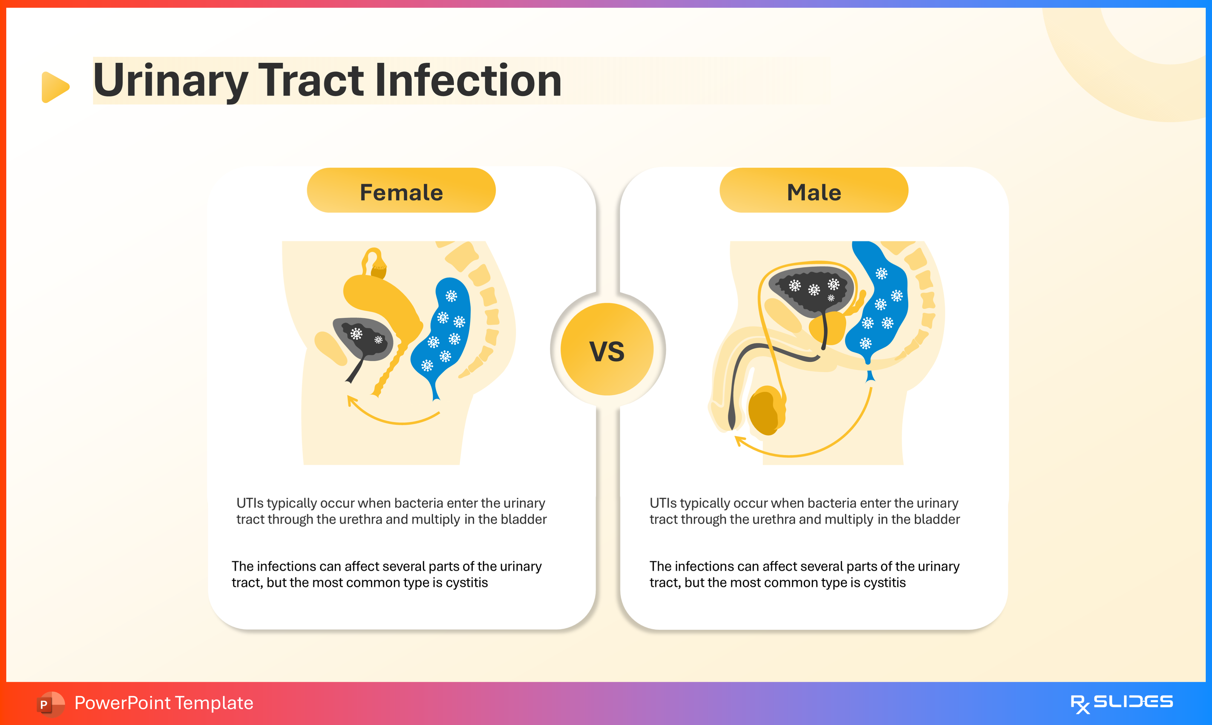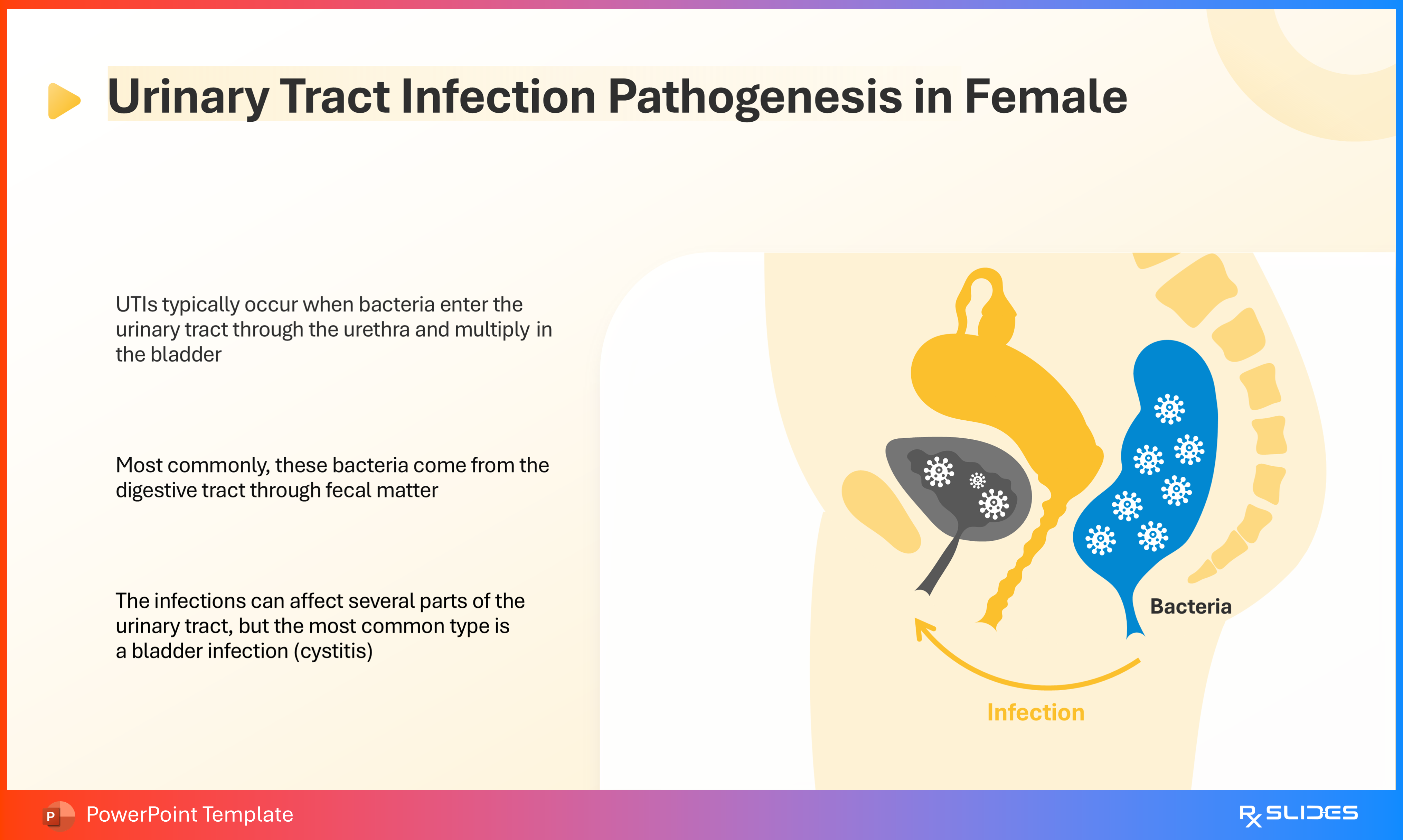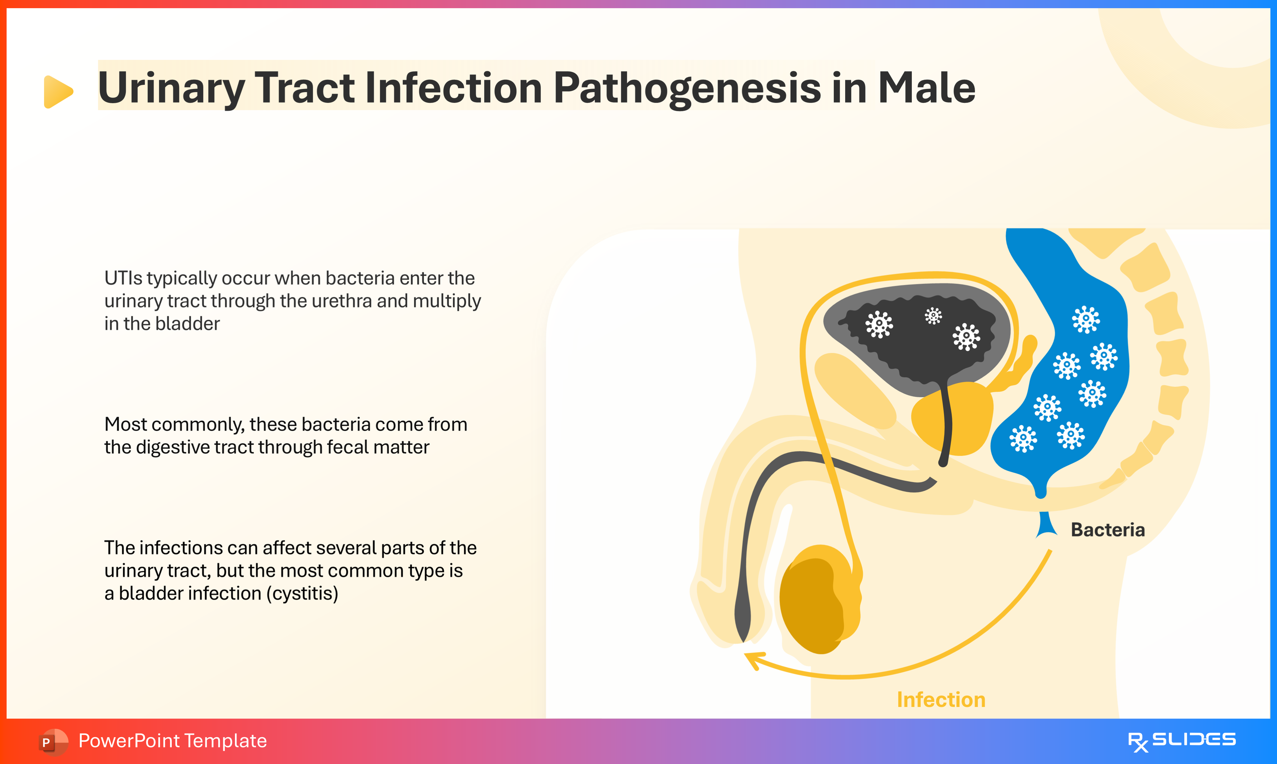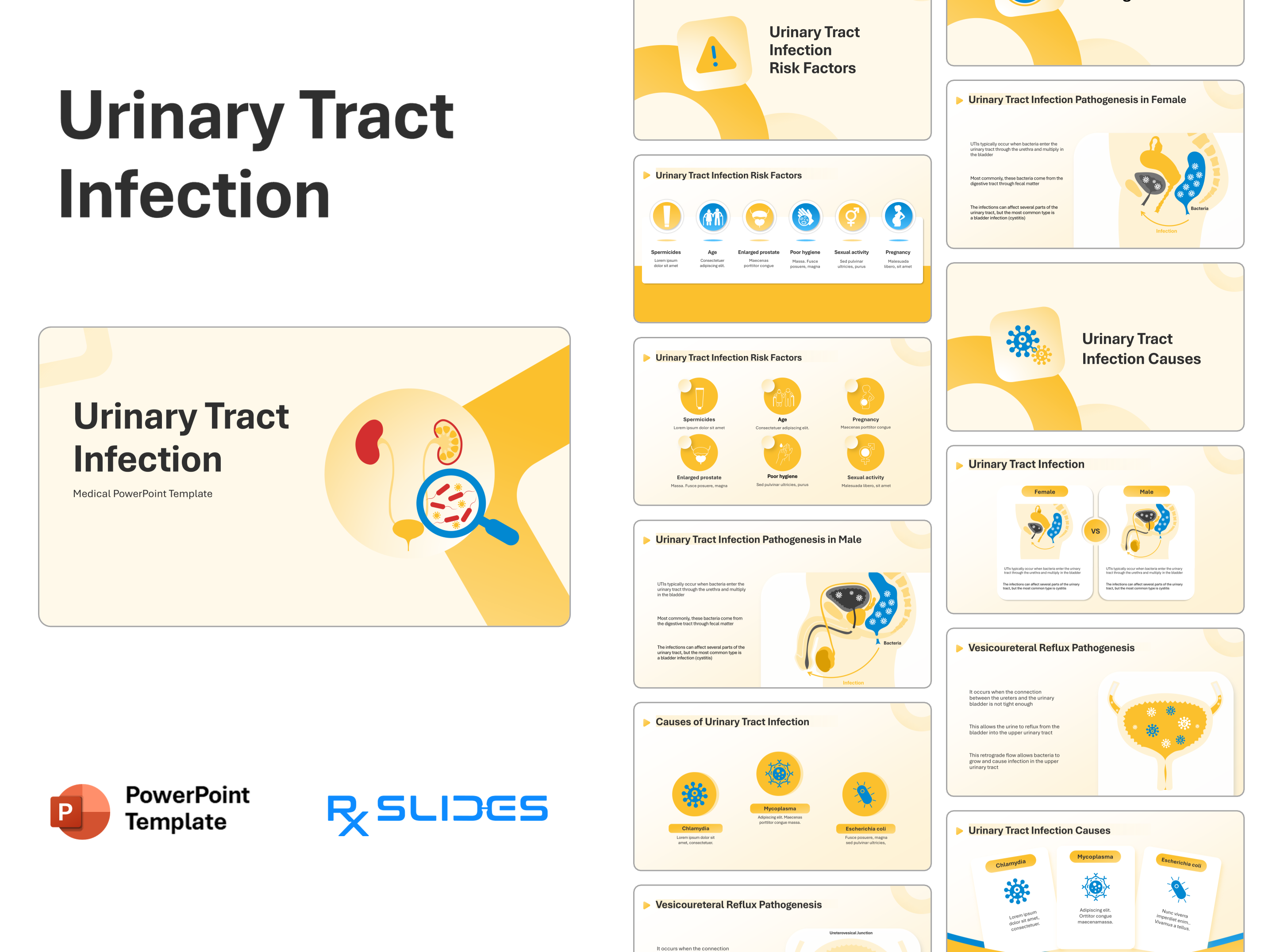 UTI PowerPoint Template This Urinary Tract Infection (UTI) PowerPoint Template is the complete solution for medical educators, nursing school instructors, and clinical presenters who need to deliver high-quality, professional lectures on the most common genitourinary condition. Stop wasting time designing slides from scratch. This comprehensive kit features 49 unique, editable slides that cover the entire scope of UTIs, structured for clarity and engagement.
