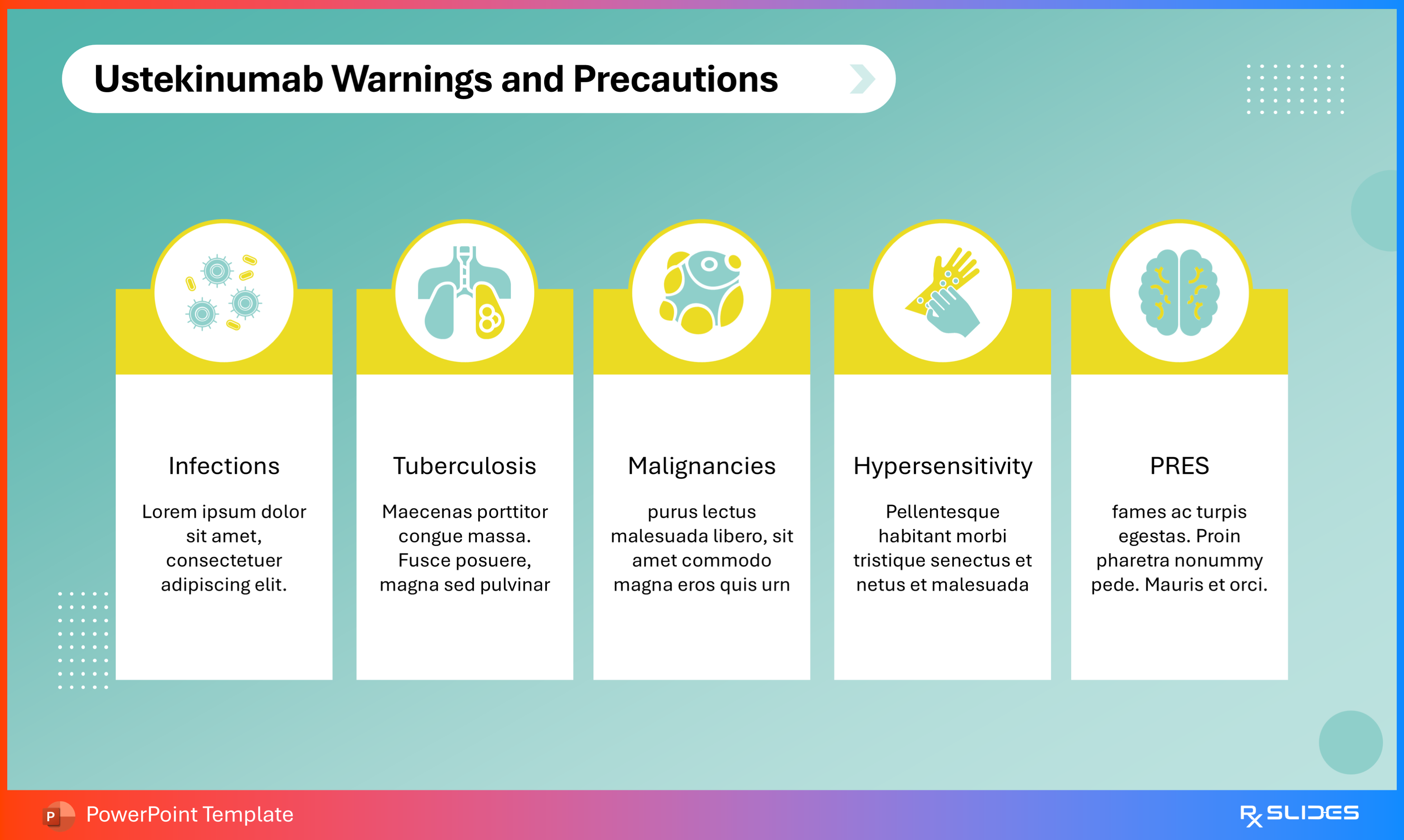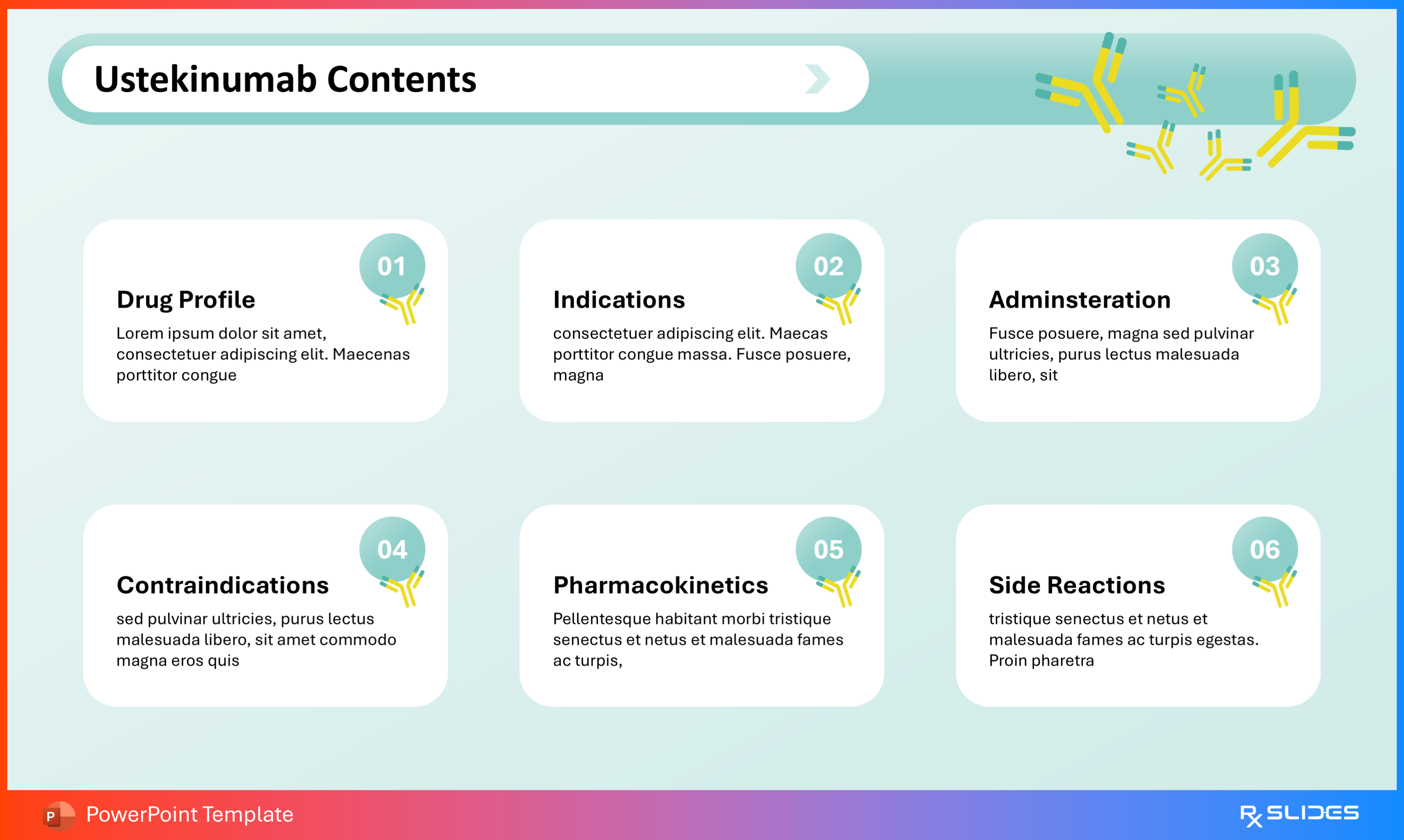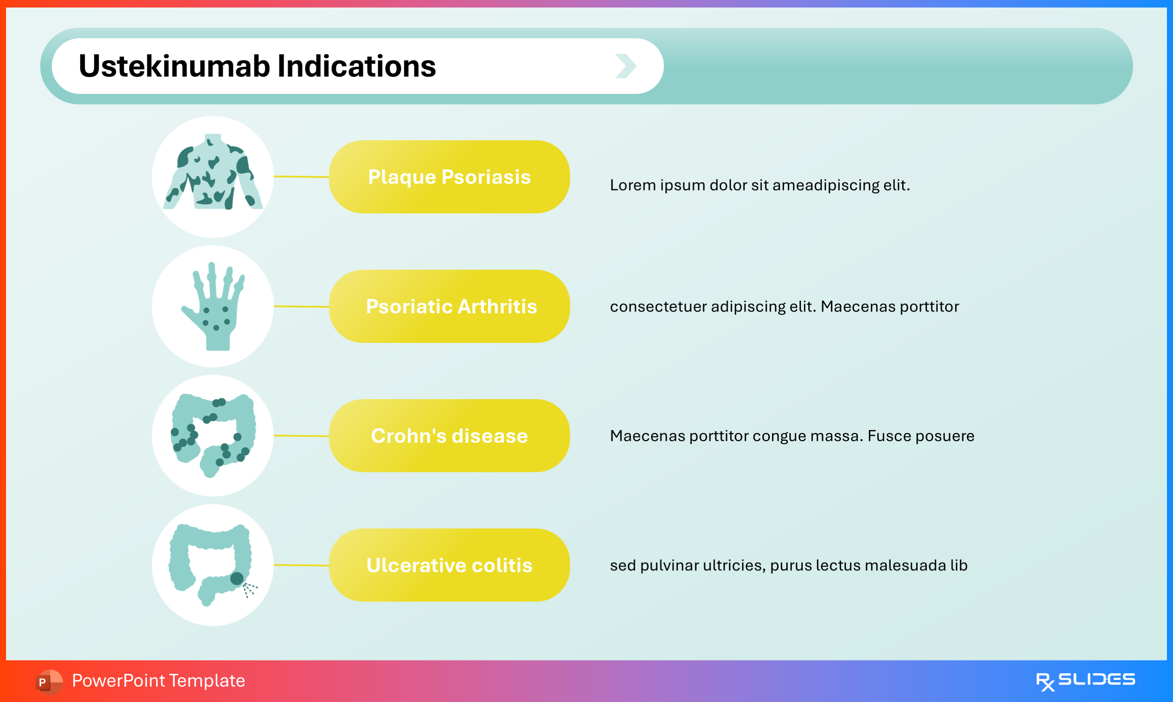 RxSlides offers a Ustekinumab PPT template, an animated medical PowerPoint template with attractive animations to deliver a dynamic educational experience.