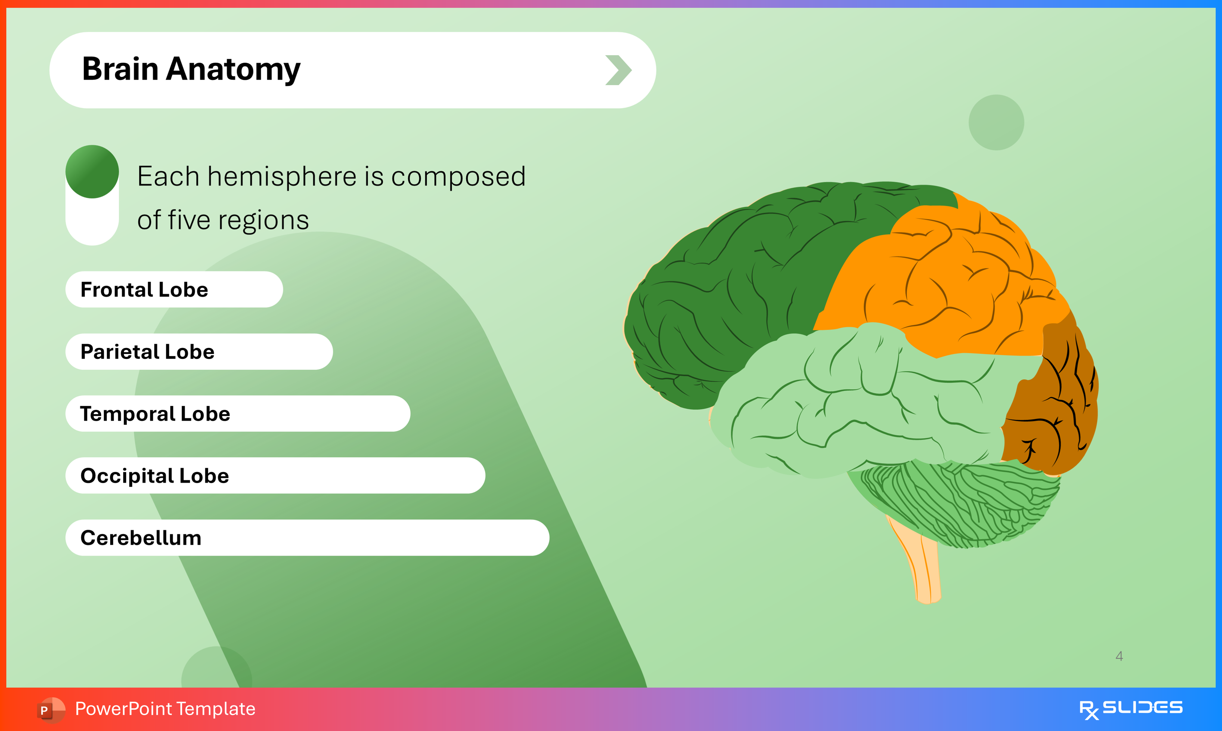 introduces the main regions of the brain anatomy to your audience during the presentation.